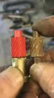 Ich habe mir ein neues Tachowellen-Schneckengetriebe gekauft und im Vergleich sieht man auf dem Foto, dass das alte Schneckengetriebe in der Mitte abgenutzt ist. Die Vespa hat ca. 20.000 km auf dem Tacho.