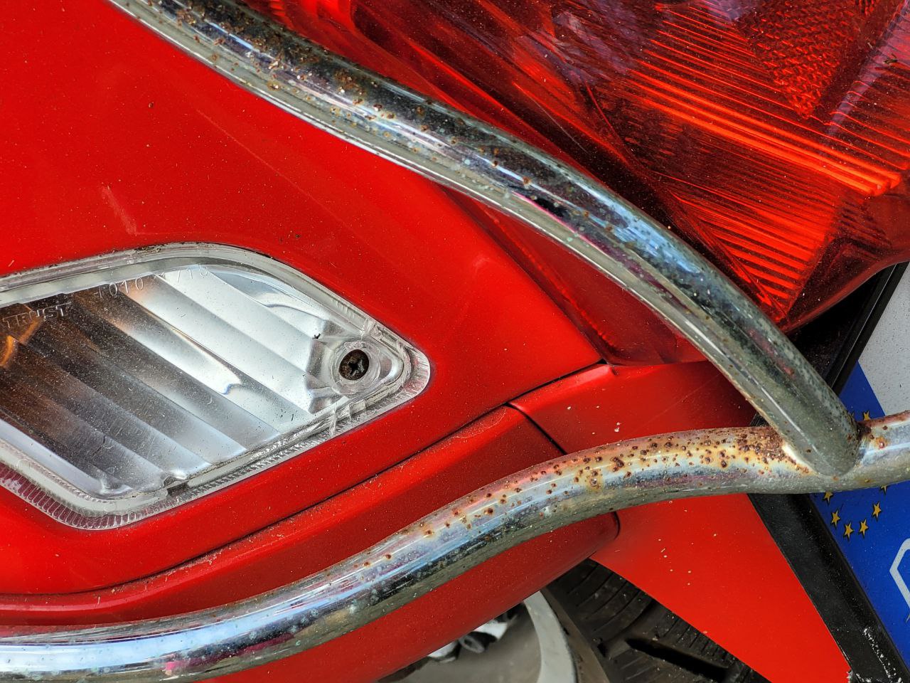 Der Hinterreifen hat (wegen der langen Stehzeit?) Luft verloren. Es kann also sein, dass ein Besuch beim Mechaniker notwendig ist.