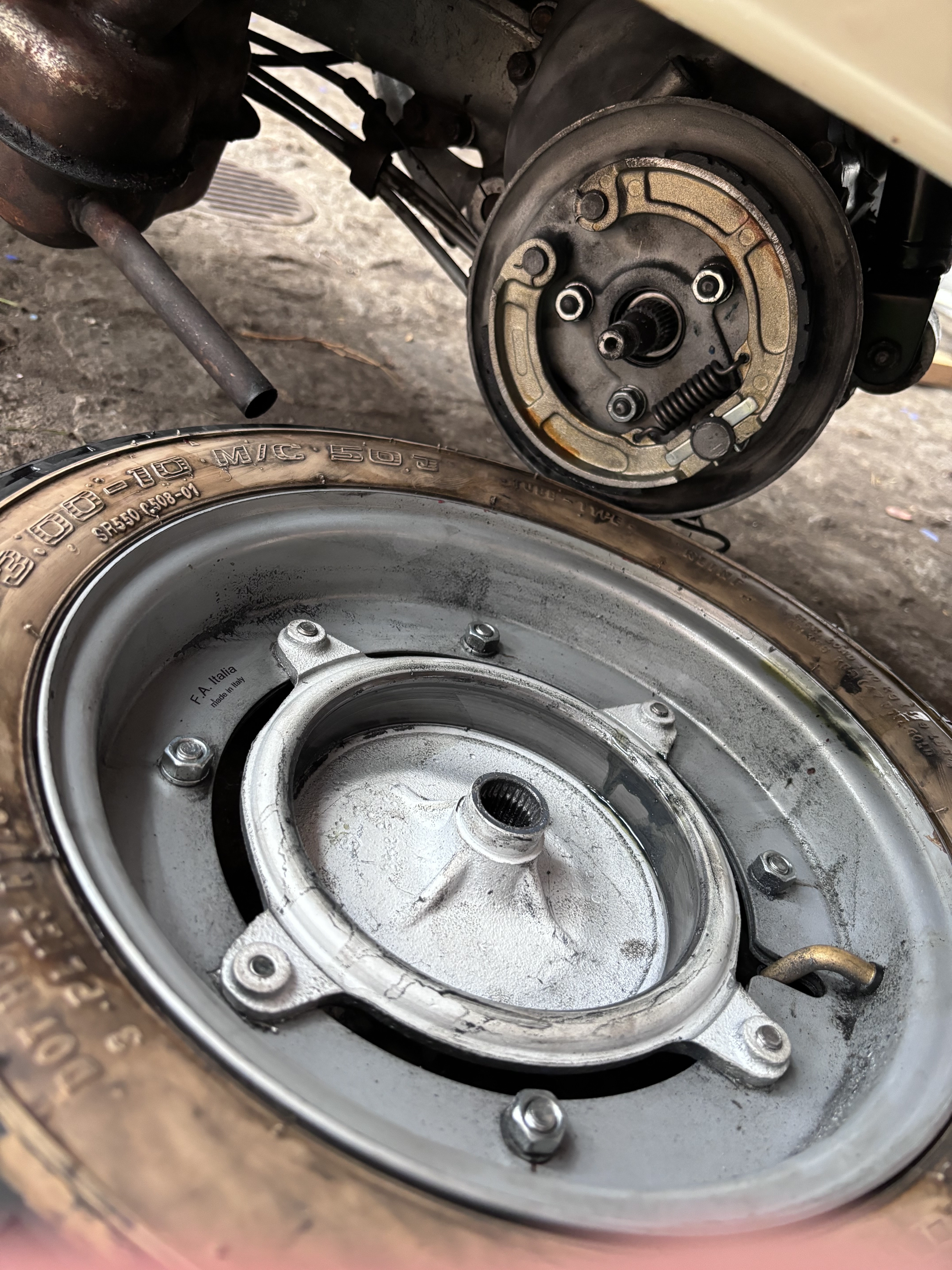 So wie ich das sehe hast du ne Italienische 9 Zoll Vespa die auf 10 Zoll umgerüstet wurde.