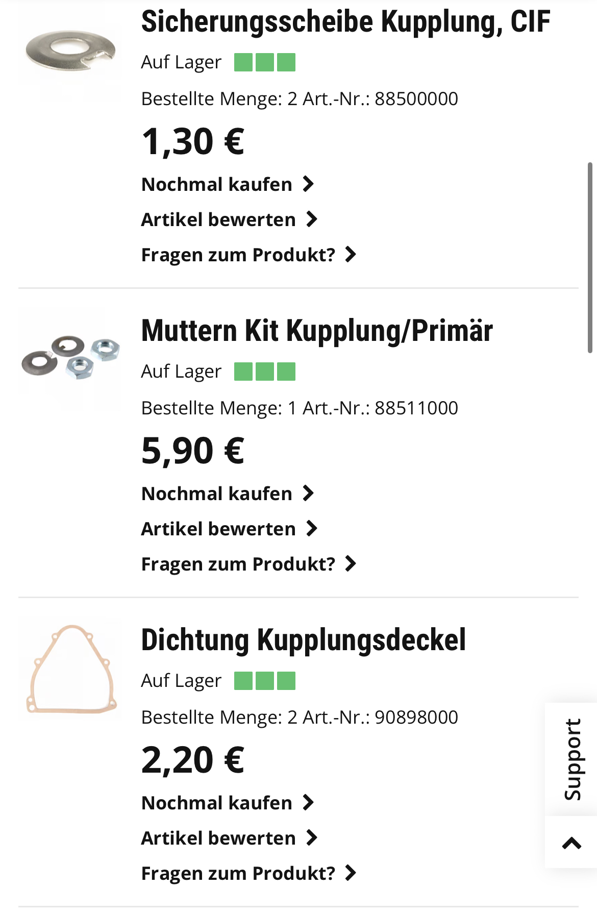 Option 1 war doch ich baue die alte Kupplung V50 mit allen Anbauteilen V50 und Kupplungsdeckel V50 ein (so wie es vorher lief) und Teste dann.