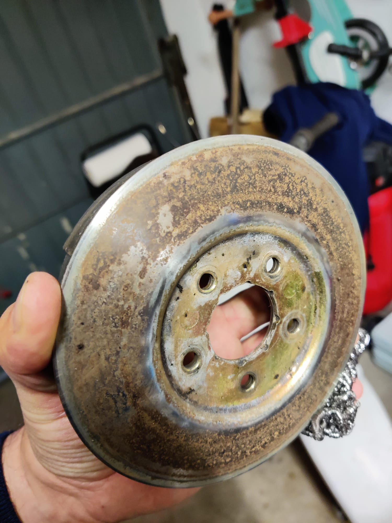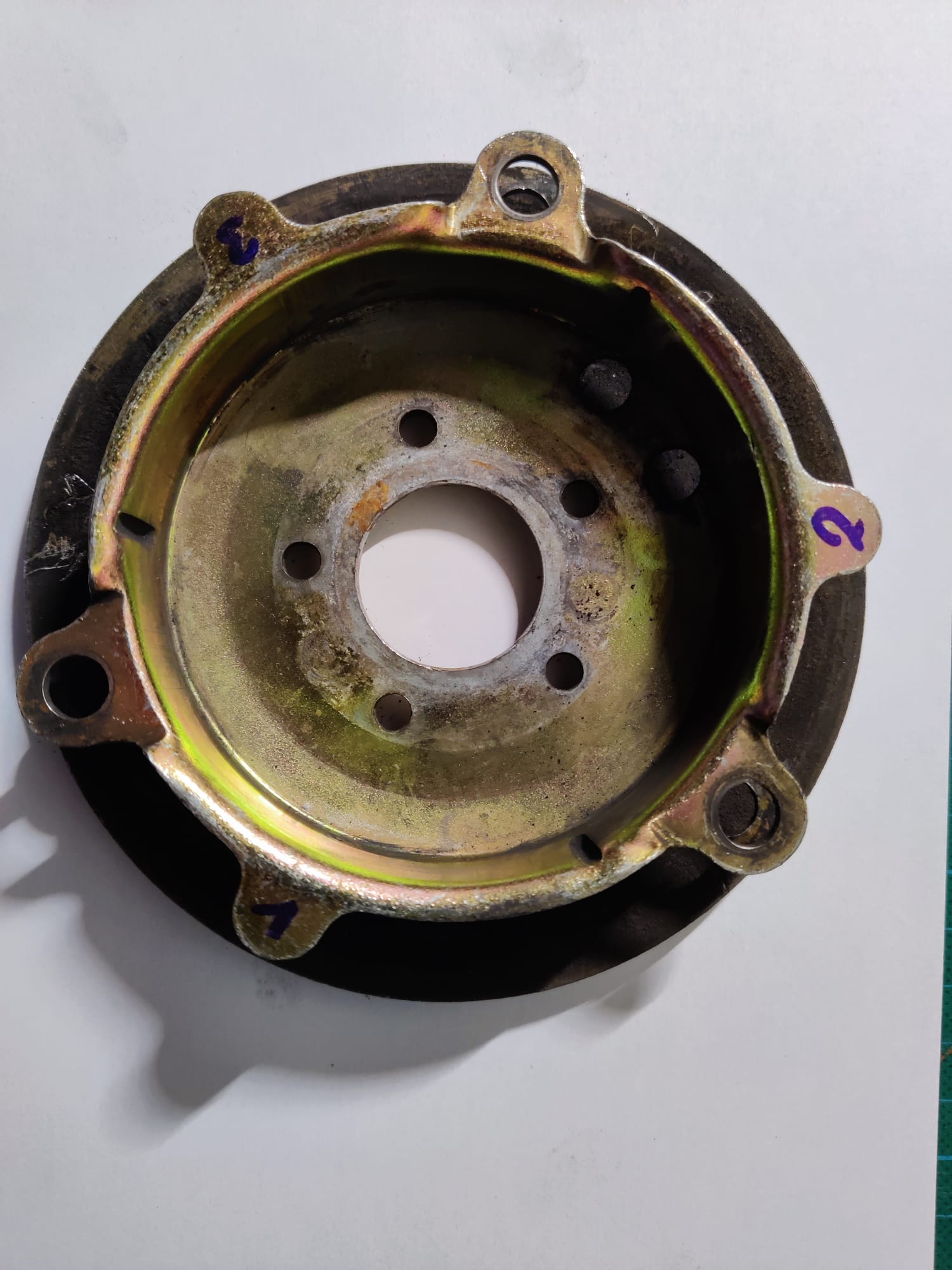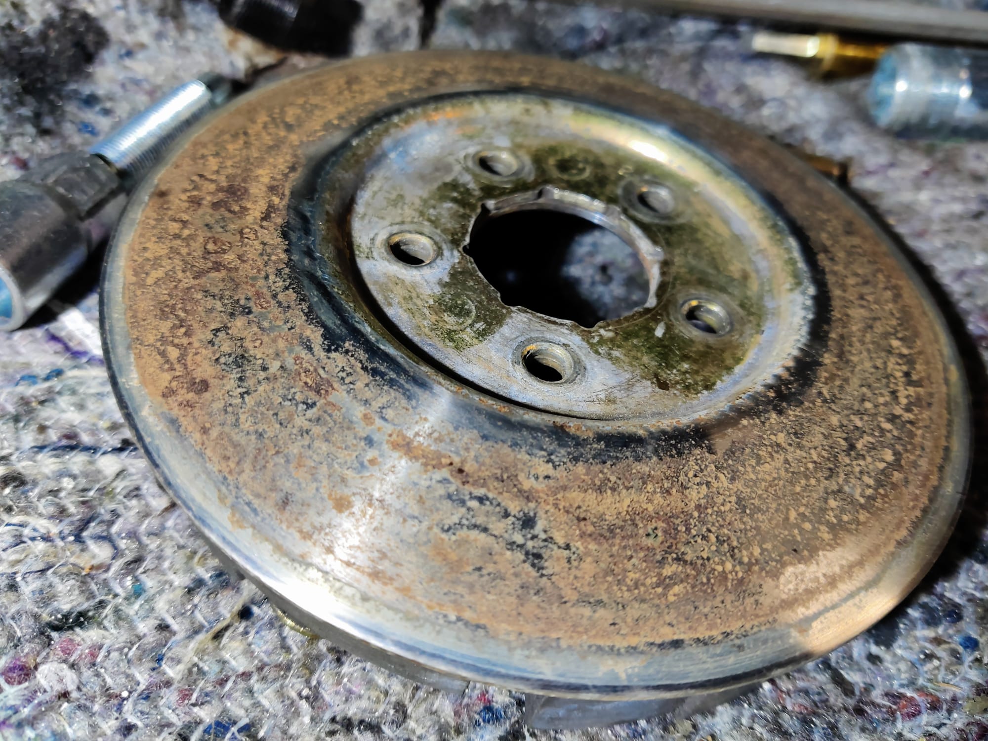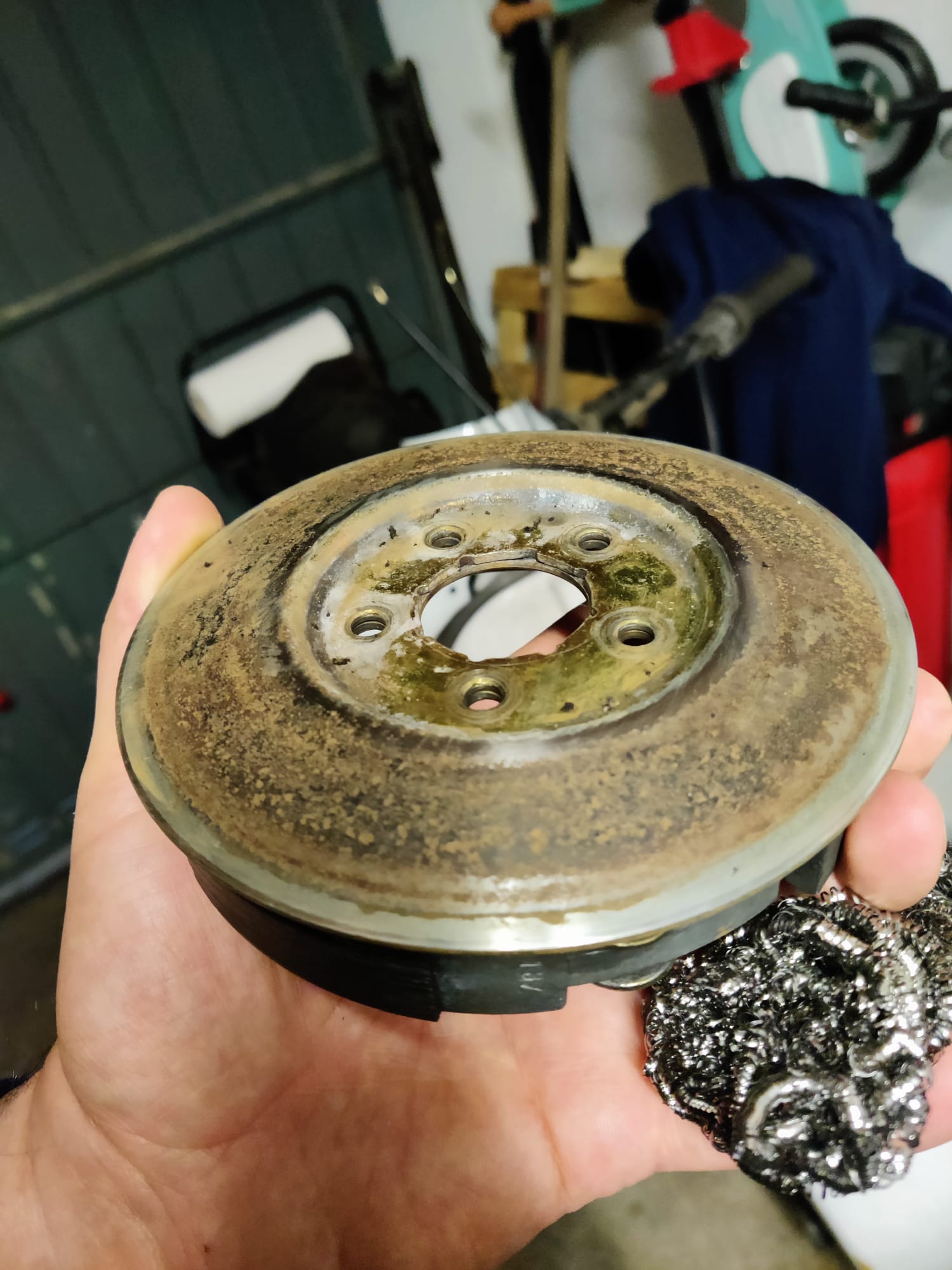- Riemenscheiben der Vario und Kupplung haben deutliche Korrosionsspuren. Diese habe ich bereits mit feinem Schleifpapier und Wasser wieder schön glatt bekommen, aber es gibt Lochfraß und über Kurz oder Lang werde ich um einen Austausch durch Gebrauchtteile wohl nicht drum rum kommen
