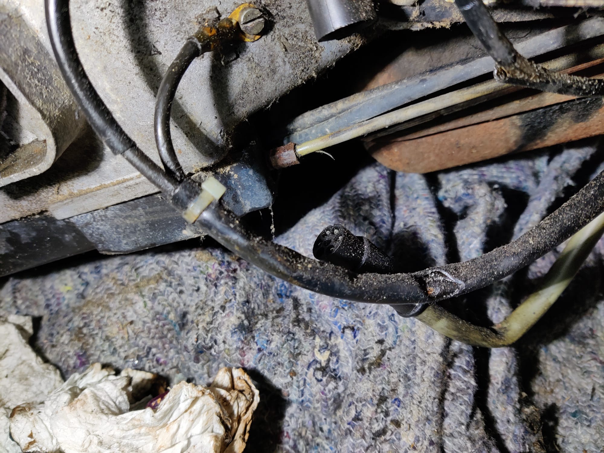 - Rahmen und Substanz: Zum Glück gibt es keine Durchrostungen und unter den Trittmatten war nur mäßig Schlonz. Etwas Korrosion um die Schrauben am Tunnel gibt es, das werde ich entsprechend behandeln.