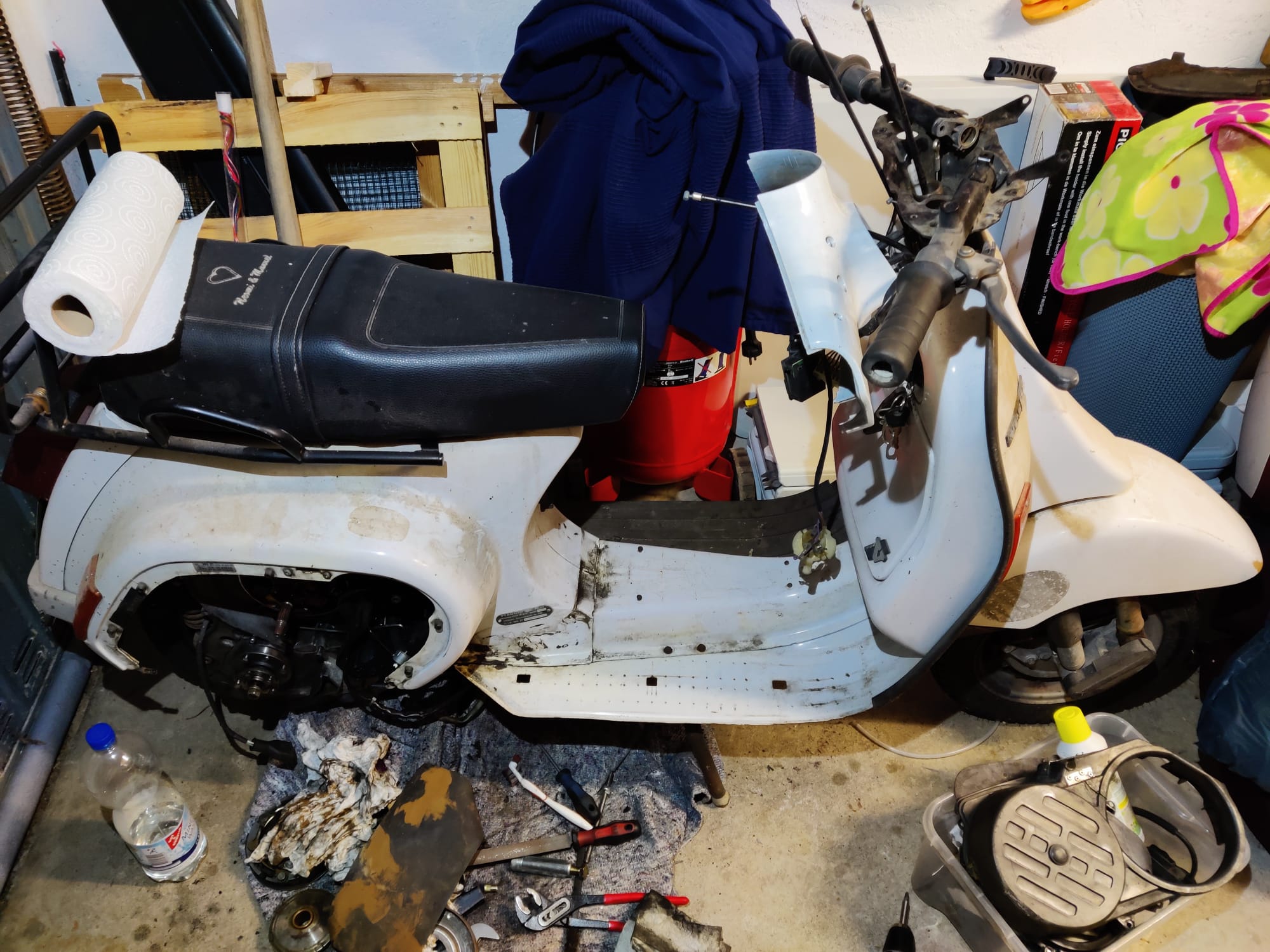 Neben kleineren Reparaturen und Einstellungen hat sie mir treue Dienste geleistet und an sich immer gut funktioniert. Irgendwann habe ich dann mal eine etwas größere Aktion gestartet, bei der ich die Vespa komplett zerlegt, gereinigt, das Getriebe gespalten, Züge erneuert und Bremsen neu gemacht habe.