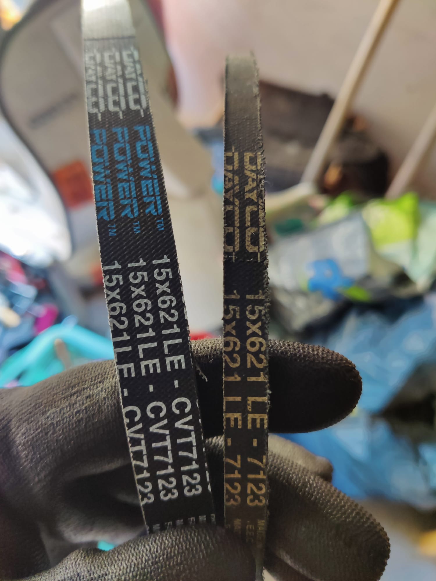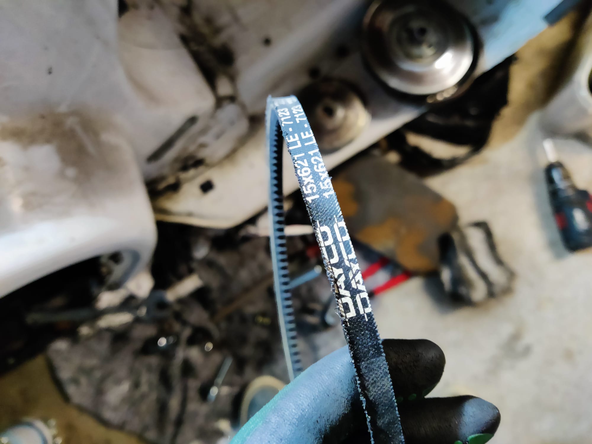 - Der Riemen hat von seinen ursprünglichen 15mm Breite nur noch 8.5mm und muss ersetzt werden.