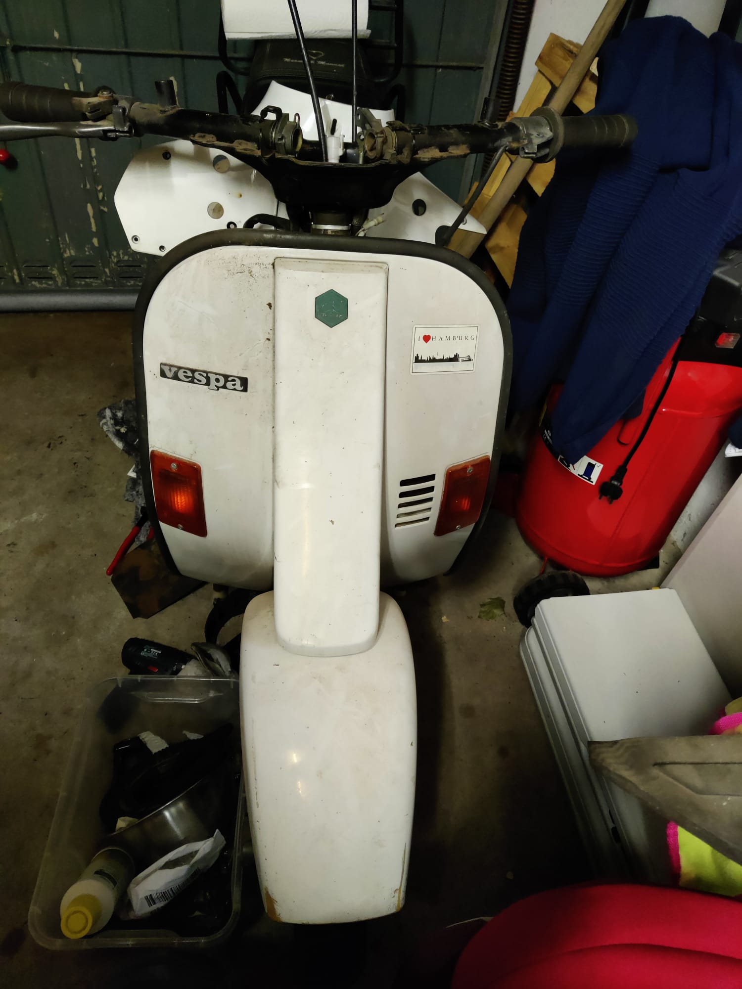 Aufgrund von Zeitmangel stand sie einige Zeit bei mir zuhause, nur durch eine Stoffgarage geschützt, weshalb ich sie dann zu meinen Eltern in die Heimat in eine trockene Garage gestellt habe.
