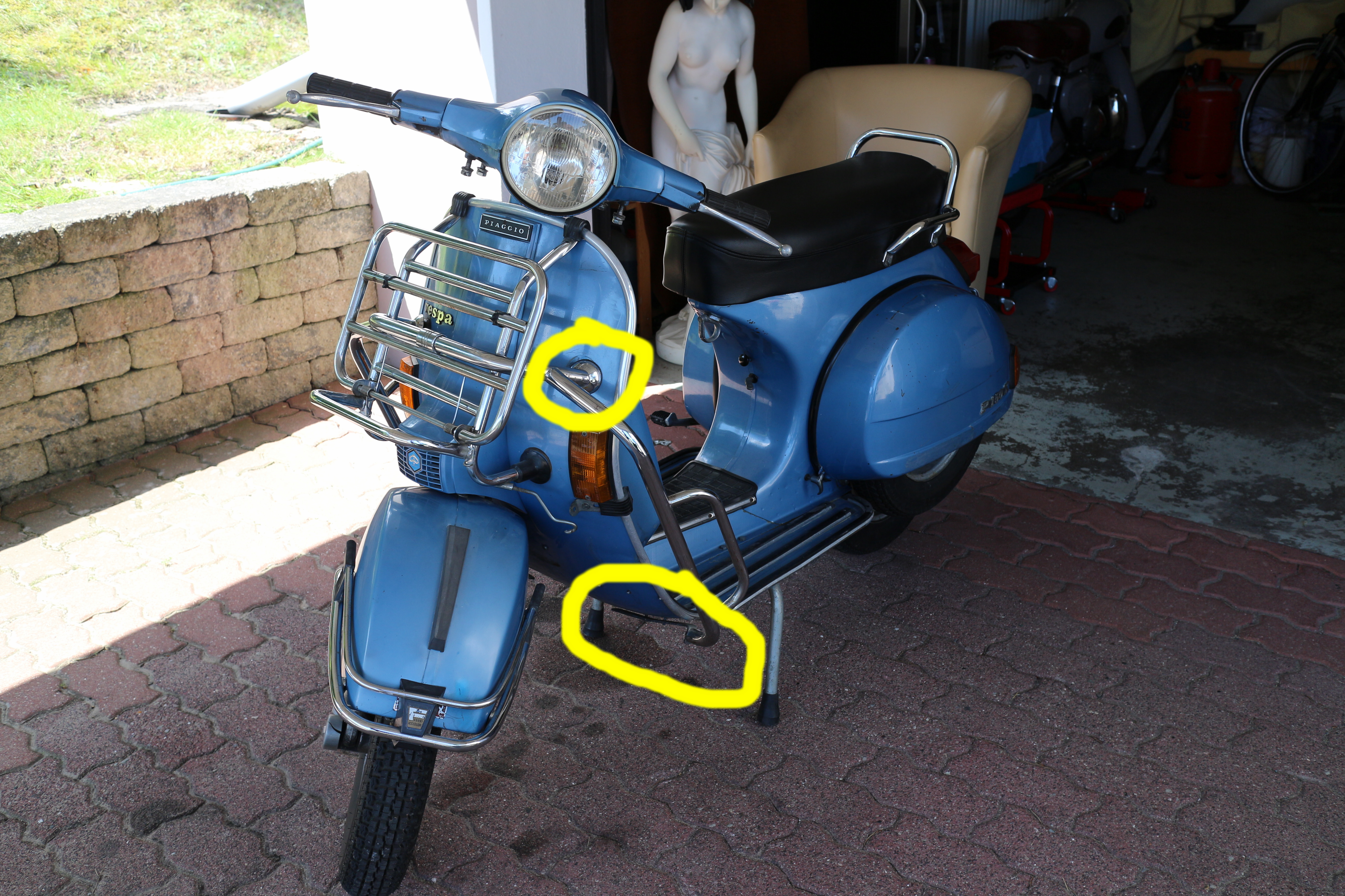 Beim Kauf meiner P150X aus 1982 waren dieser Sturzbügel vorne und Gepäckträger montiert.