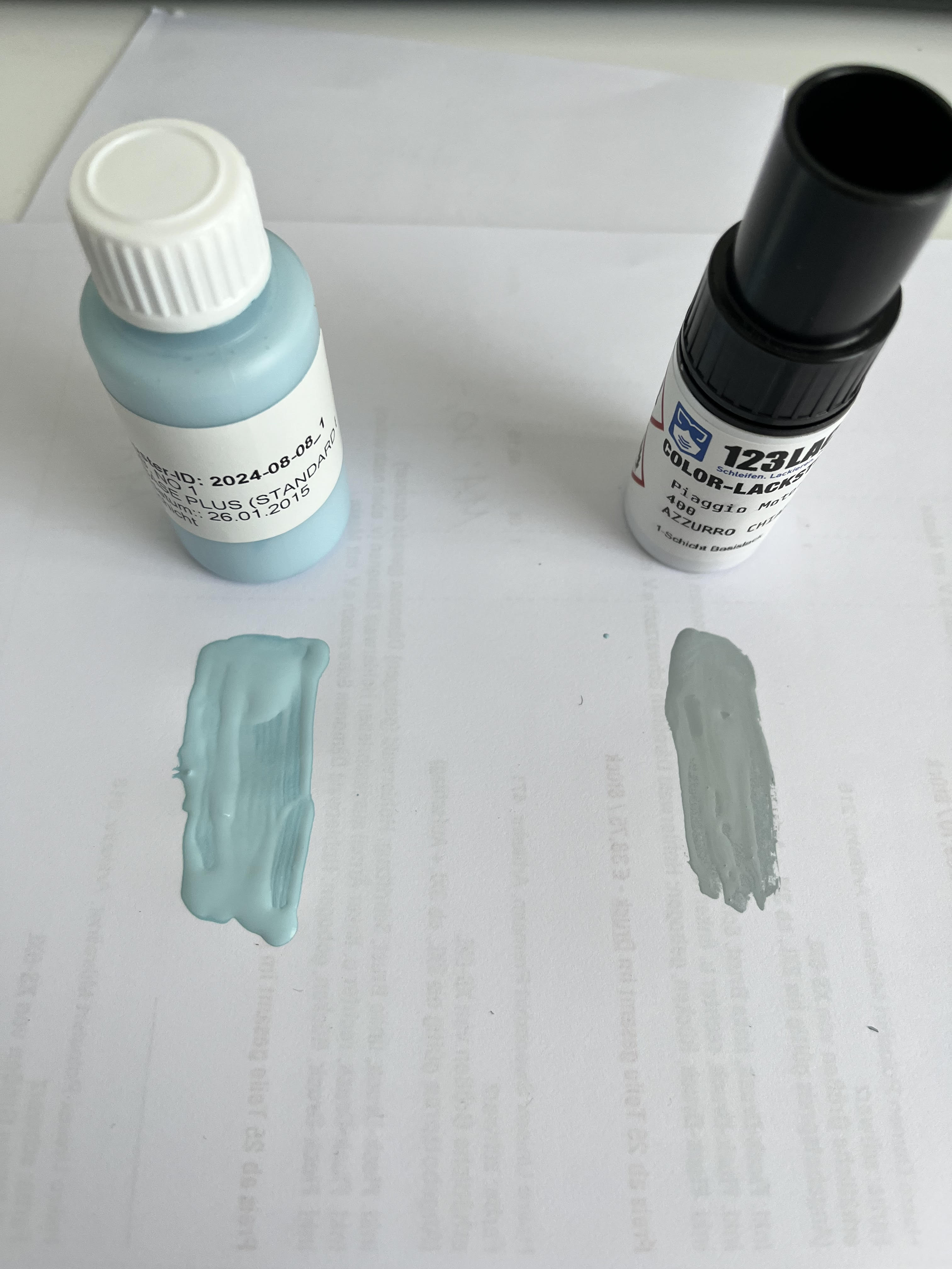 Diese unschönen Stellen, kleine Lackabplatzer usw. wĂŒrde ich gerne mit einem Lackstift kaschieren, habe aber keine Ahnung um welchen Farbton es sich hier handelt.