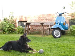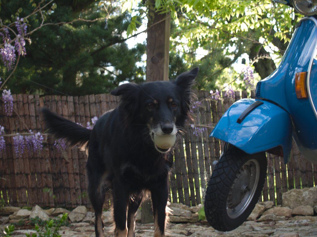 Habe gestern alte Freunde mit der Vespa besucht und ganz lange mit dem Hund gespielt. Ein total verspieltes Ding.