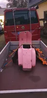 Ja, CSD in Diez, roter Bulli mit Kölner Kennzeichen zieht pinke Vespa die mit orangen Gurten ge-bondage-t ist.