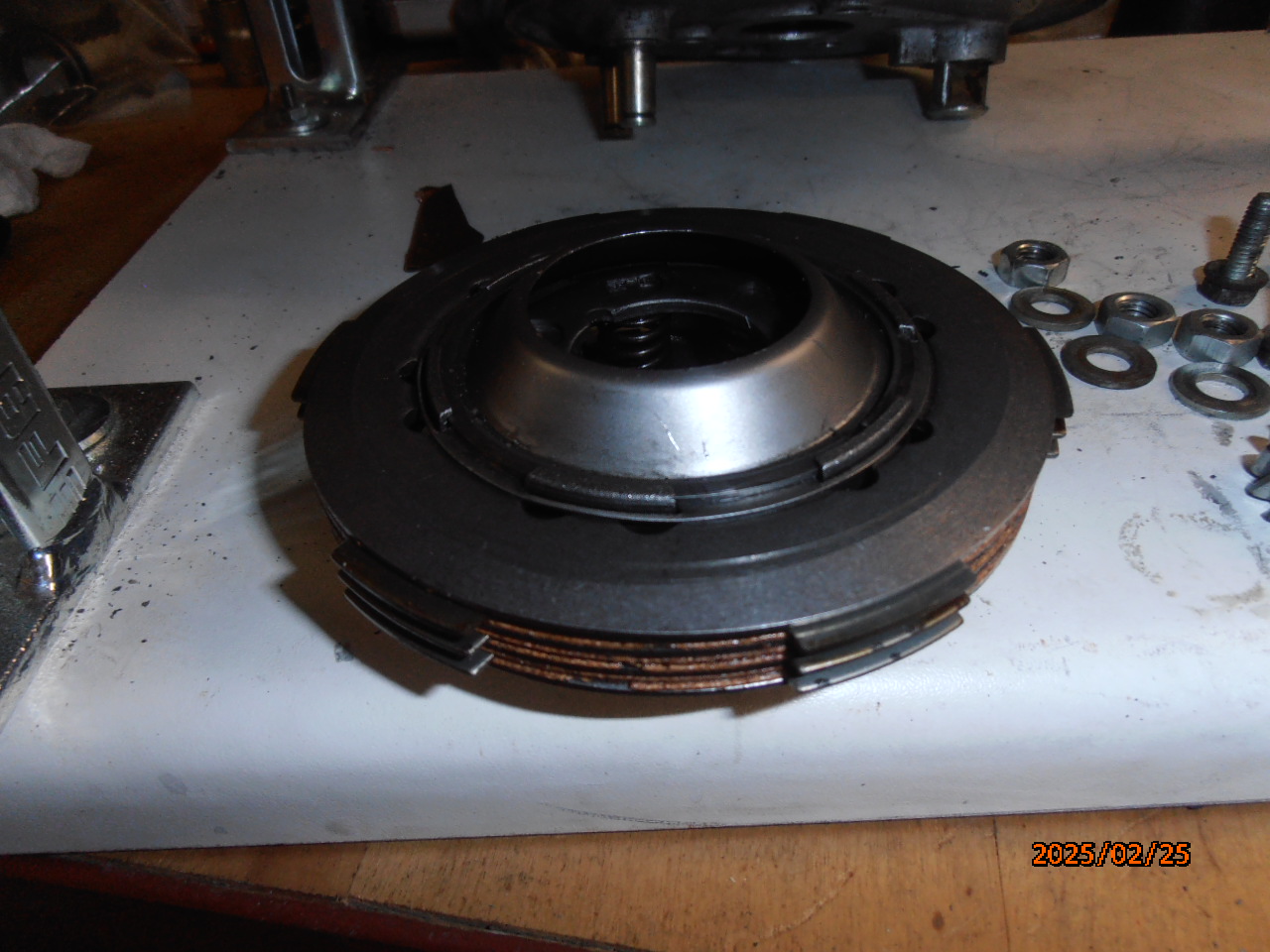Die Kupplung die drin war mit neuen Korkscheiben, wobei ich nur die Kupplung komprimiert habe, Deckel runter, alte Korkscheiben raus und neue, in Getriebeöl eingelegte rein und dann wieder Deckel drauf gemacht.