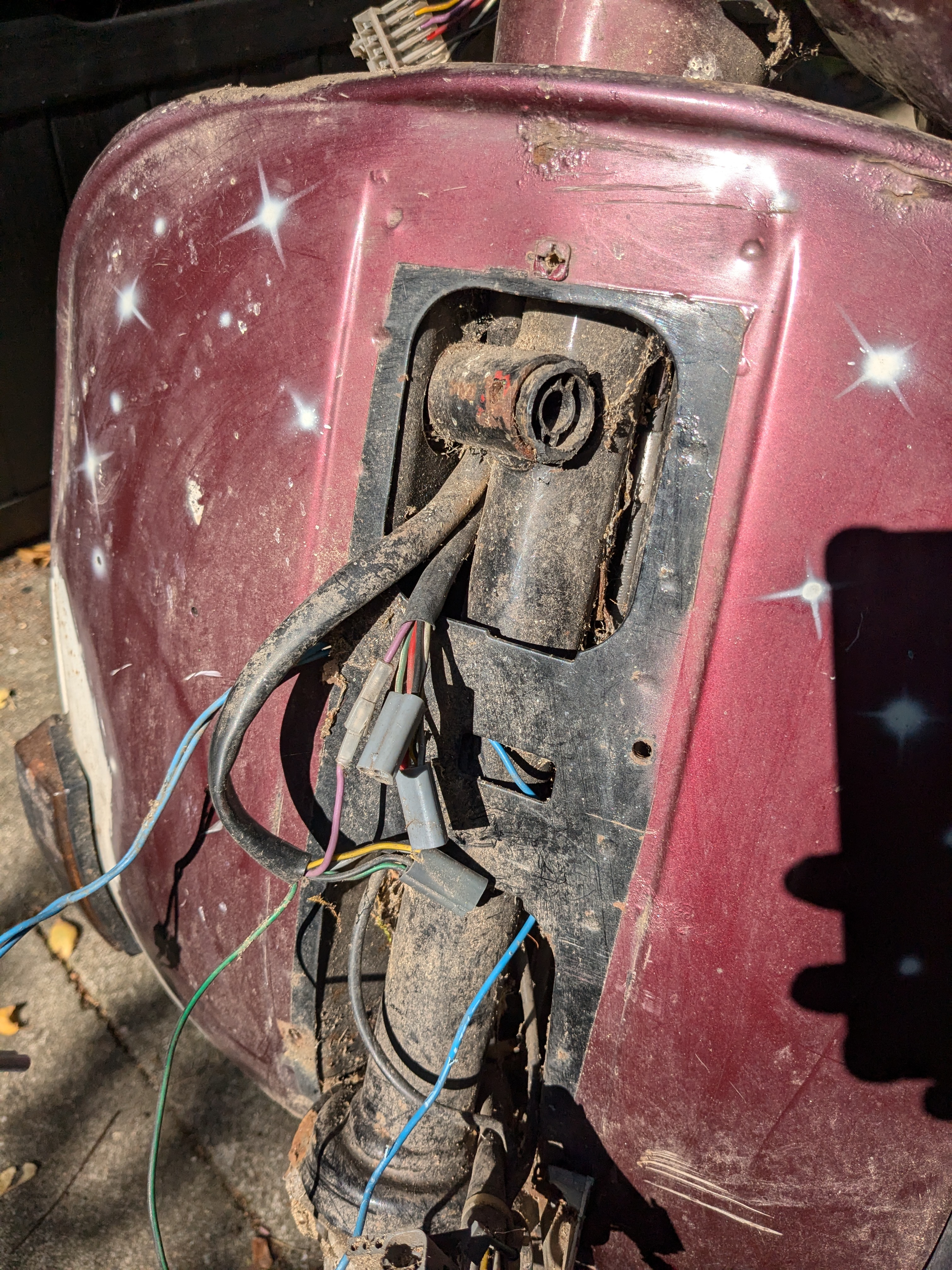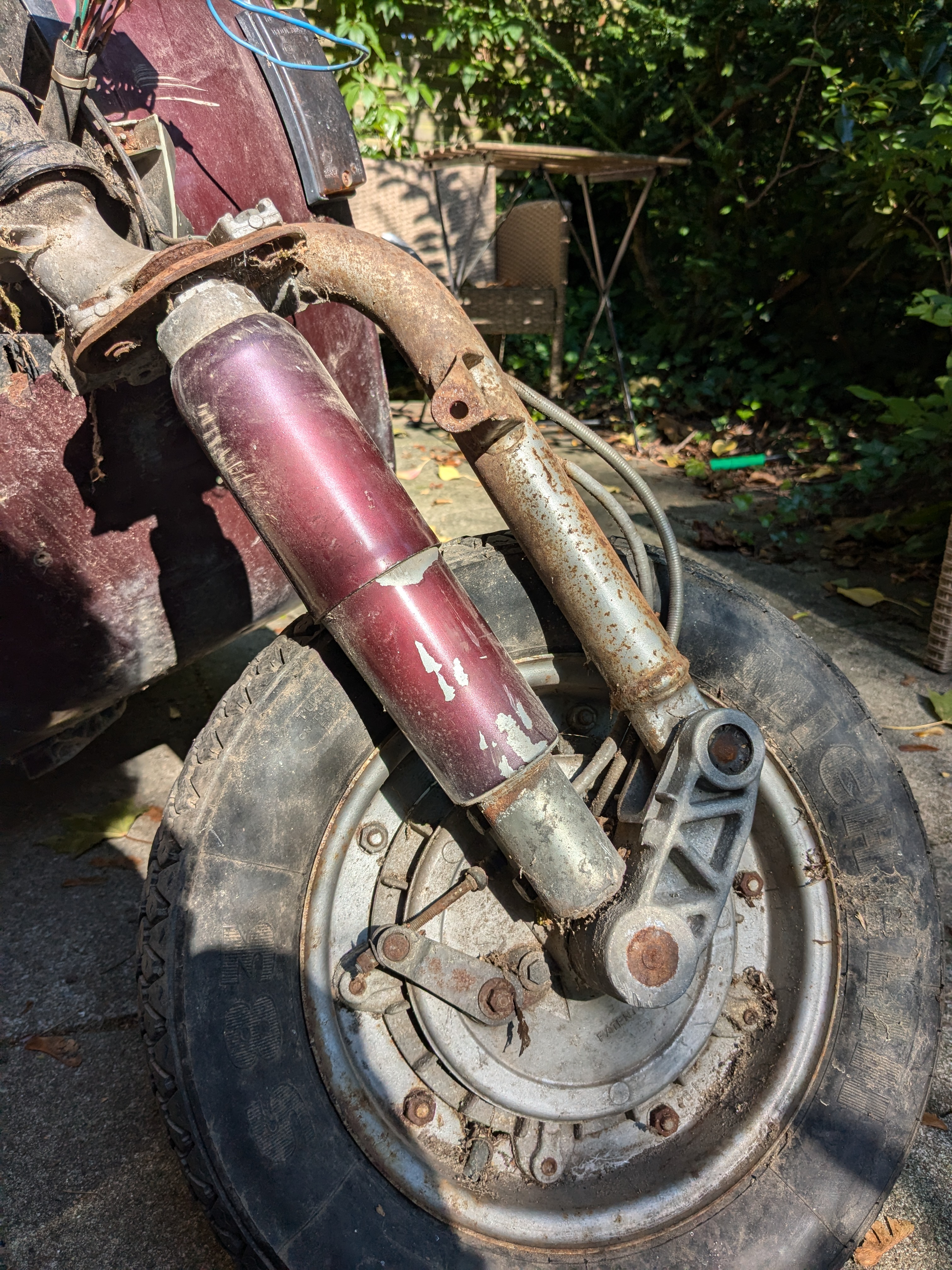 Mein Plan wäre jetzt erstmal den "Rest" auseinander zu bauen - Kabelbaum, Seilzüge, Lenkstange, Schwinge und Rad ab und dann prüfen, was darf bleiben? Was kann bleiben? Was muss unbedingt weg bzw. neu?