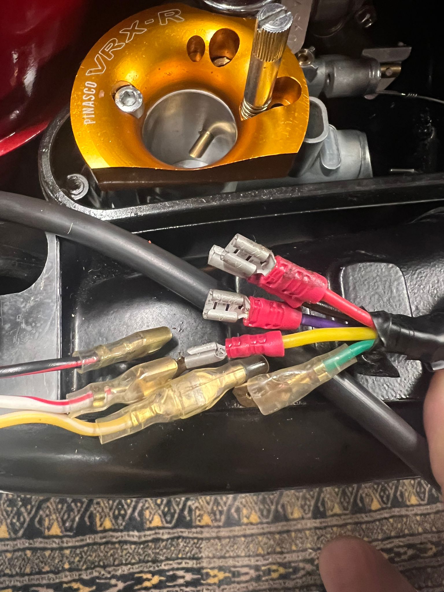 Ich würde das schwarz/rote Kabel das in die CDI mit einem grünen Kabel gekoppelt wurde, wieder an den Kabelbaum der Vespa grün anschließen.