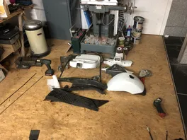 Nach der Zerlegung nimmt Don alle Lackteile mit nach einem Briefing von mir mit den Polituren von der Orange, reinigt alles und bereitet auf mitsamt den Kunststoffteilen. Ich kümmere mich dann um den Motor und den Rest in der Zwischenzeit.