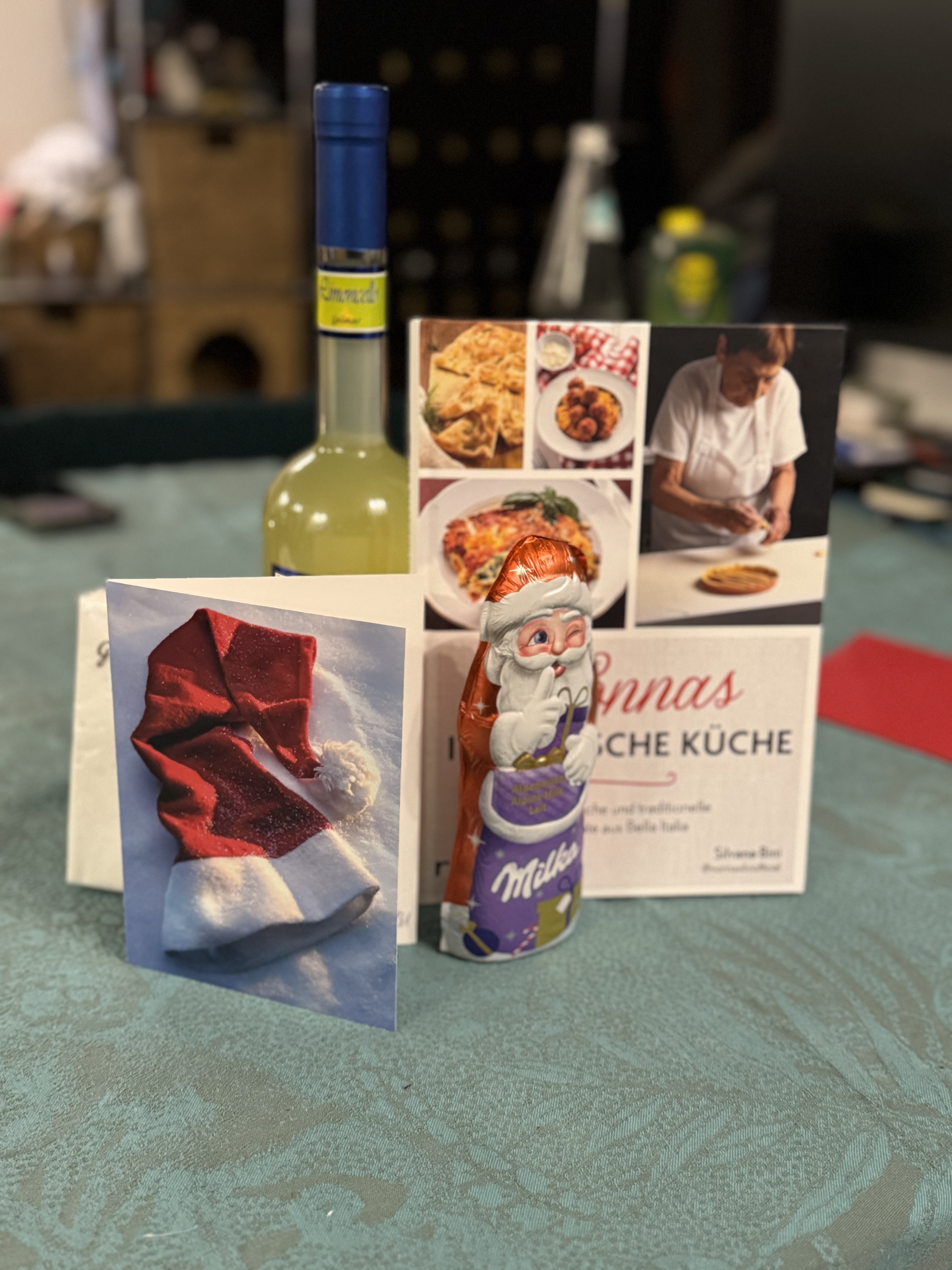 Ganz herzlichen Dank an meinen Wichtel, der mir mit innovativer Verpackungstechnik, flüssigem Gaumenschmaus und Nonna Silvis Kochbuch viel Freude bereitet hat.