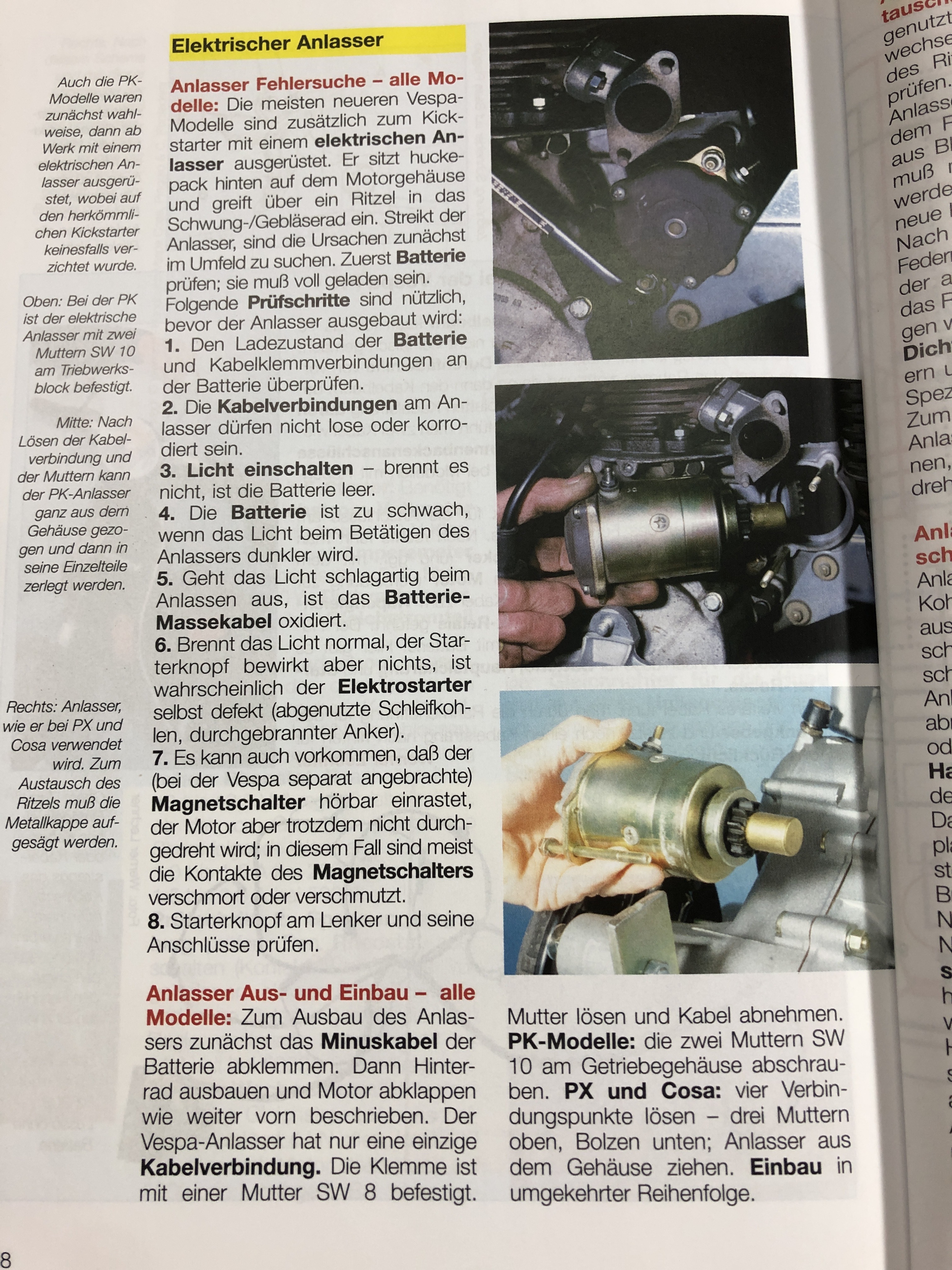 Ich besitze seit ein paar Monaten eine Cosa 200 aus 89 mit E-Starter. E-Starter und Kickstarter funktionierten normal.