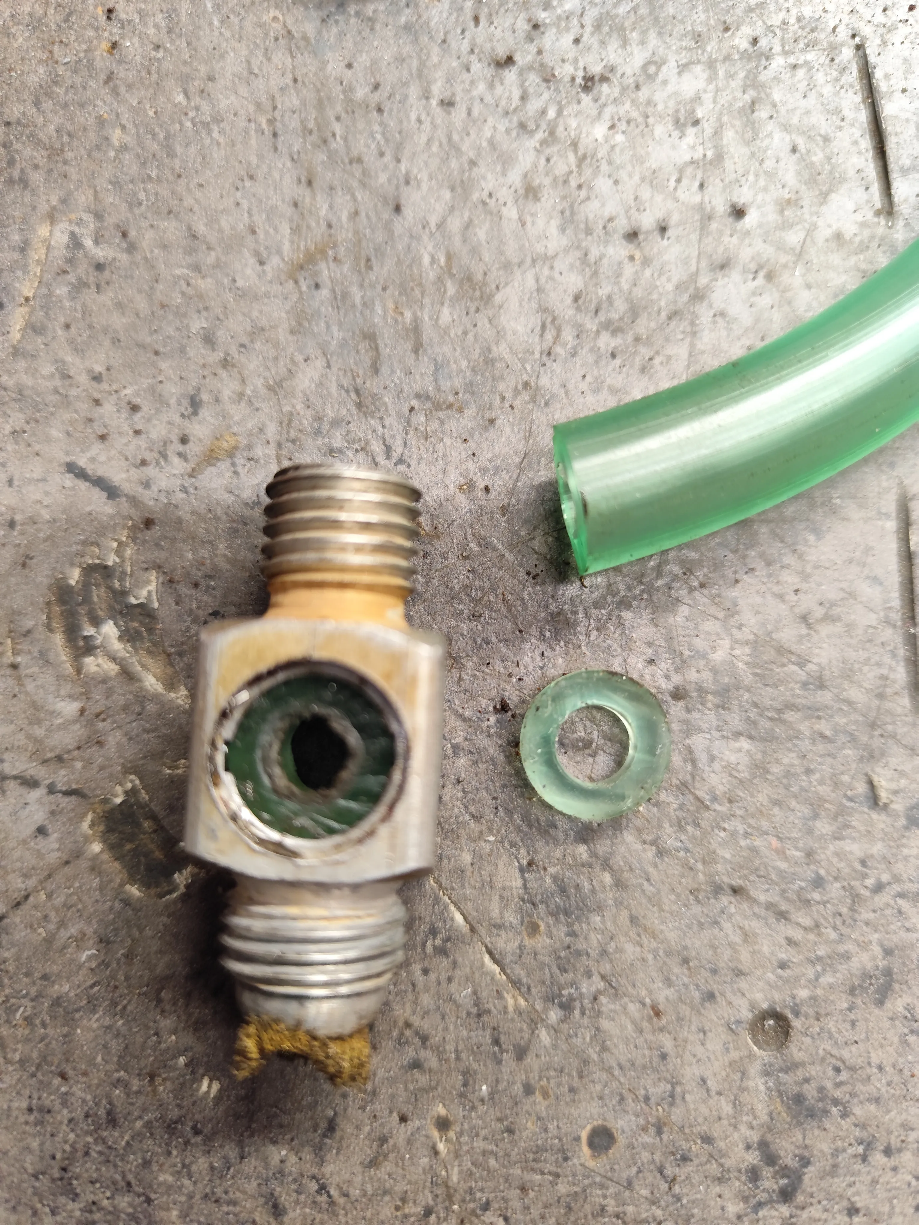 Leider ist der originale Sprithahn undicht. Da saß ne komische Dichtung drin. Noch nie gesehen...