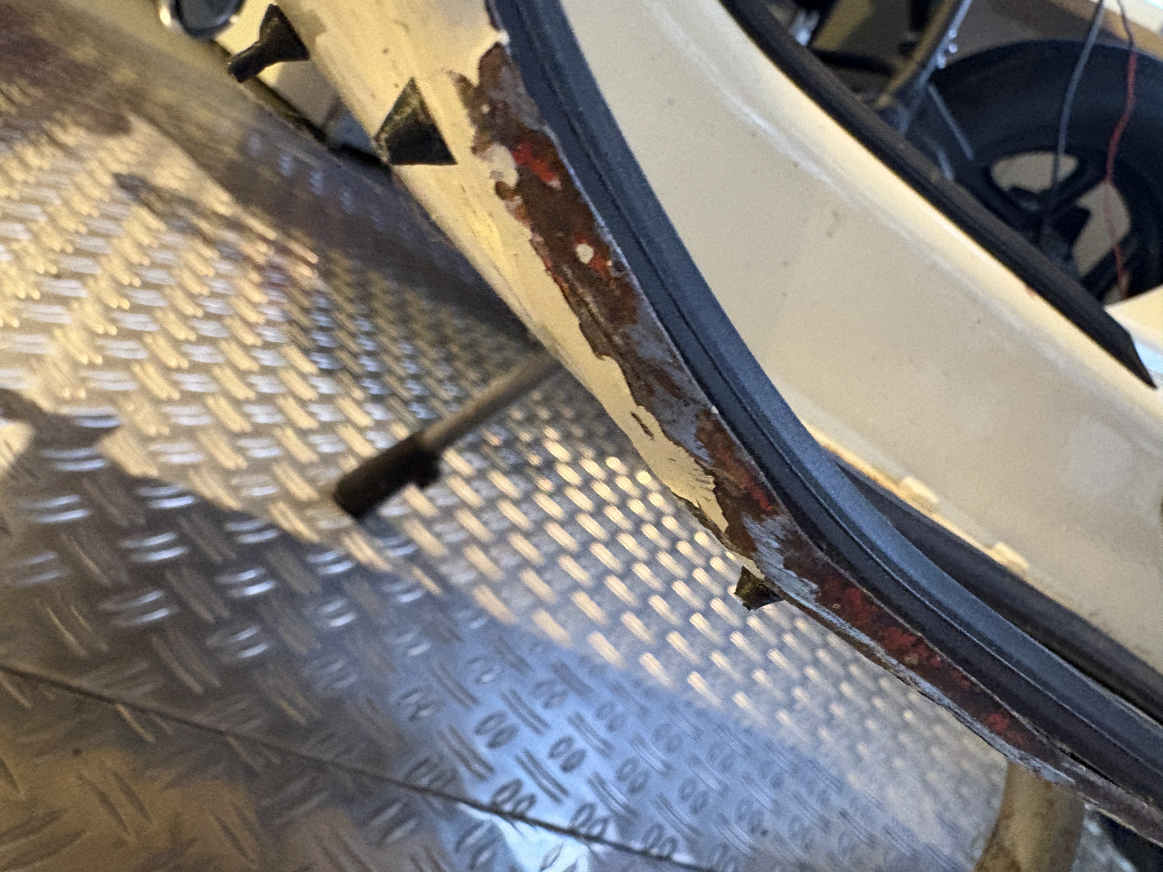Den Rost finde ich persönlich nicht so schlimm. Da hätte ich schon schlimmeres gehabt. Das kleine Rostloch im Trittbrett meiner Rundlicht stört mich auch nicht wirklich.