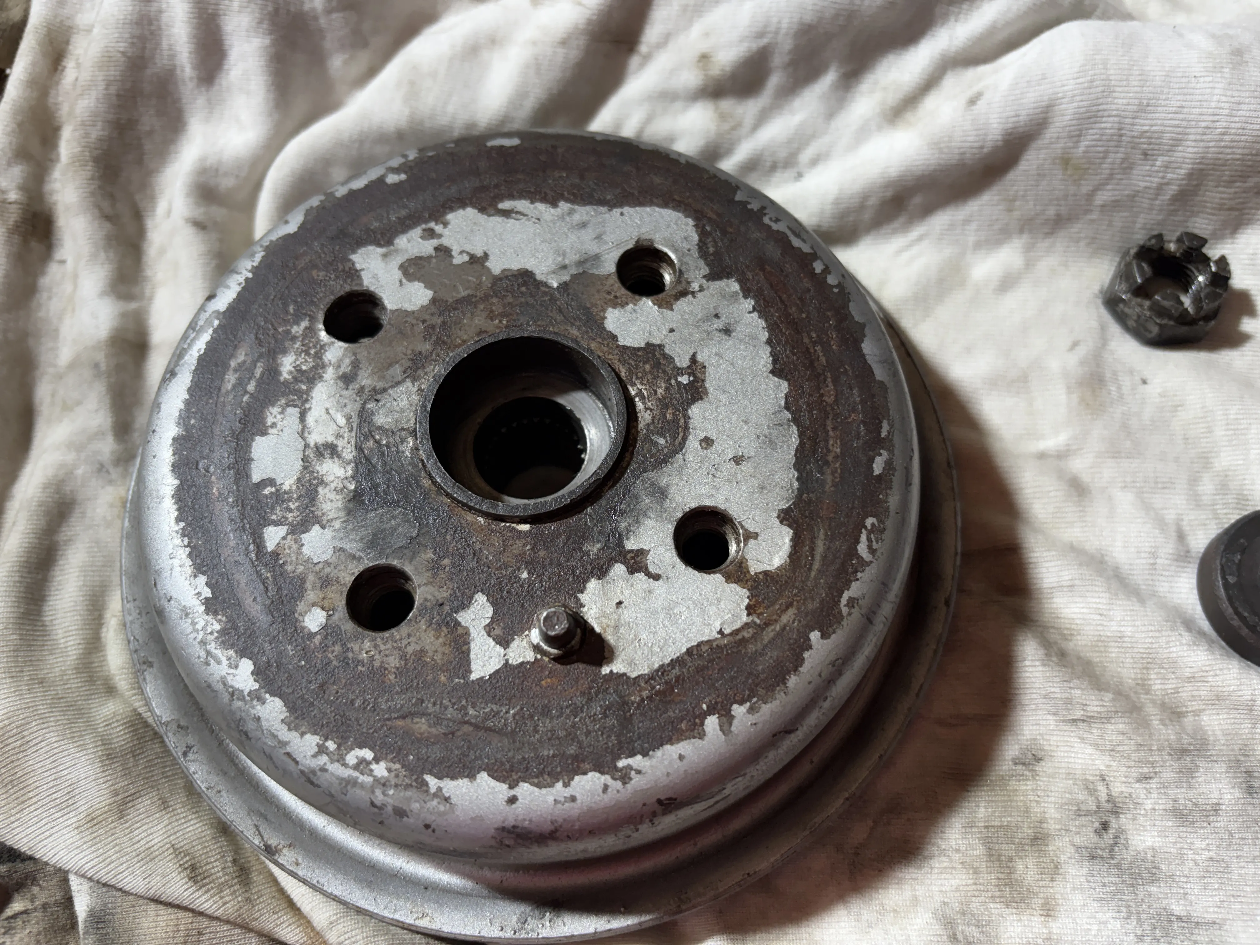 Die Bremstrommel hatte Spiel, hab die mal abgenommen. Werde auf jeden Fall neue Beläge drauf machen.