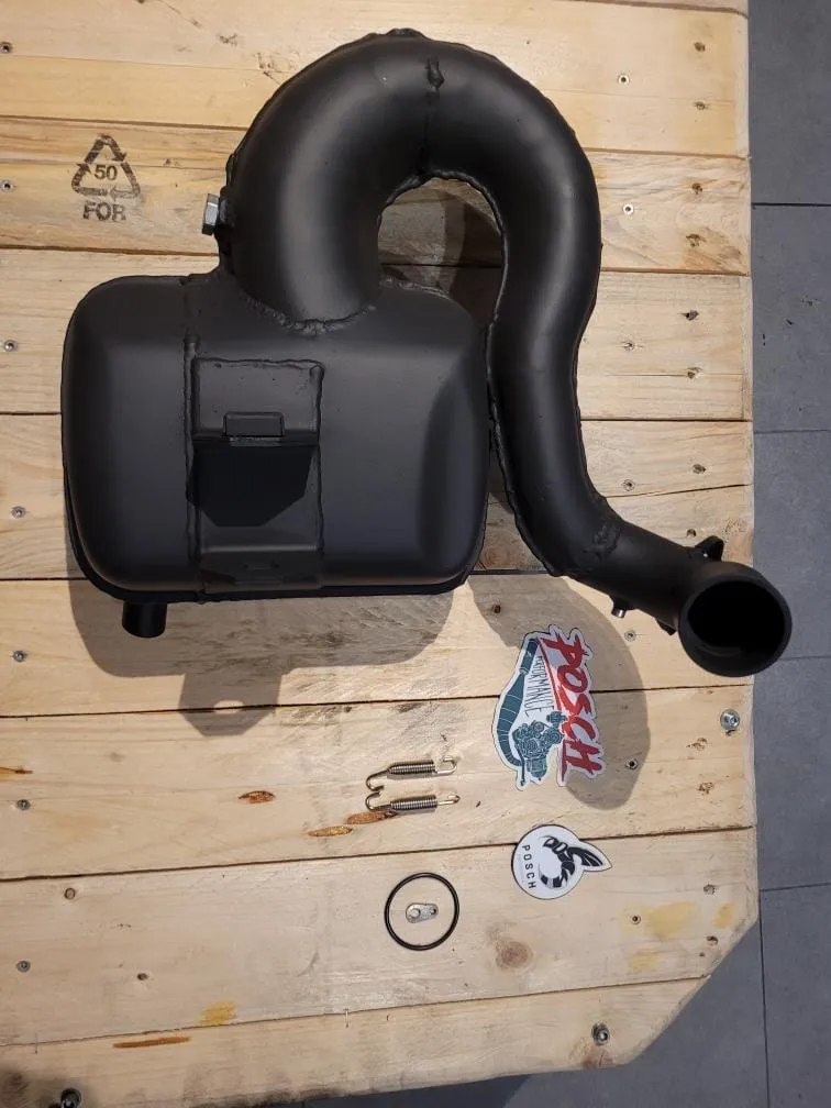 Würde dann insgesamt 225ccm betragen. Als Auspuff habe ich mir einen von Jürgen Posch bauen lassen. Die Racing Resi mit Viton Flansch, Lambdasonden Anschluss und Temperatur Anschluss.