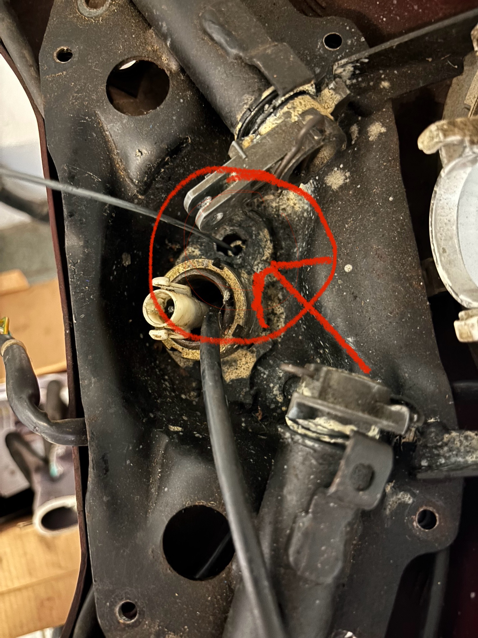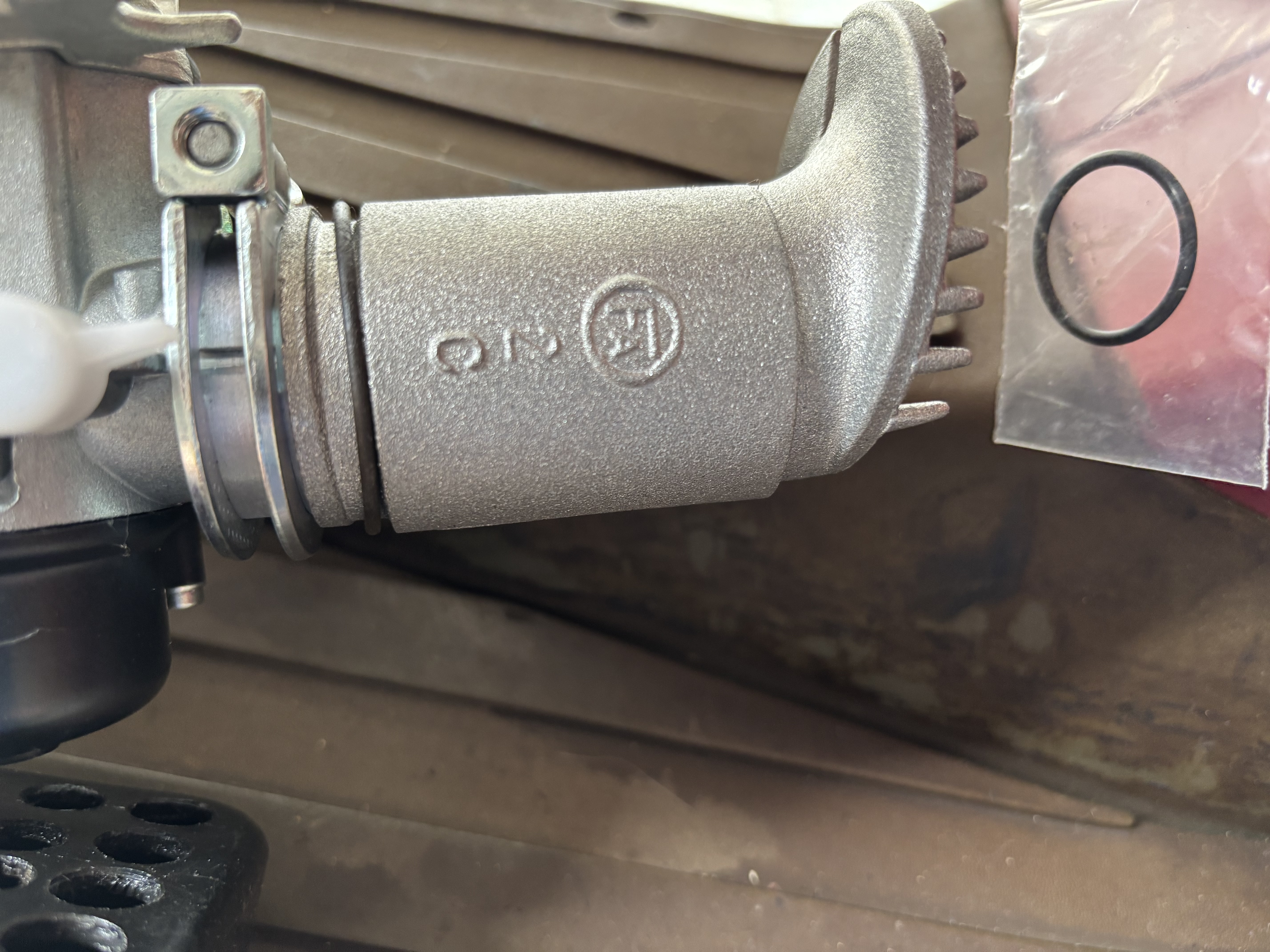 Gummibalg ist falsch herum, der Ring kommt weiter nach hinten und hält die Gusskappe auf dem Ansaugstutzen. Die Schelle für den Vergaser muss 90 Grad zu dir gedreht werden.
