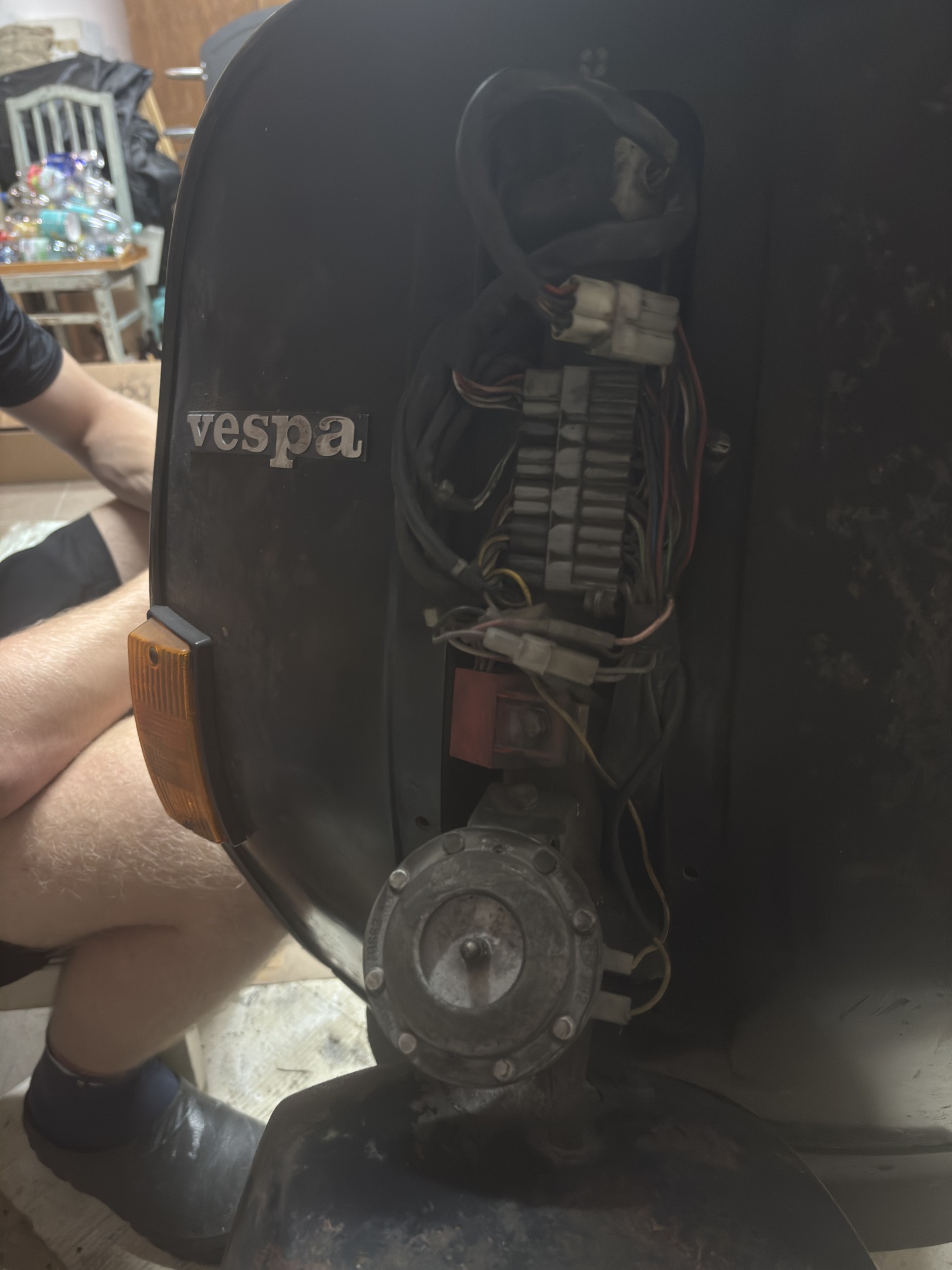 Die Vespa ist ca 5 Jahre gestanden und ich nehme an, dass eventuell altes Fett hier das Problem ist oder Rost am Seil Zug ?