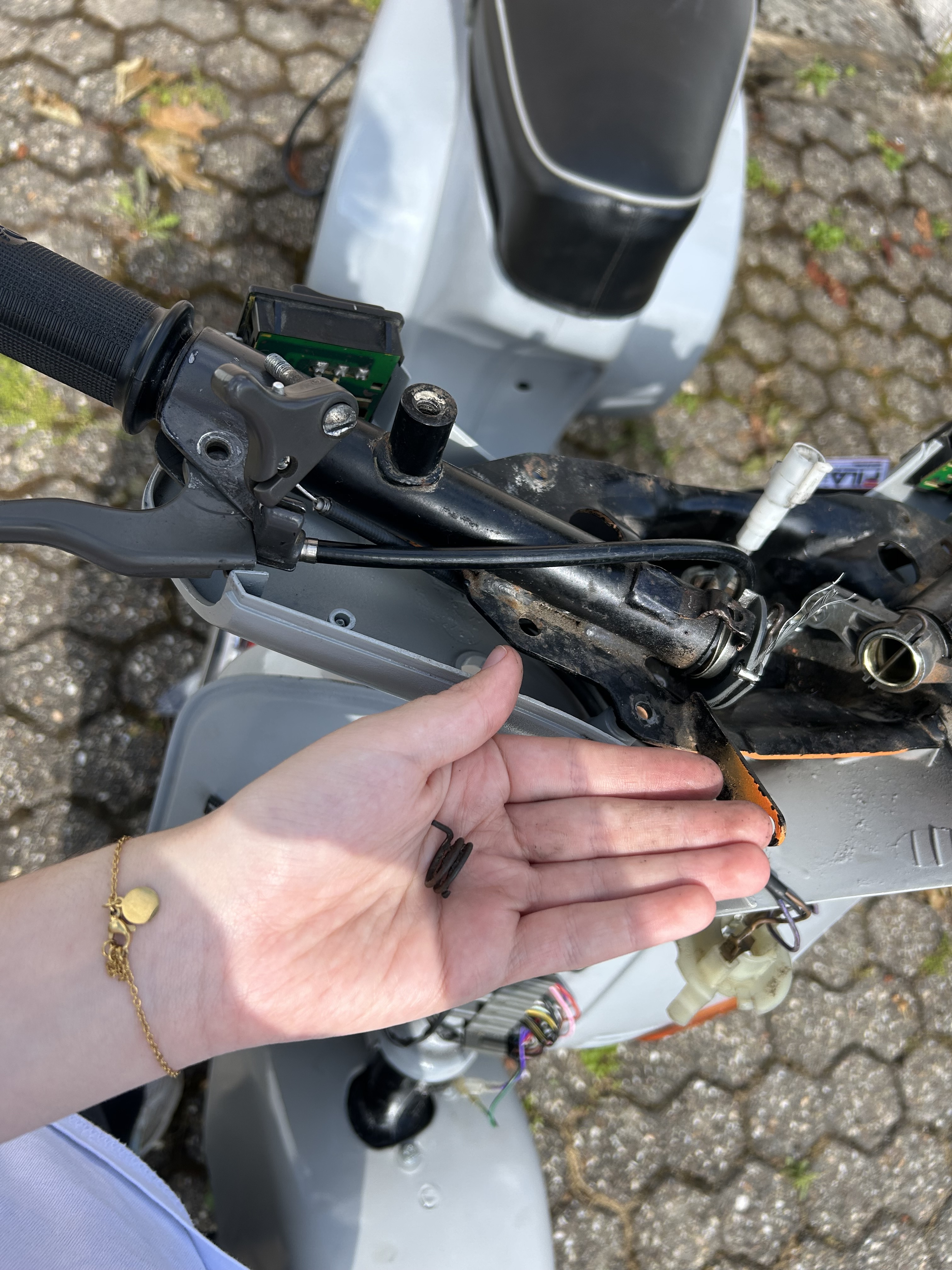 Die Feder ist nicht für den Gaszug. Ich meine, dass sie an den Bremshebel gehört.