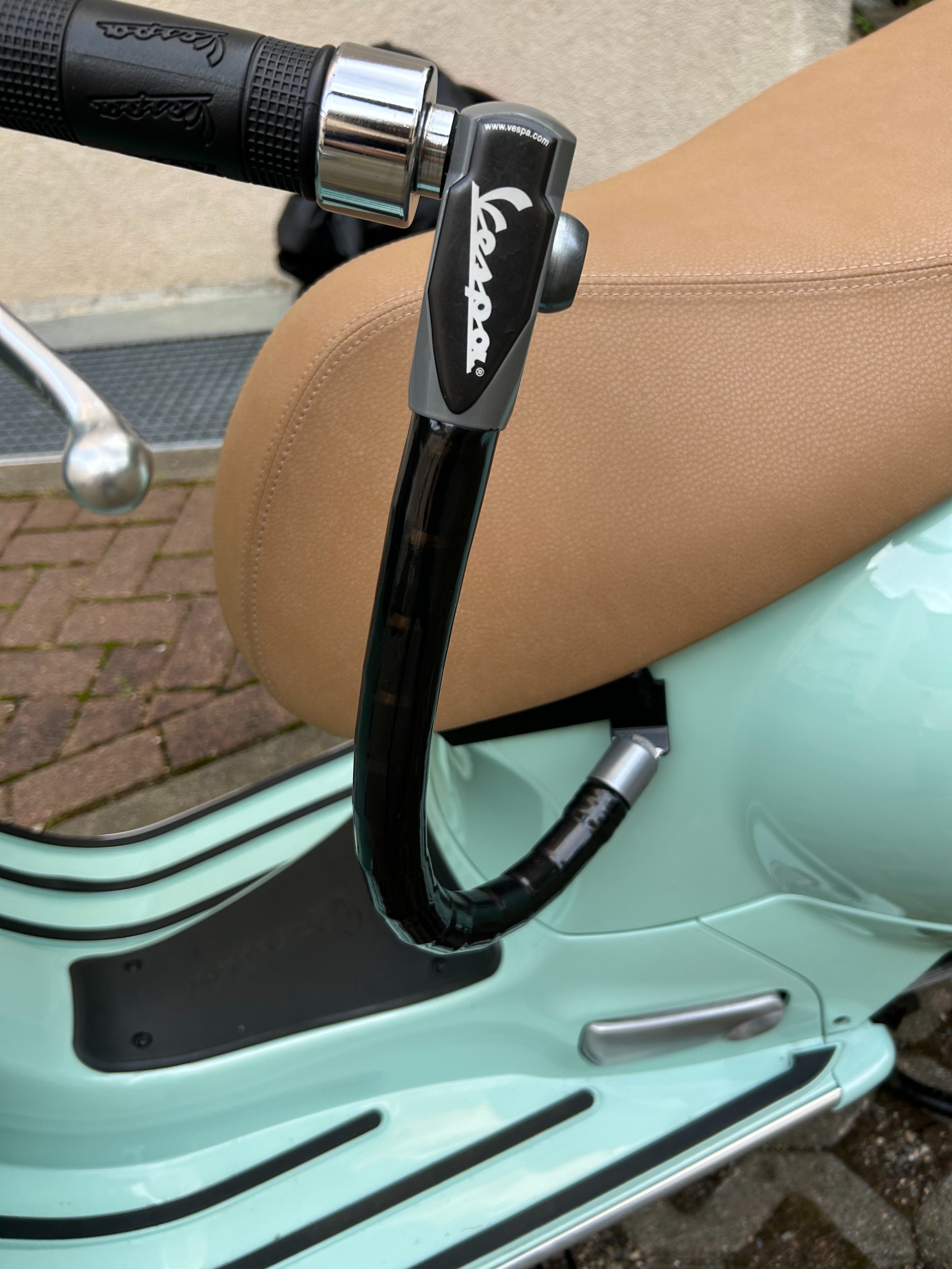 ✅ Original Vespa-Lenkradschloss (Diebstahlsicherung mit Stahlgliederkette – am vorderen Rumpf fixierbar)