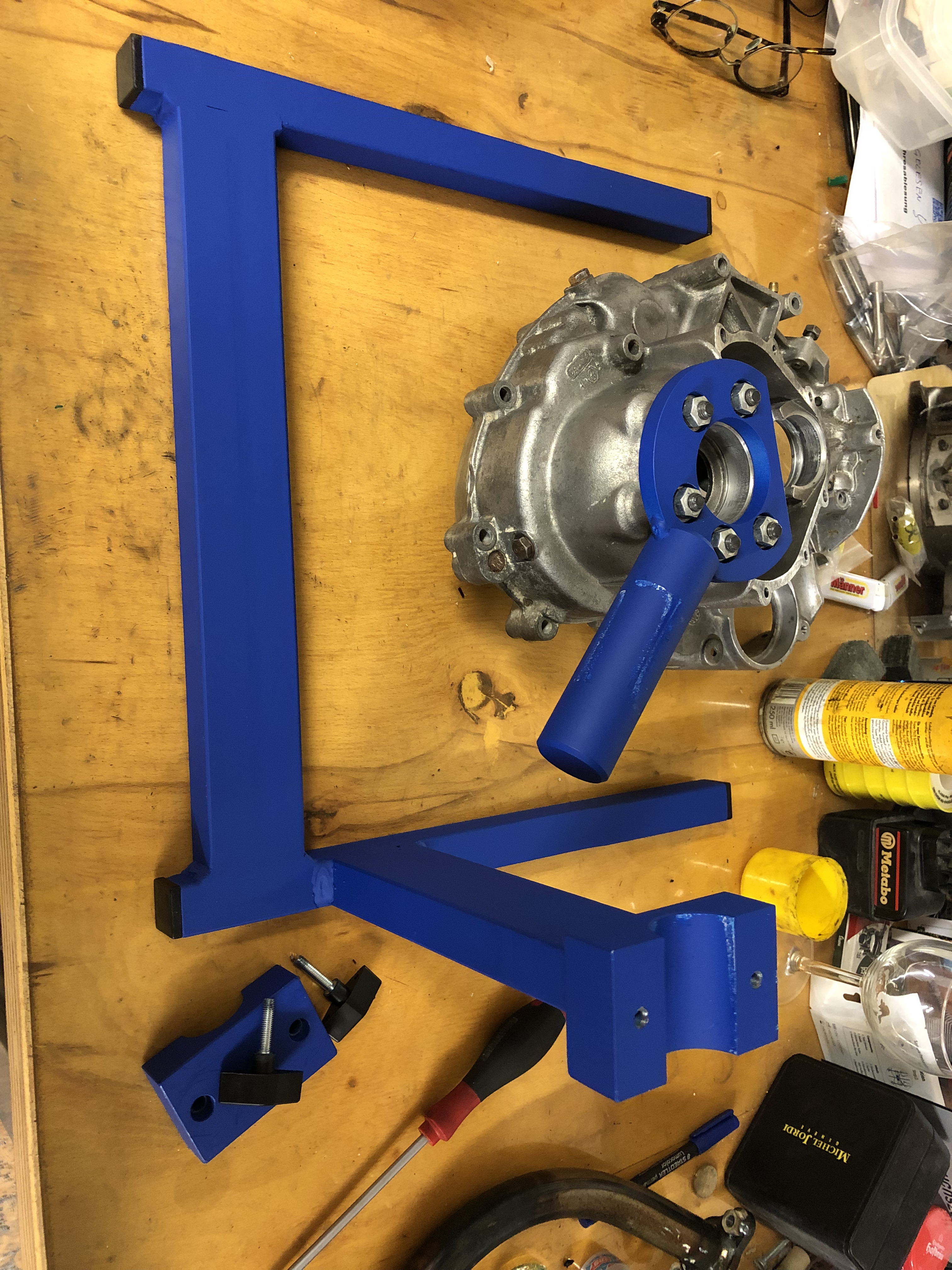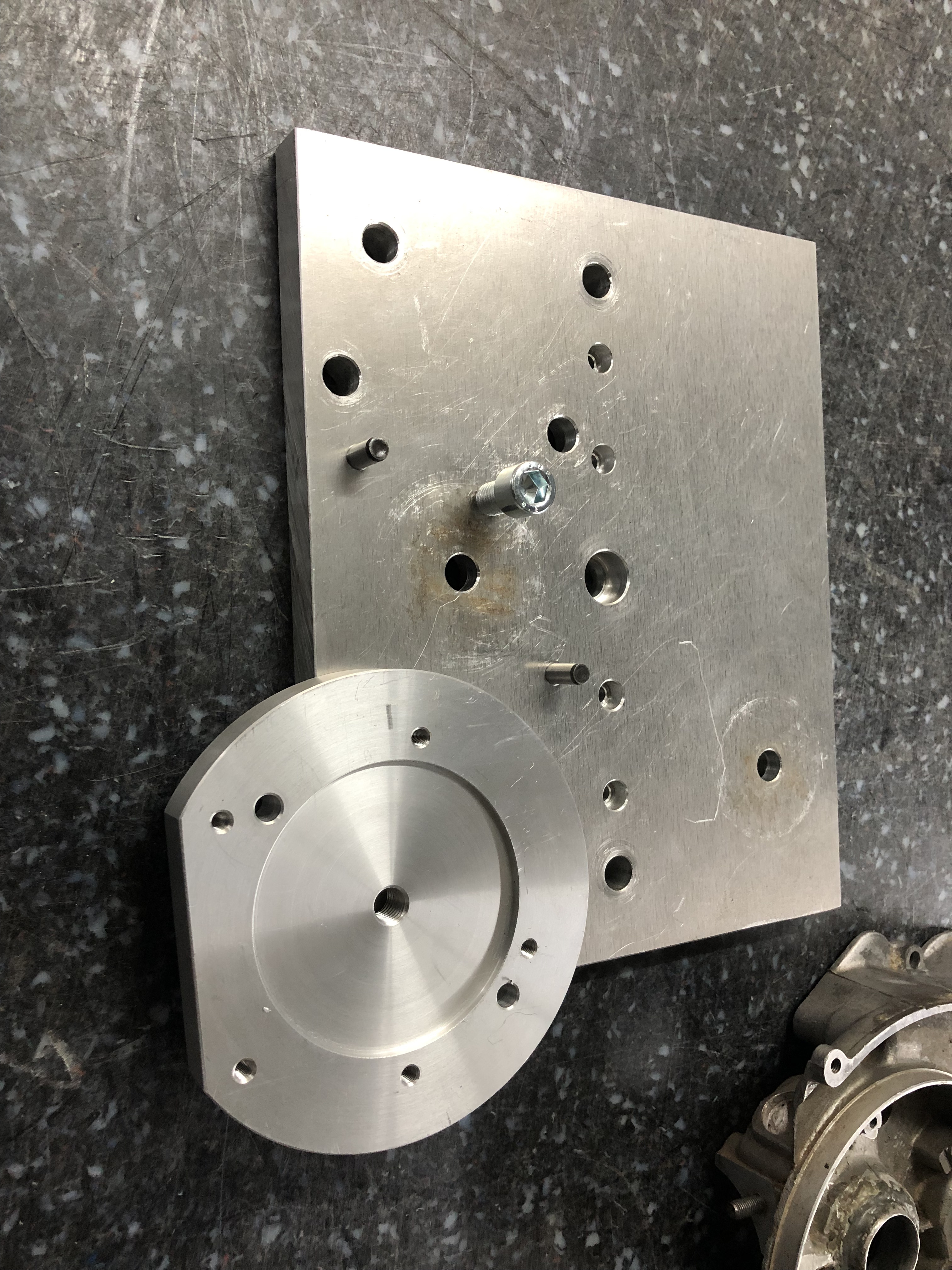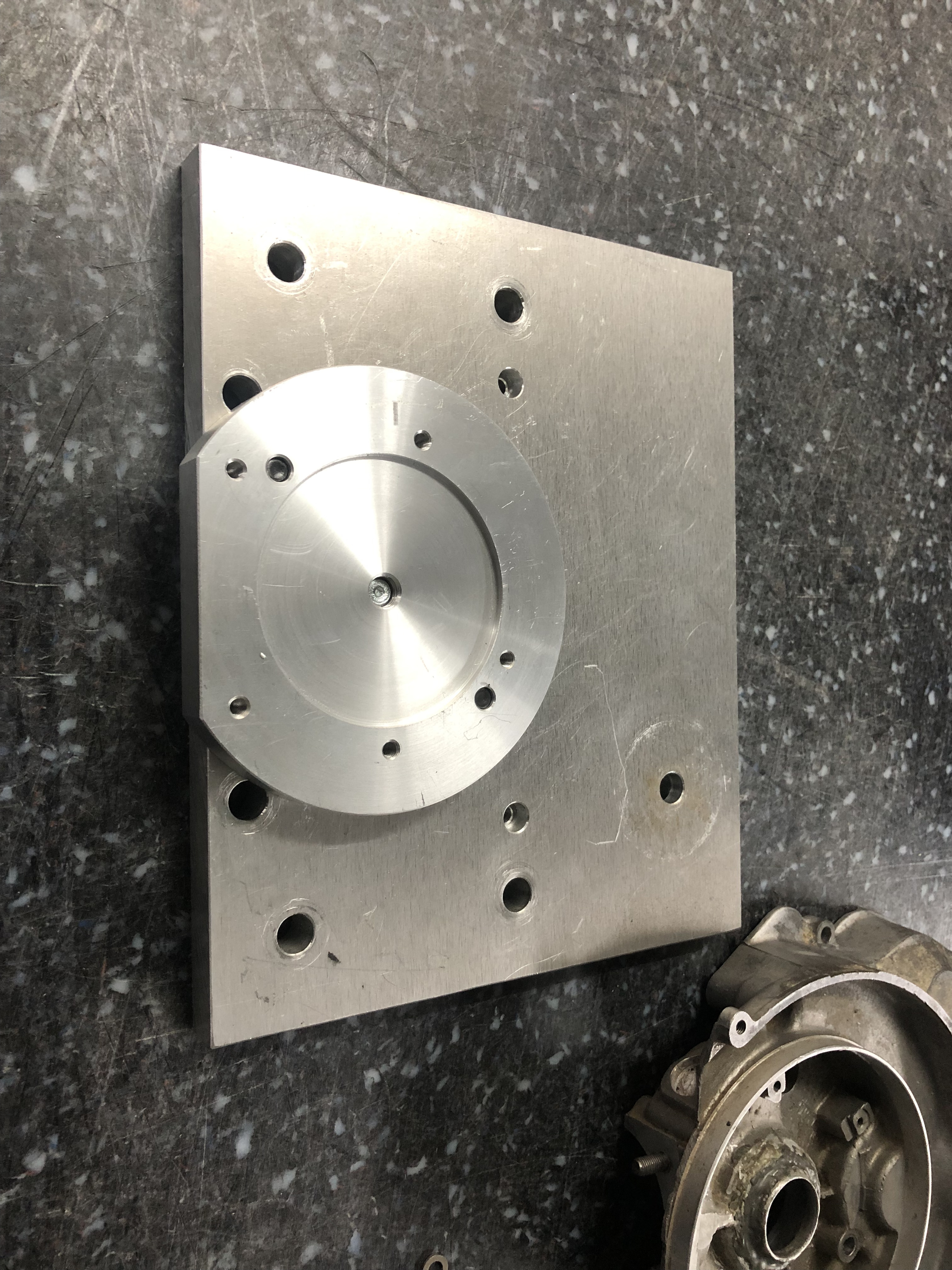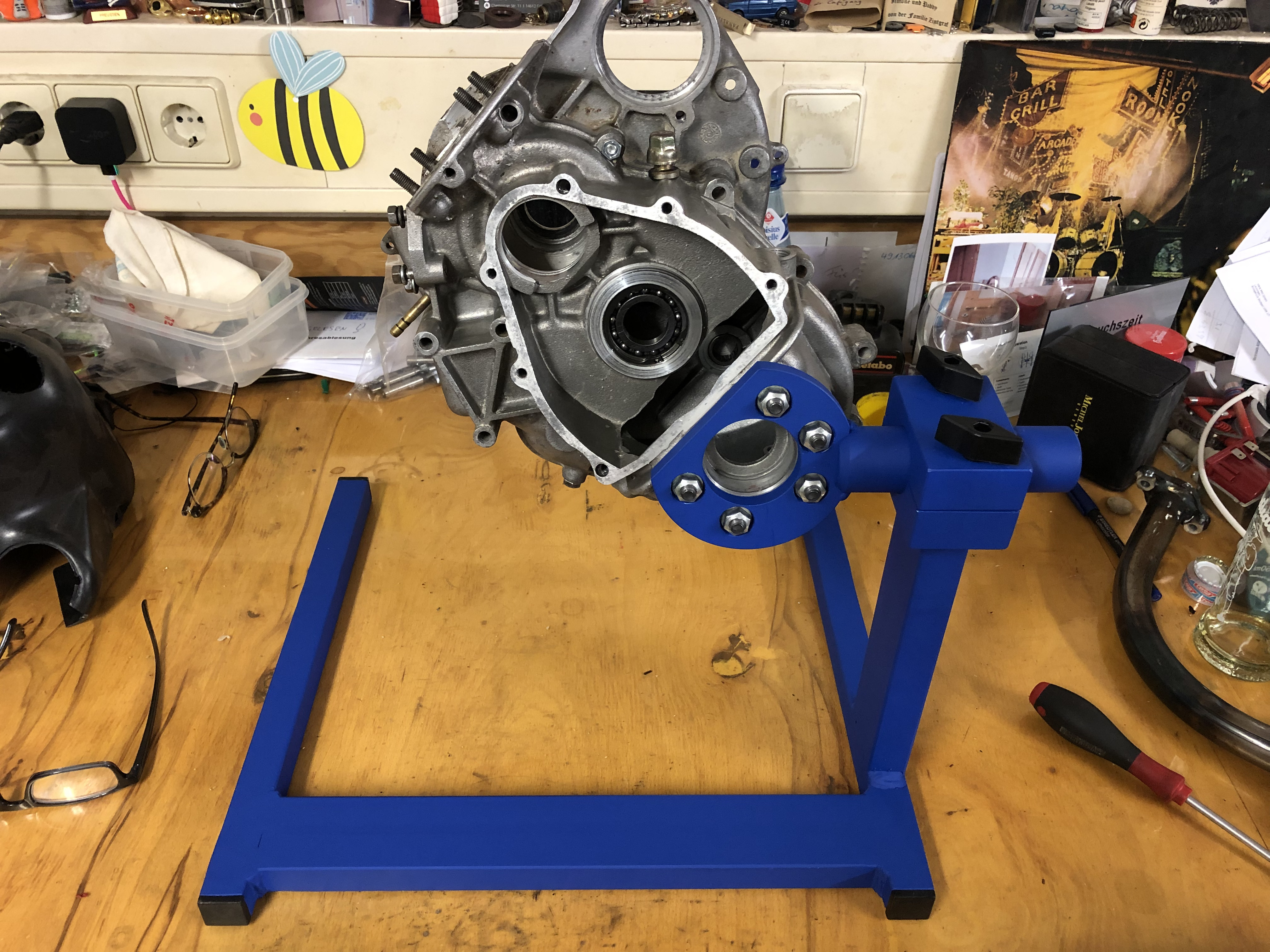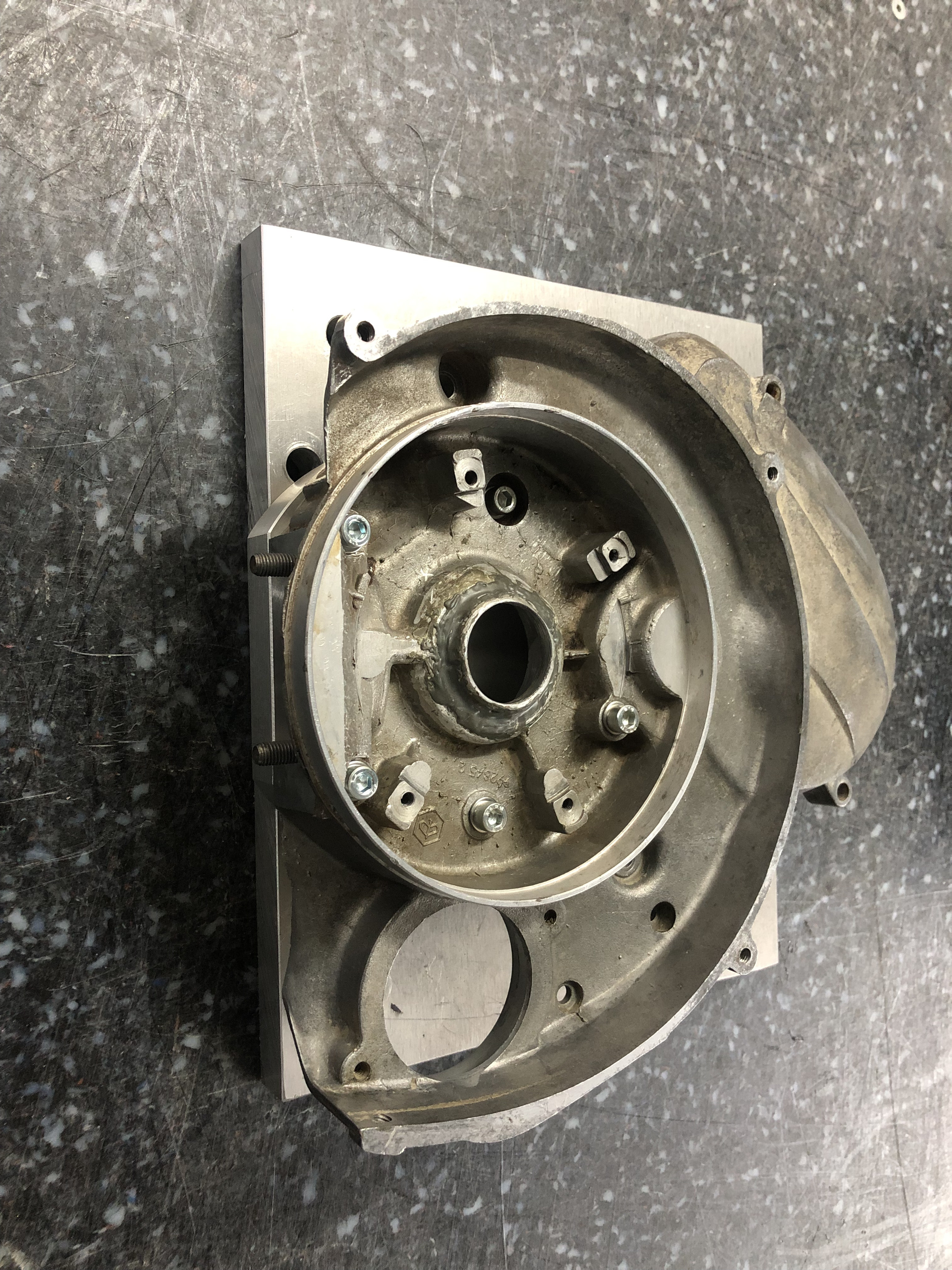 Womit ich schon beschäftigt bin, die Gehäuseschalen sind mal gereinigt und noch nicht gestrahlt. Ich bau gerade einen Montagständer für den Motor (Apemotorgehäusehälften haben keine Aufnahmen für Silentblöcke) und ich mach mir gerade eine Spannvorrichtung(en) auf die Fräsmaschine für die große Hälfte, eventuell noch eine für die kleine Hälfte.