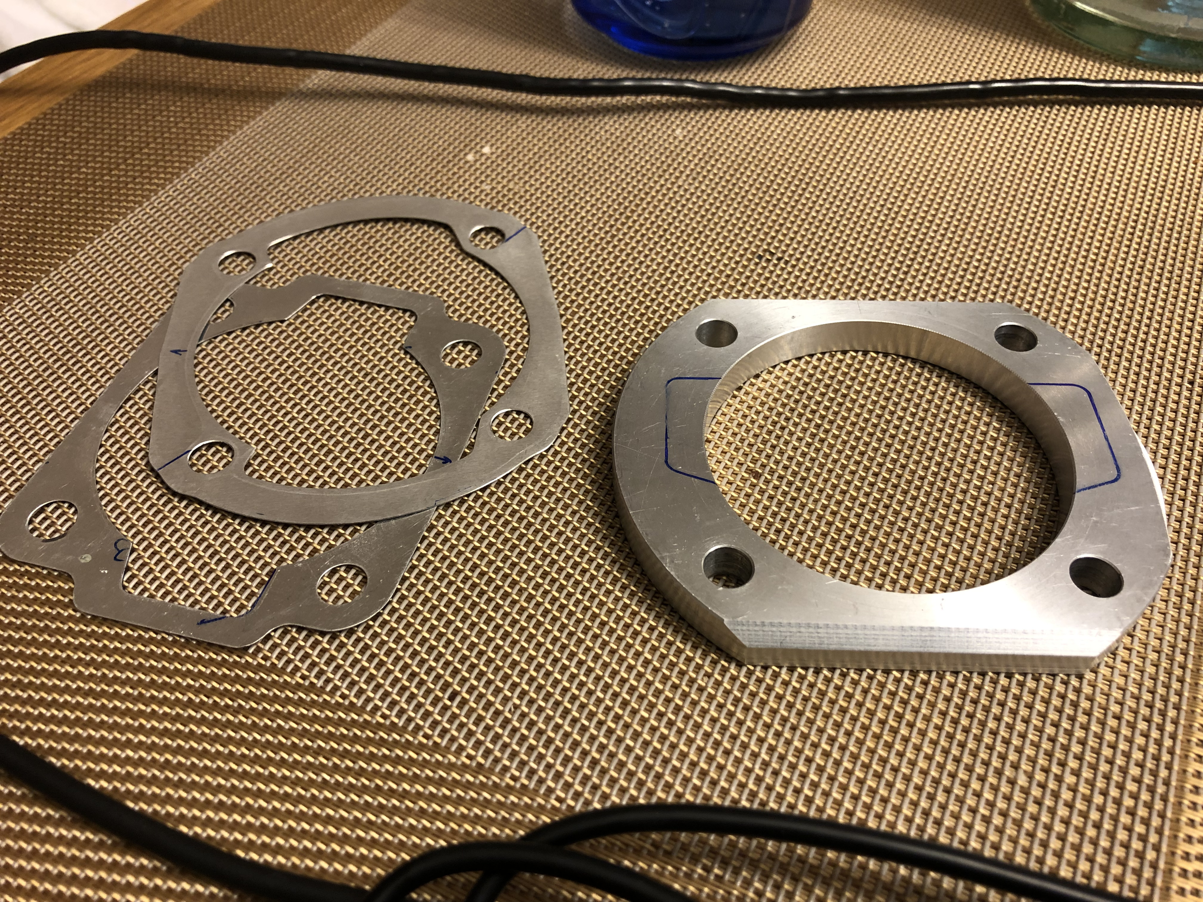Kolben gesteckt und meine geschliffenen 8er Distanzen unter den Polini: