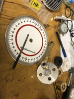 Dann mal das Geraffel komplettiert mit der Uhr für den OT, Rändelschrauben drauf und OT gesucht: