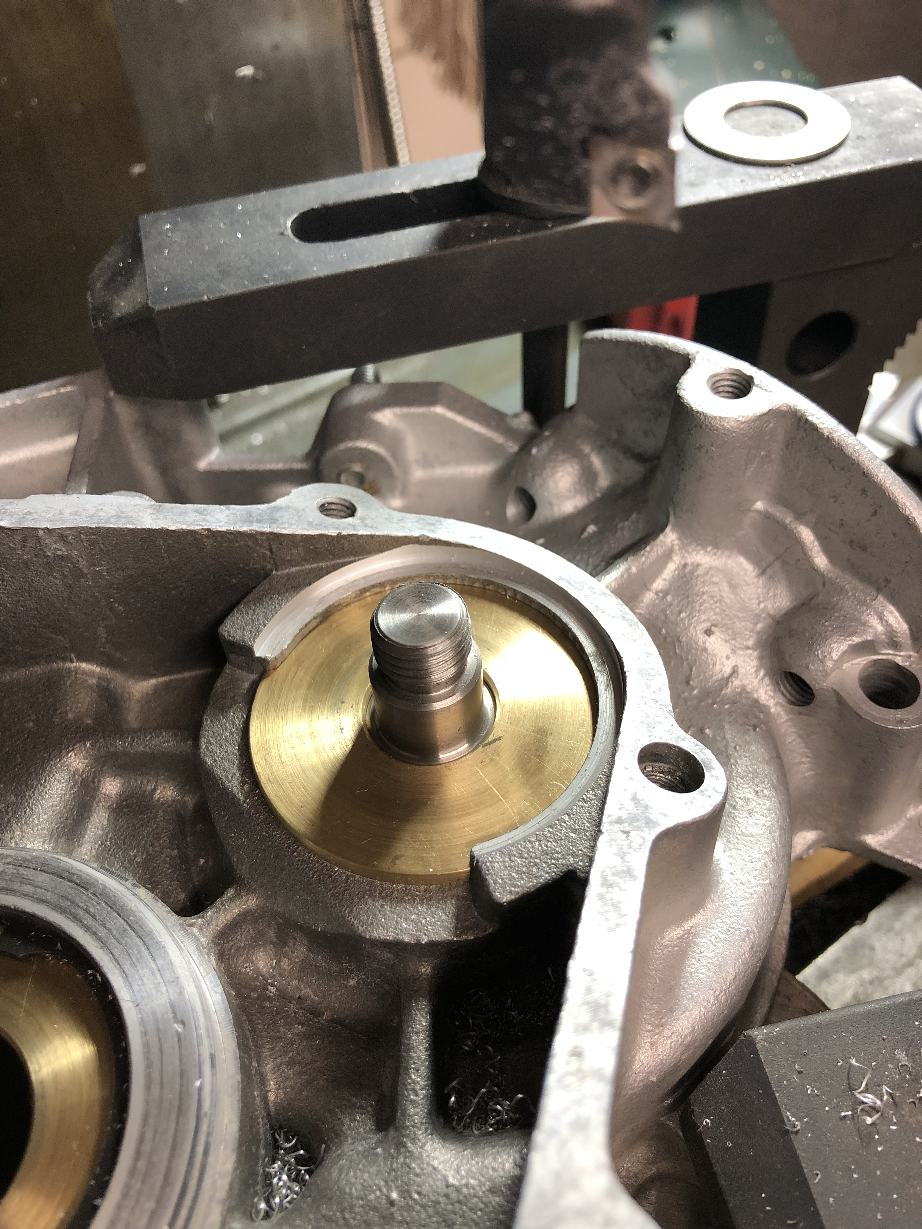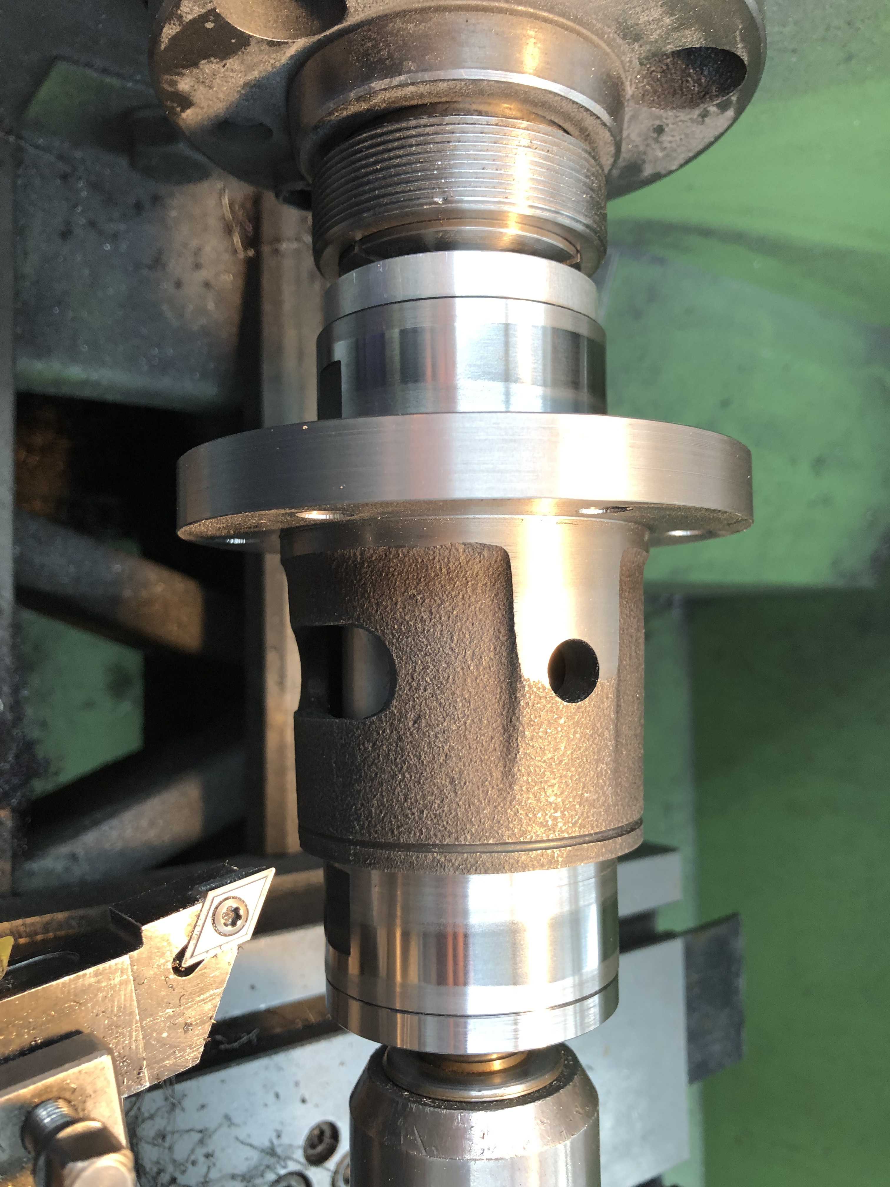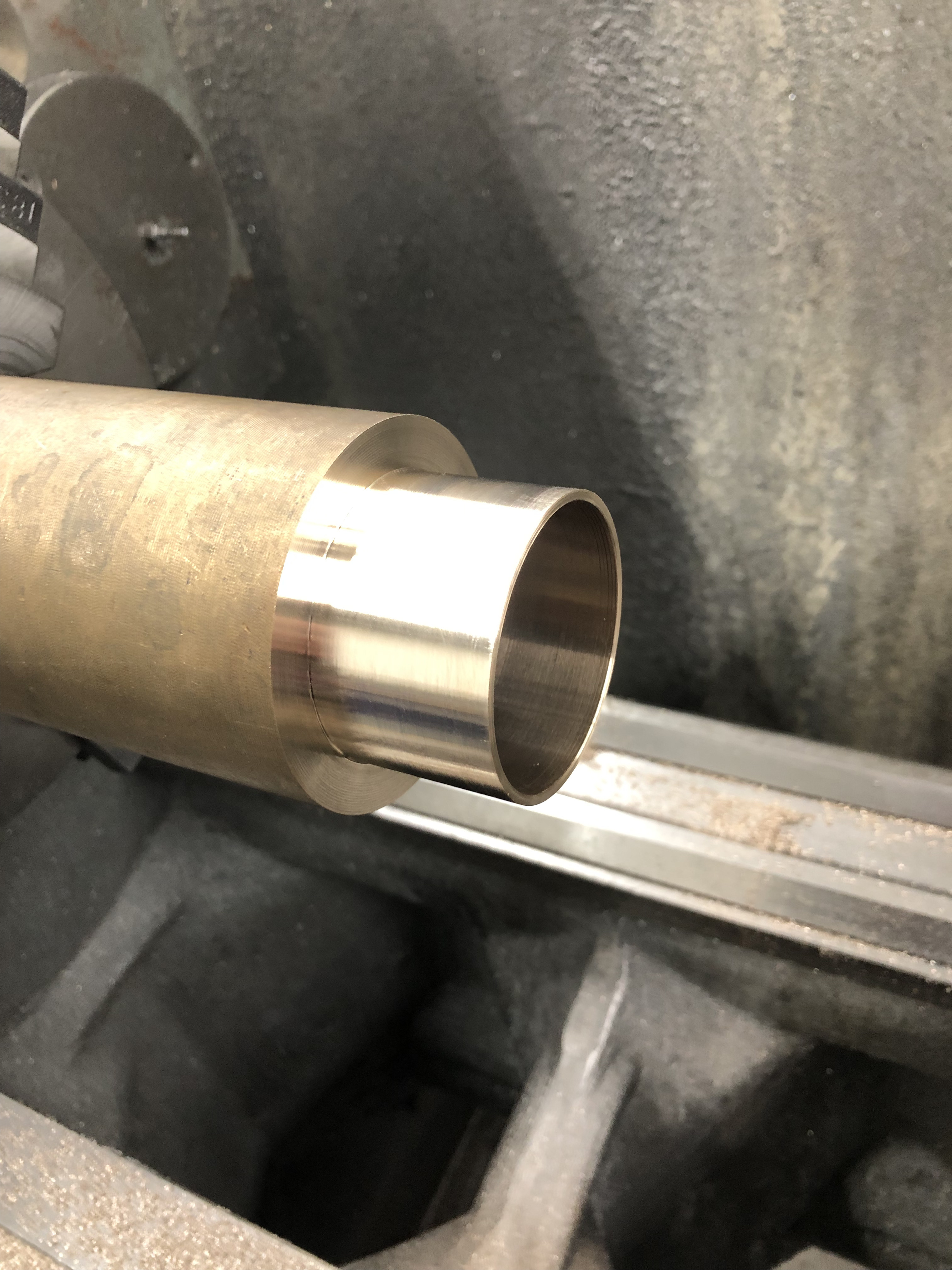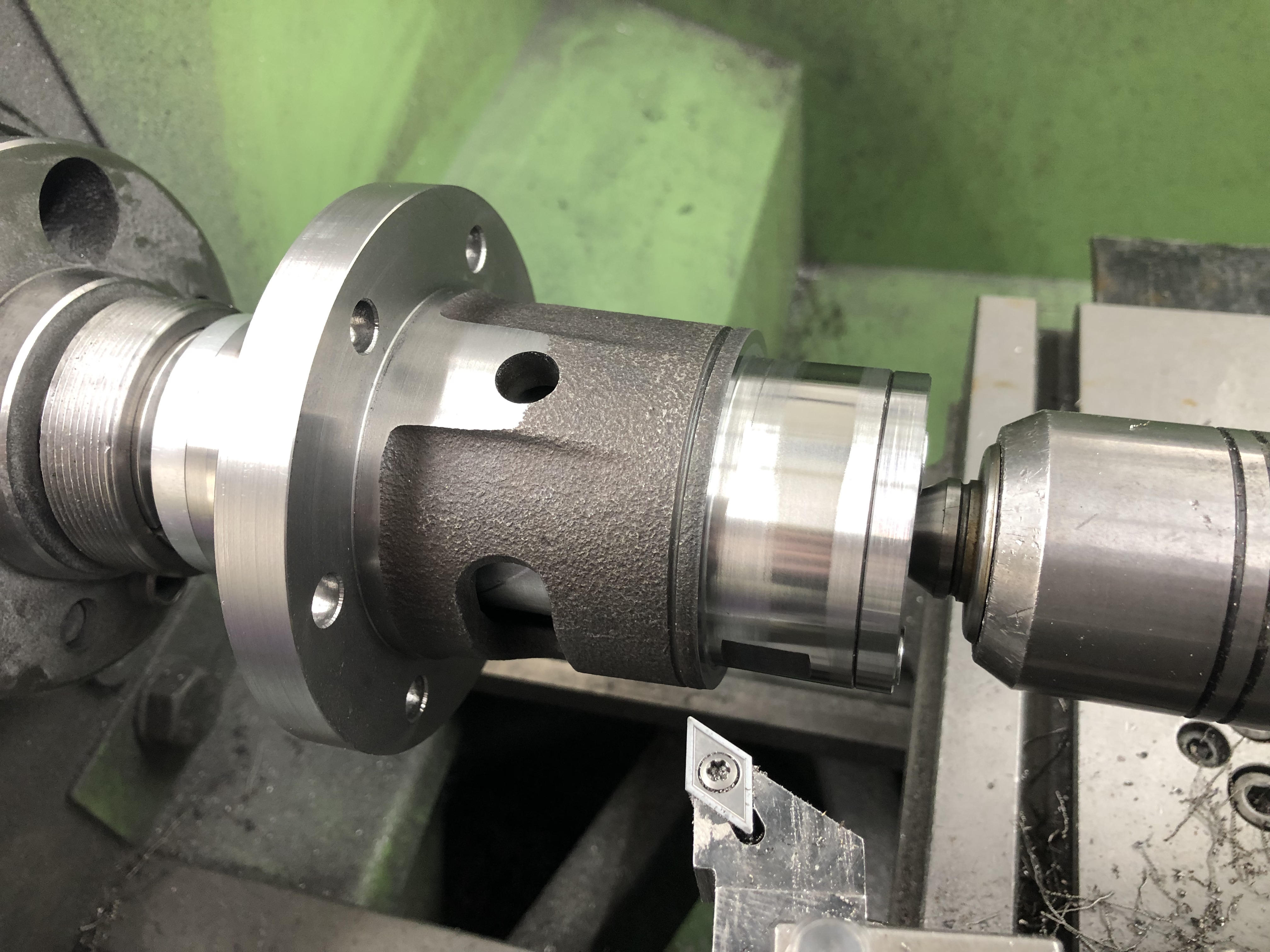Dann auf der großen Drehbank mit dem Lager angefangen, das in die Hälfte kommt, die bisher schon eine hatte: