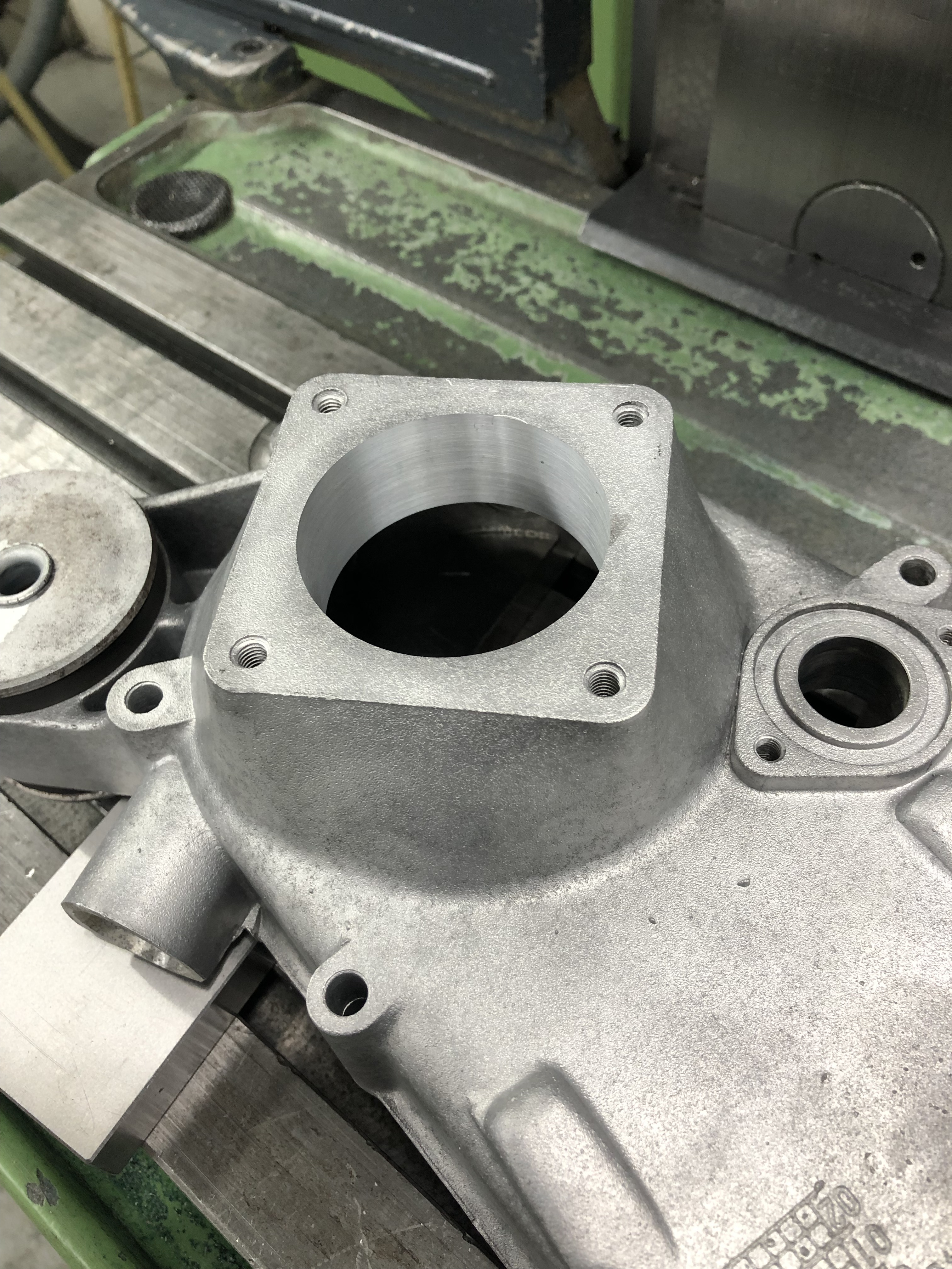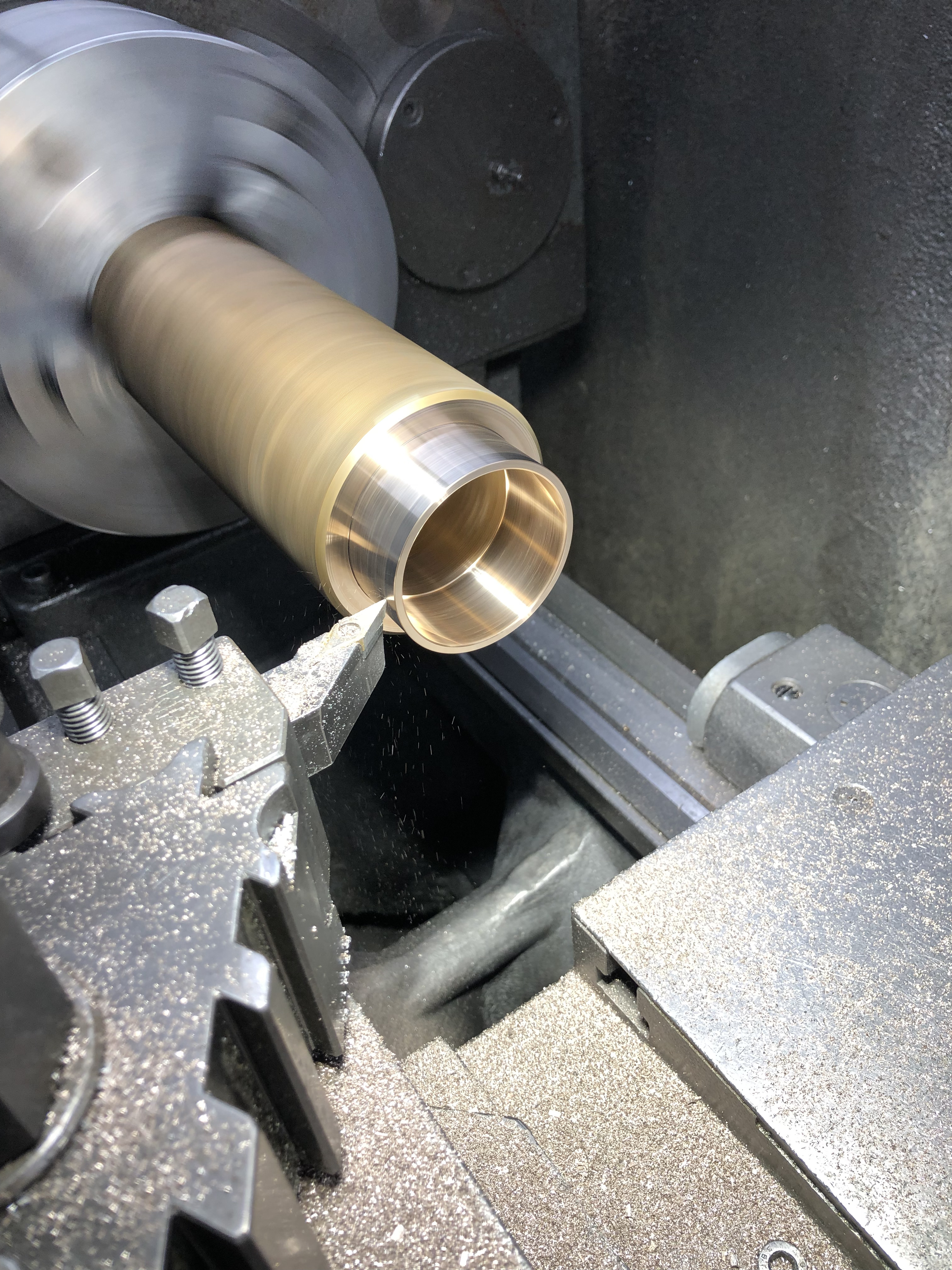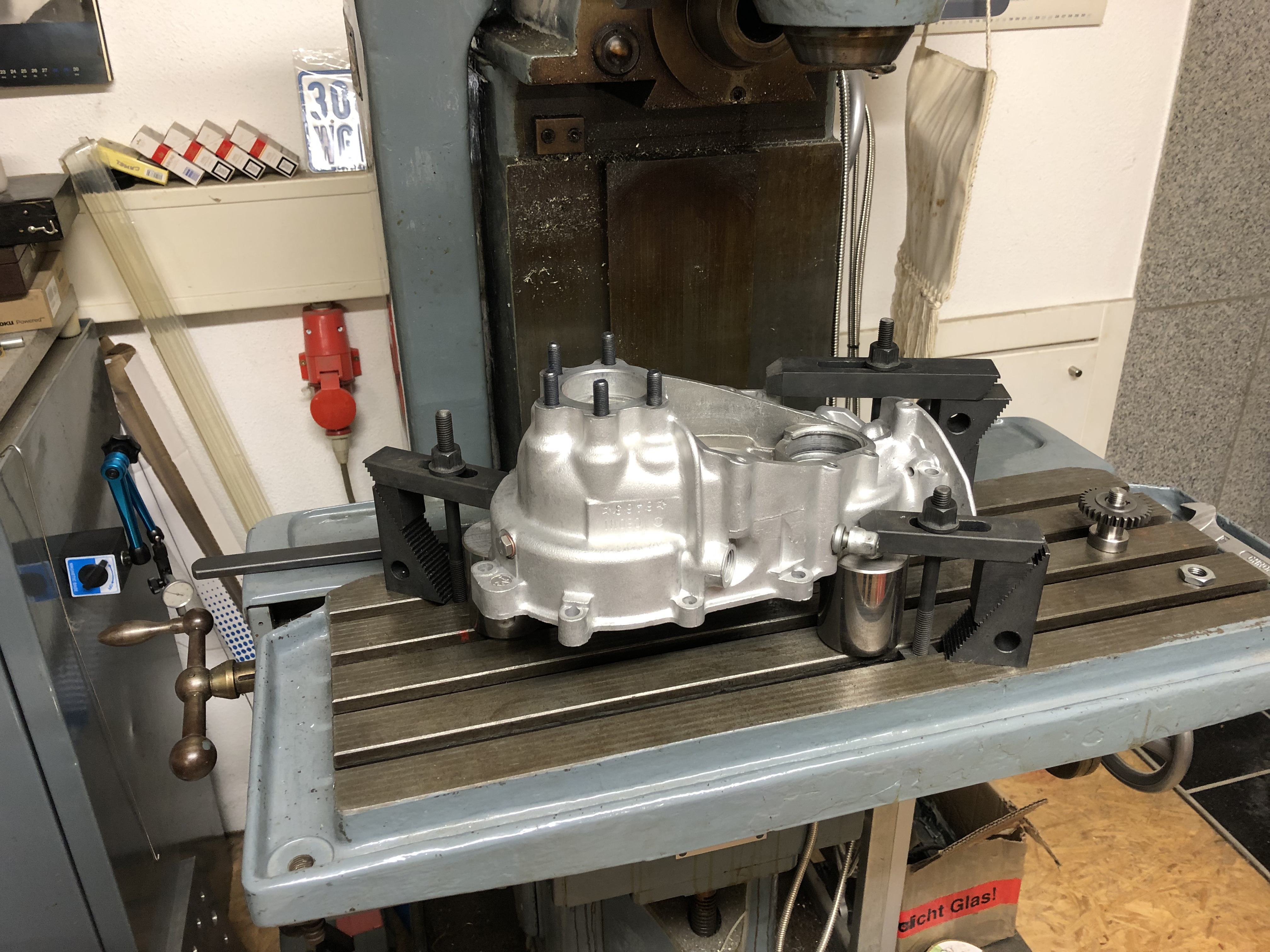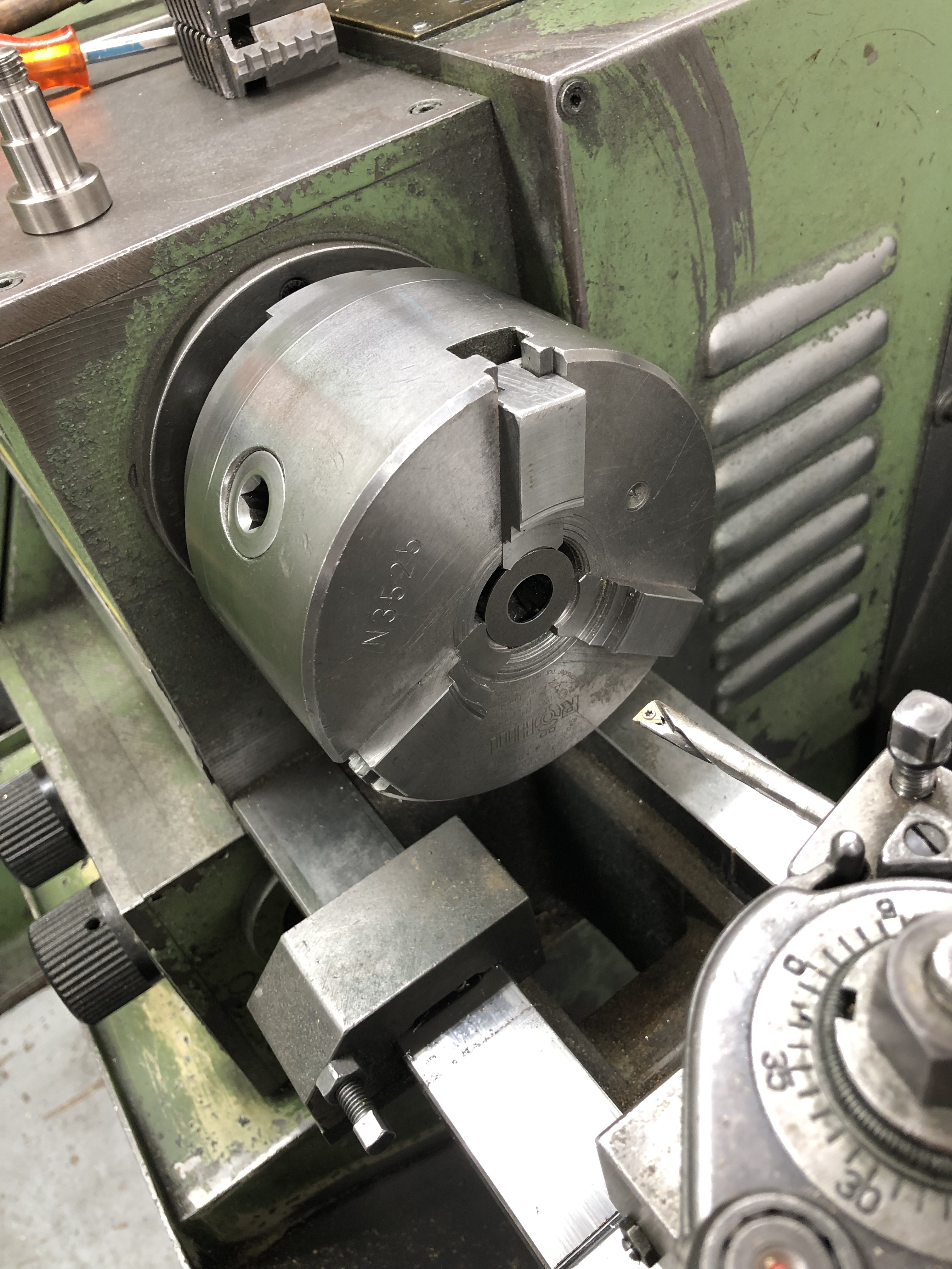 Dann auf der großen Drehbank mit dem Lager angefangen, das in die Hälfte kommt, die bisher schon eine hatte: