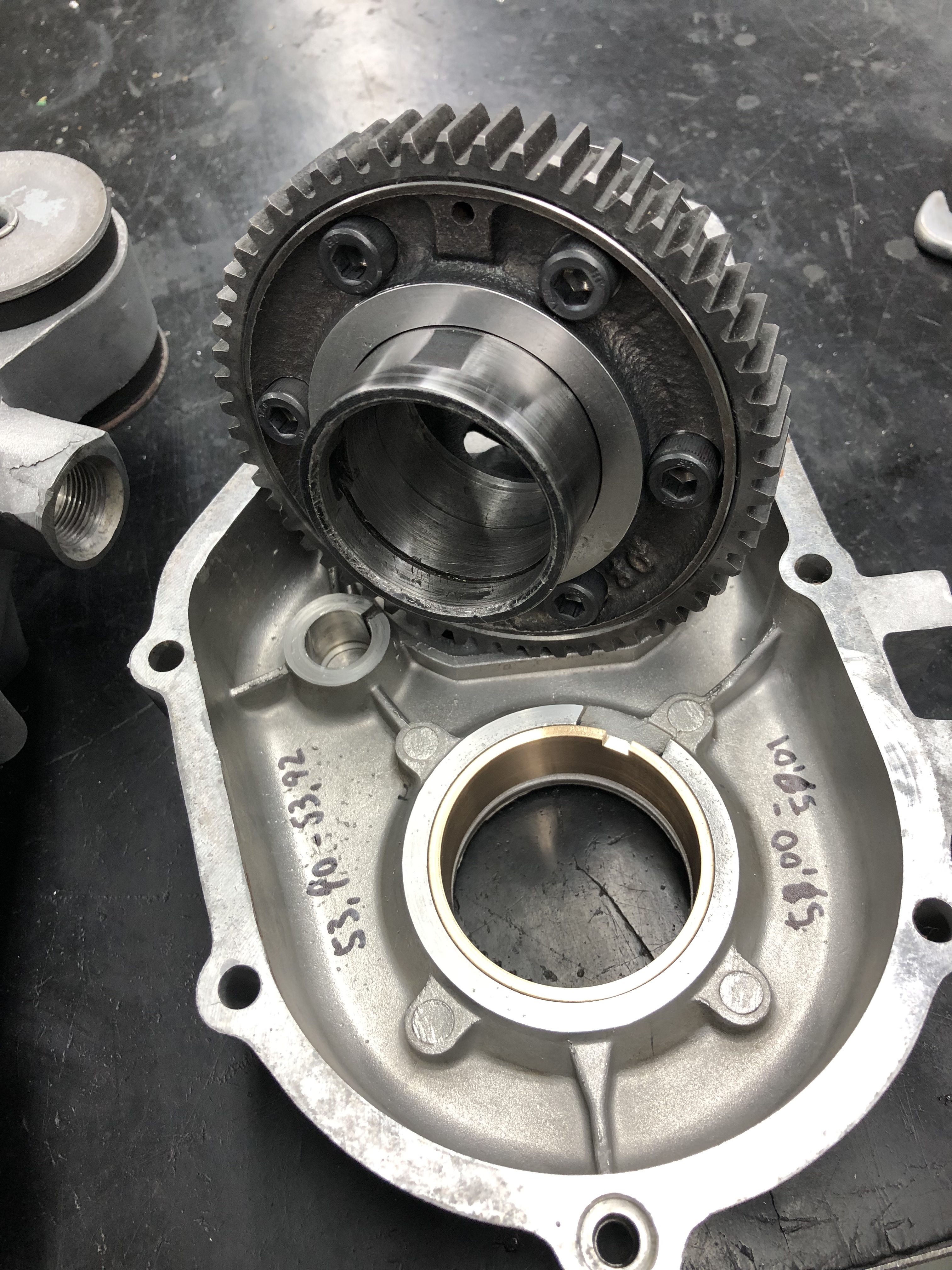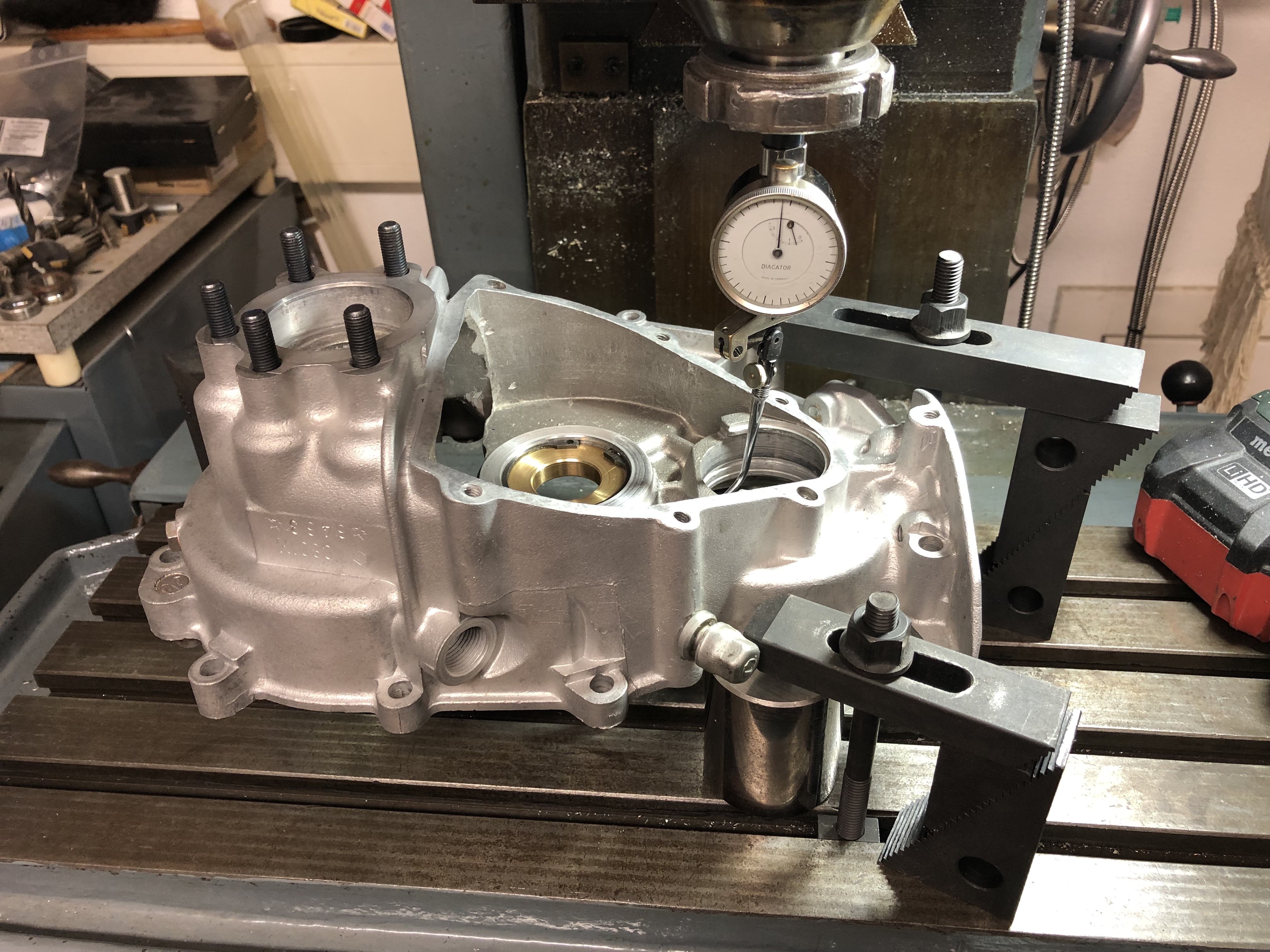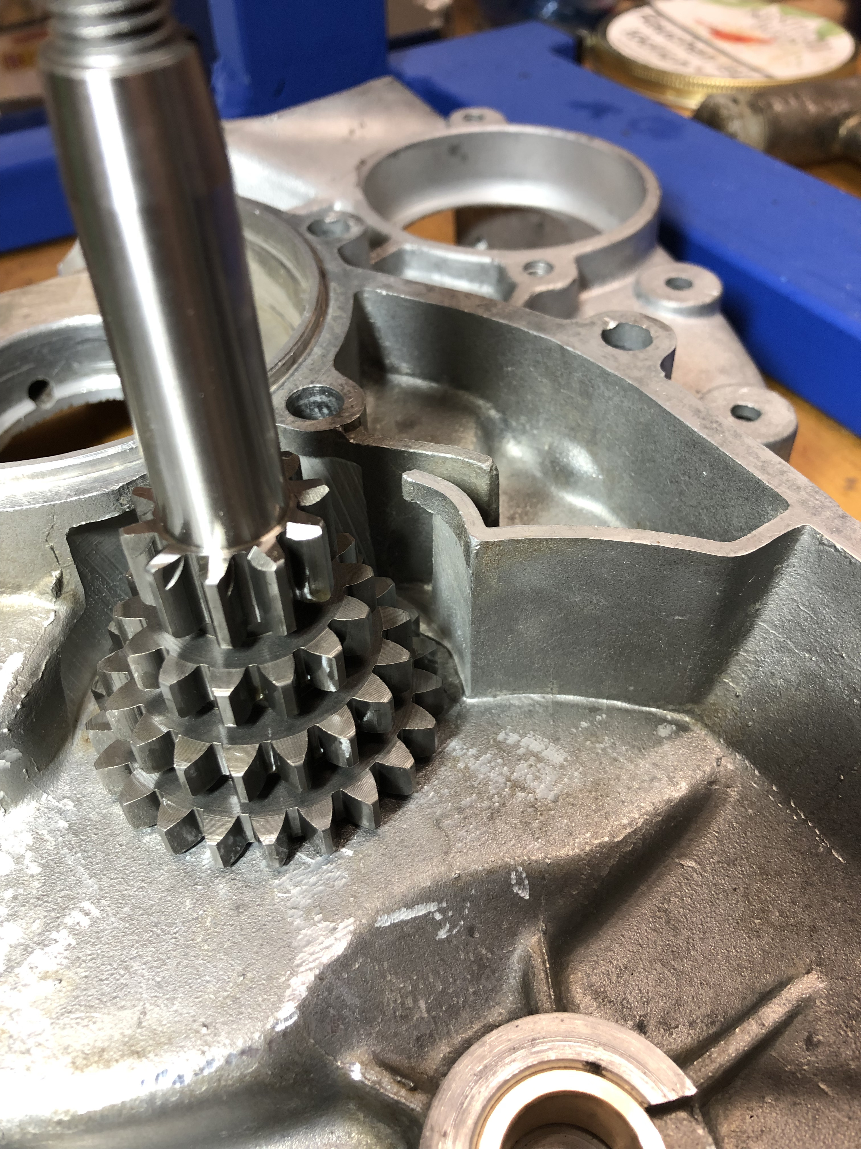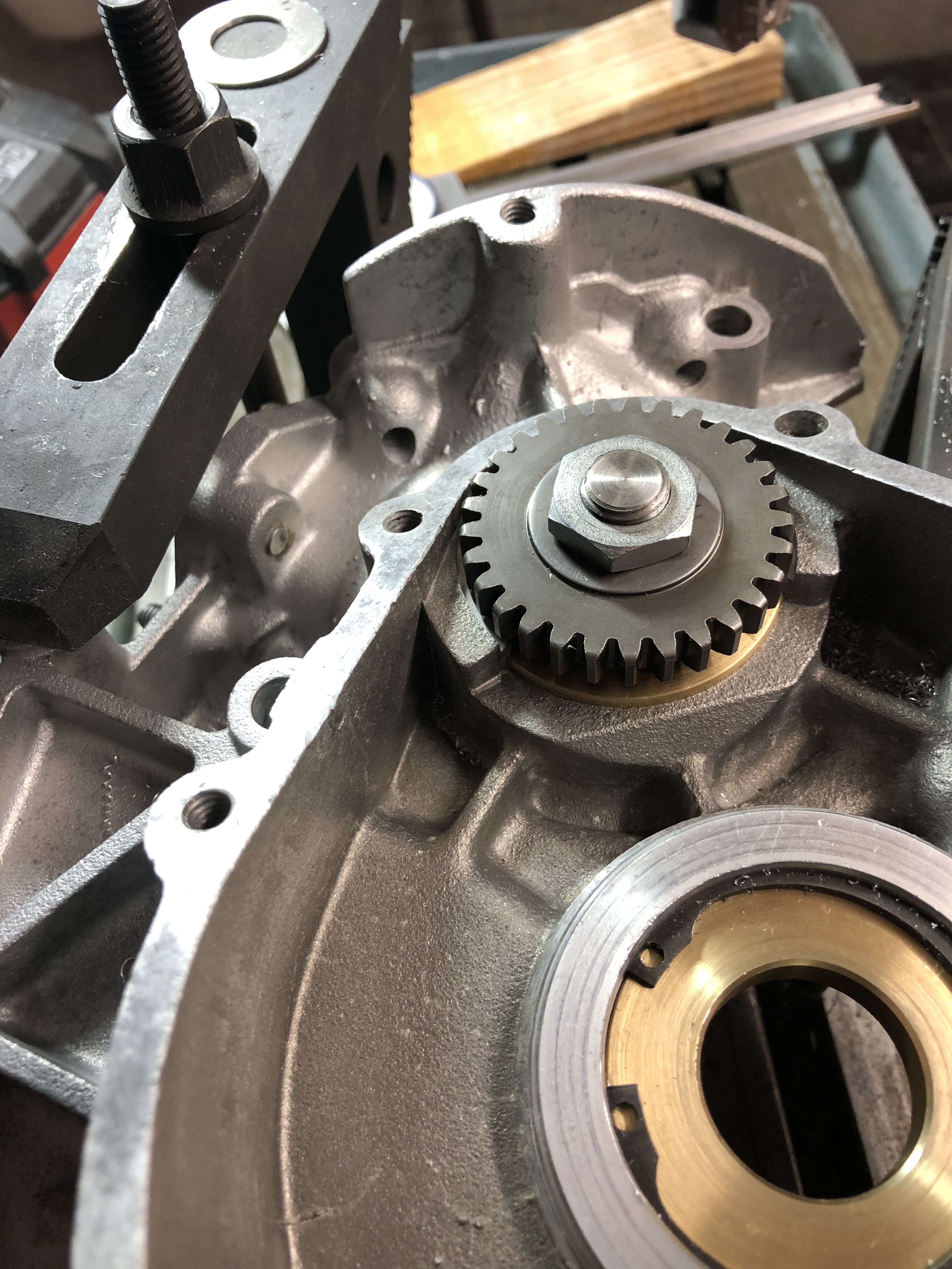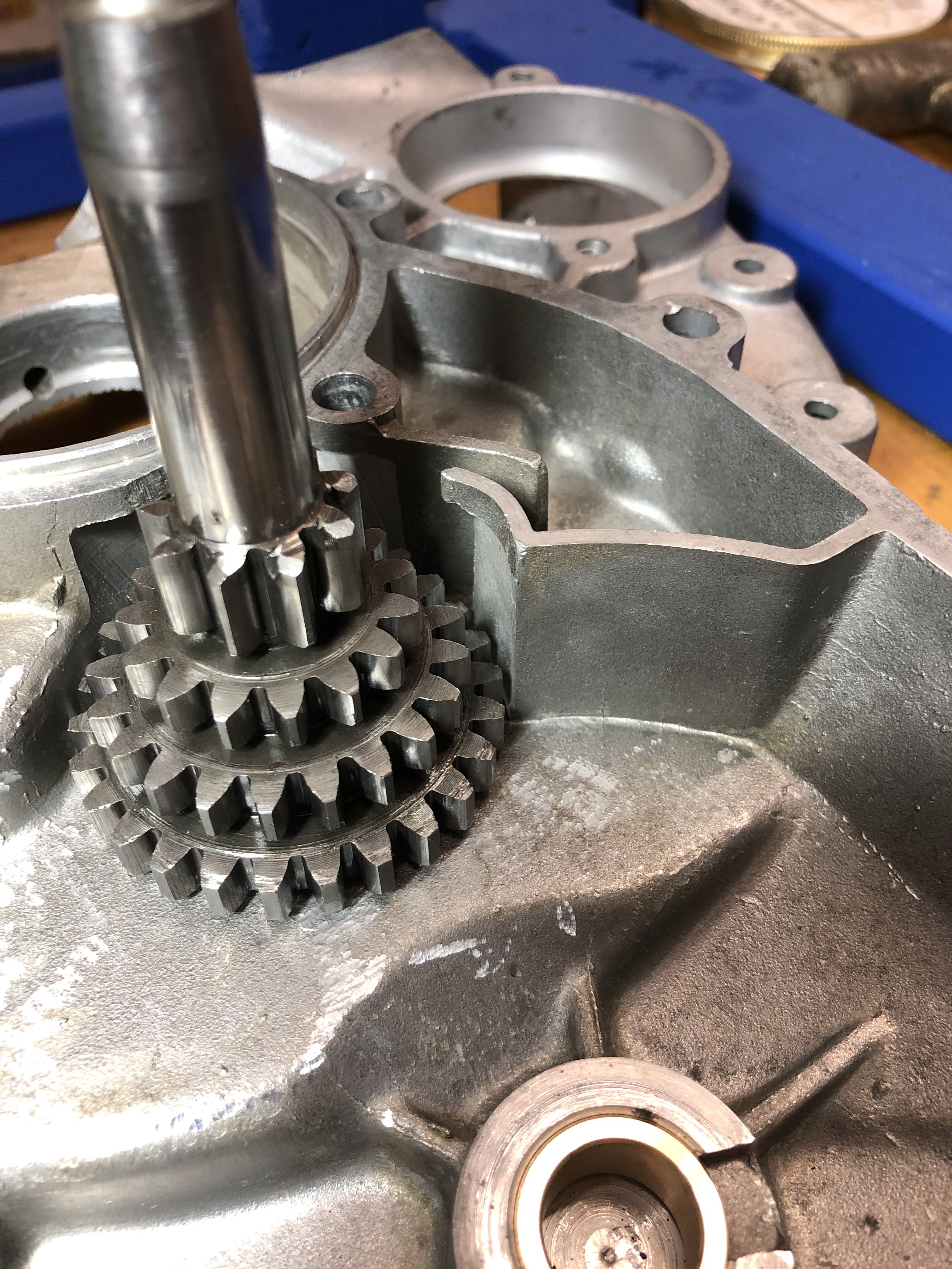 So, es ging weiter. Ich habe die Breite der Lagergasse vermessen und die Schultern des Hauptrades, es waren 0,4 mm Spiel axial.