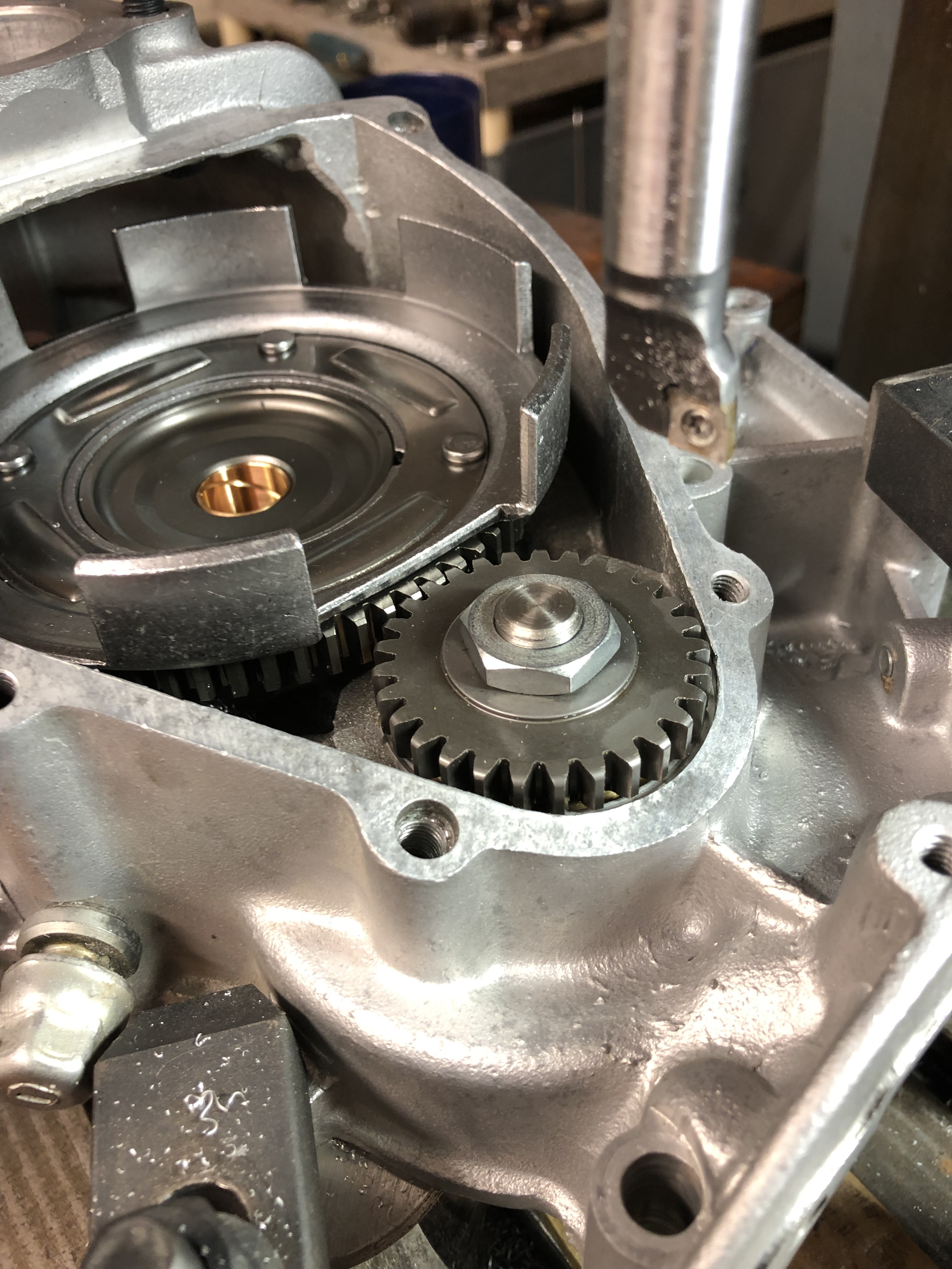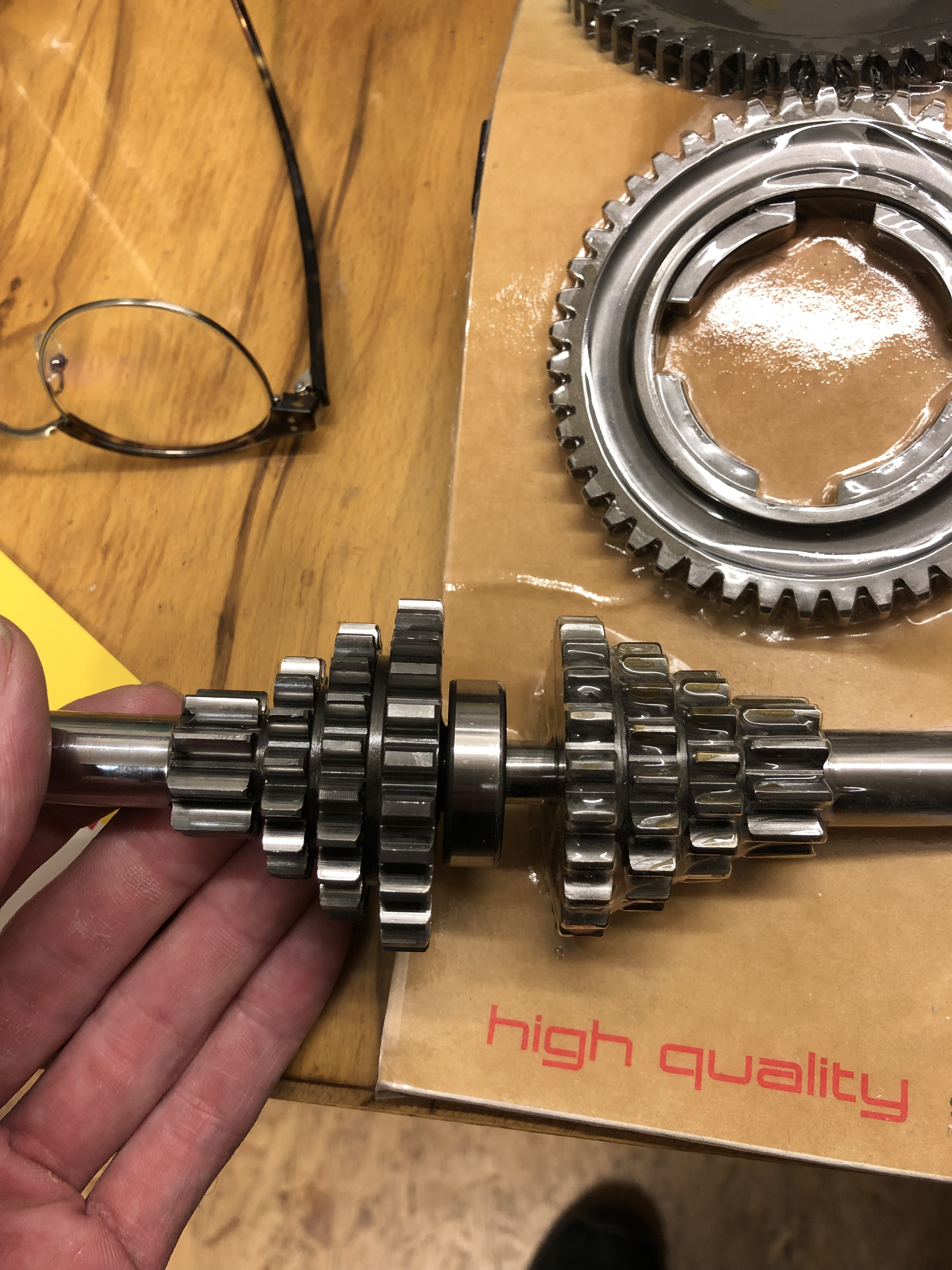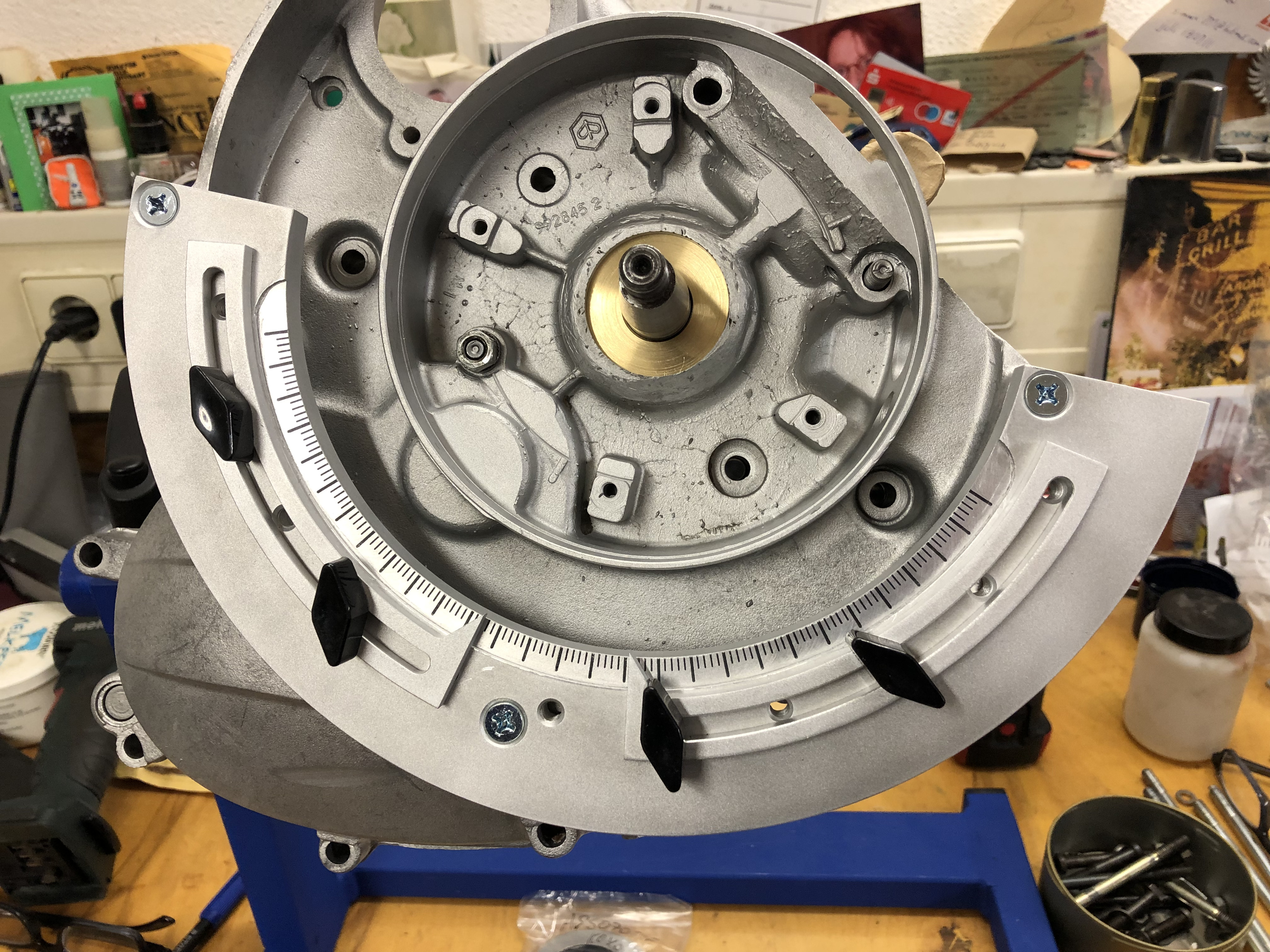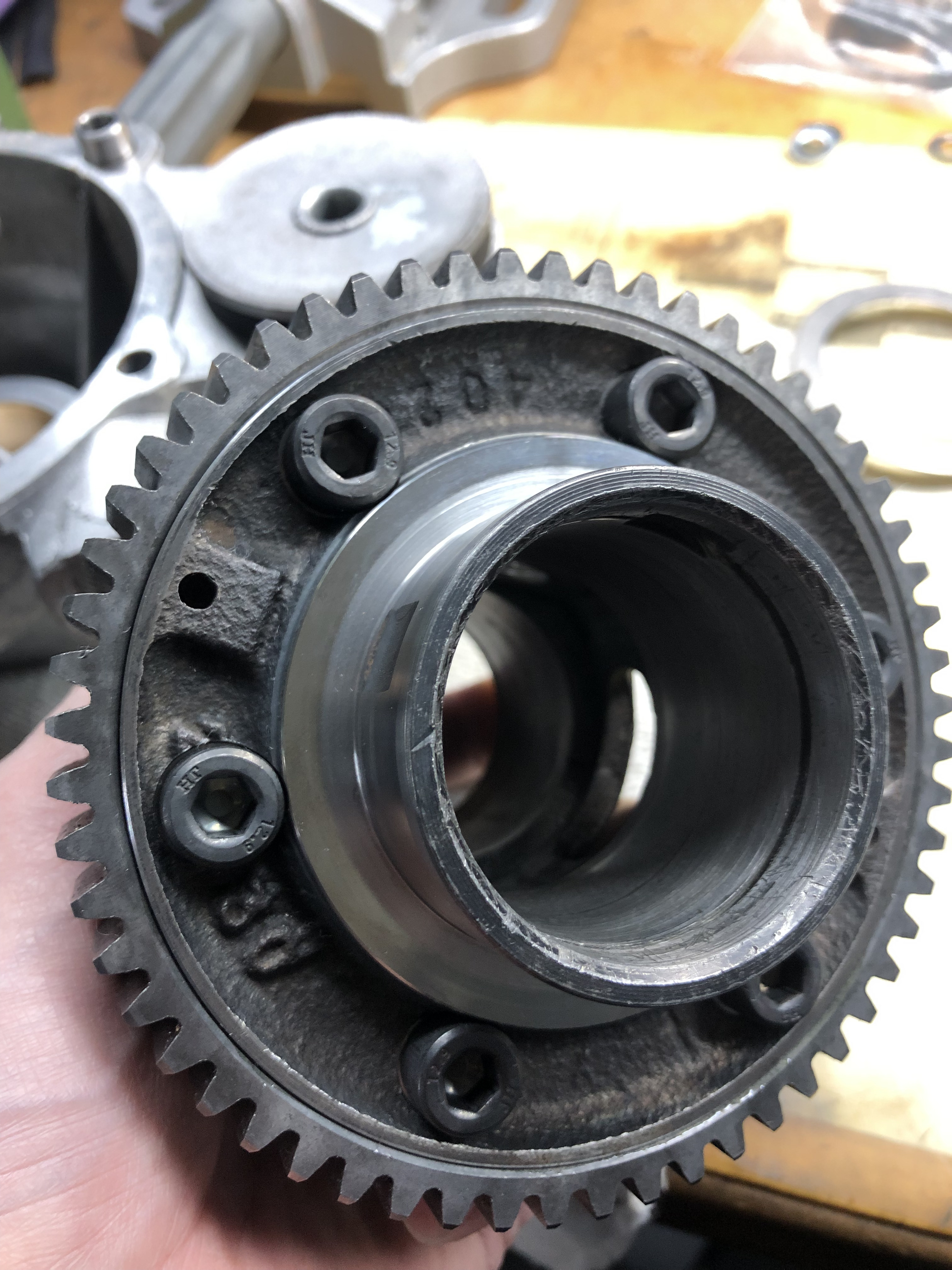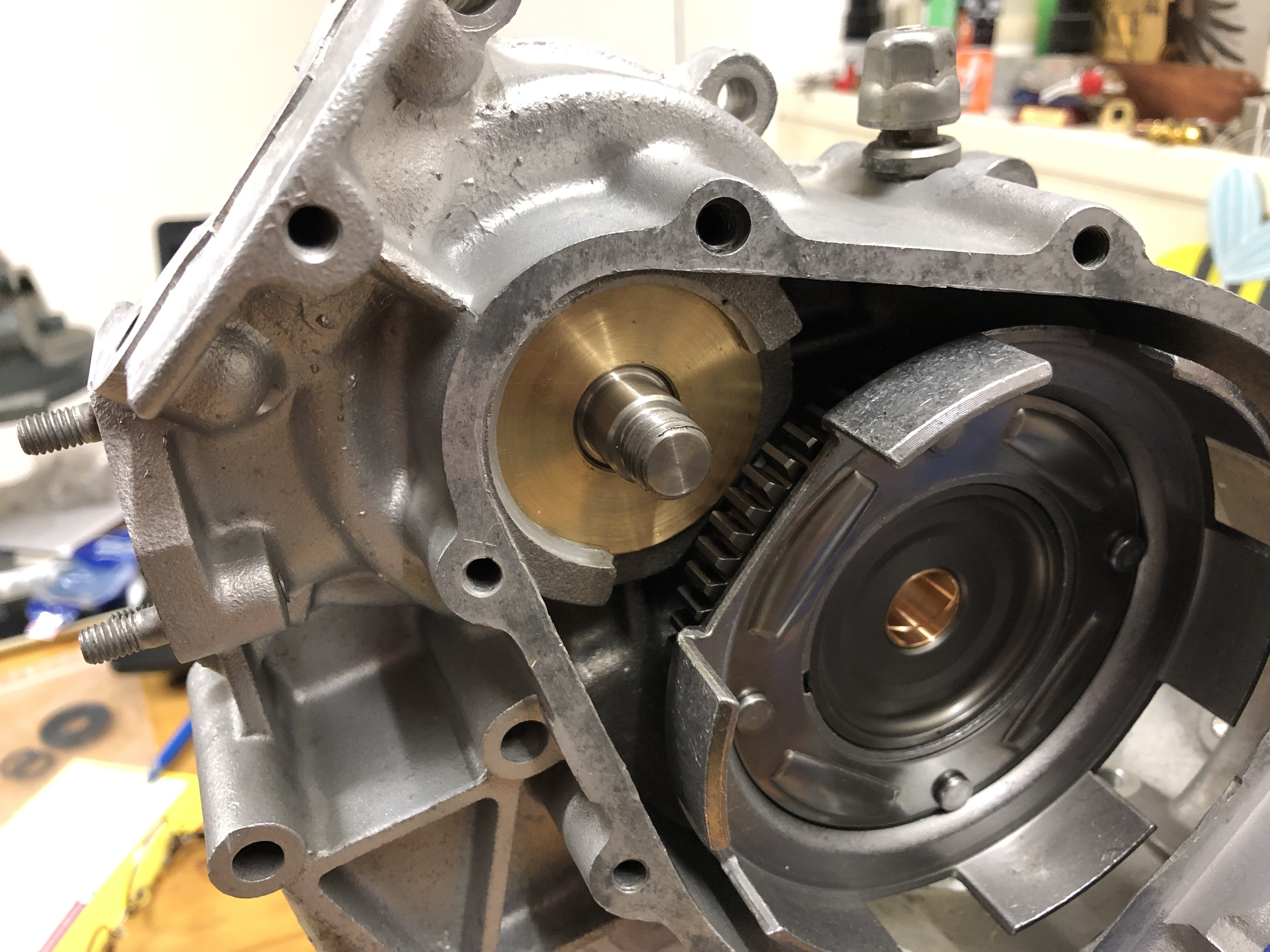 So, es ging weiter. Ich habe die Breite der Lagergasse vermessen und die Schultern des Hauptrades, es waren 0,4 mm Spiel axial.
