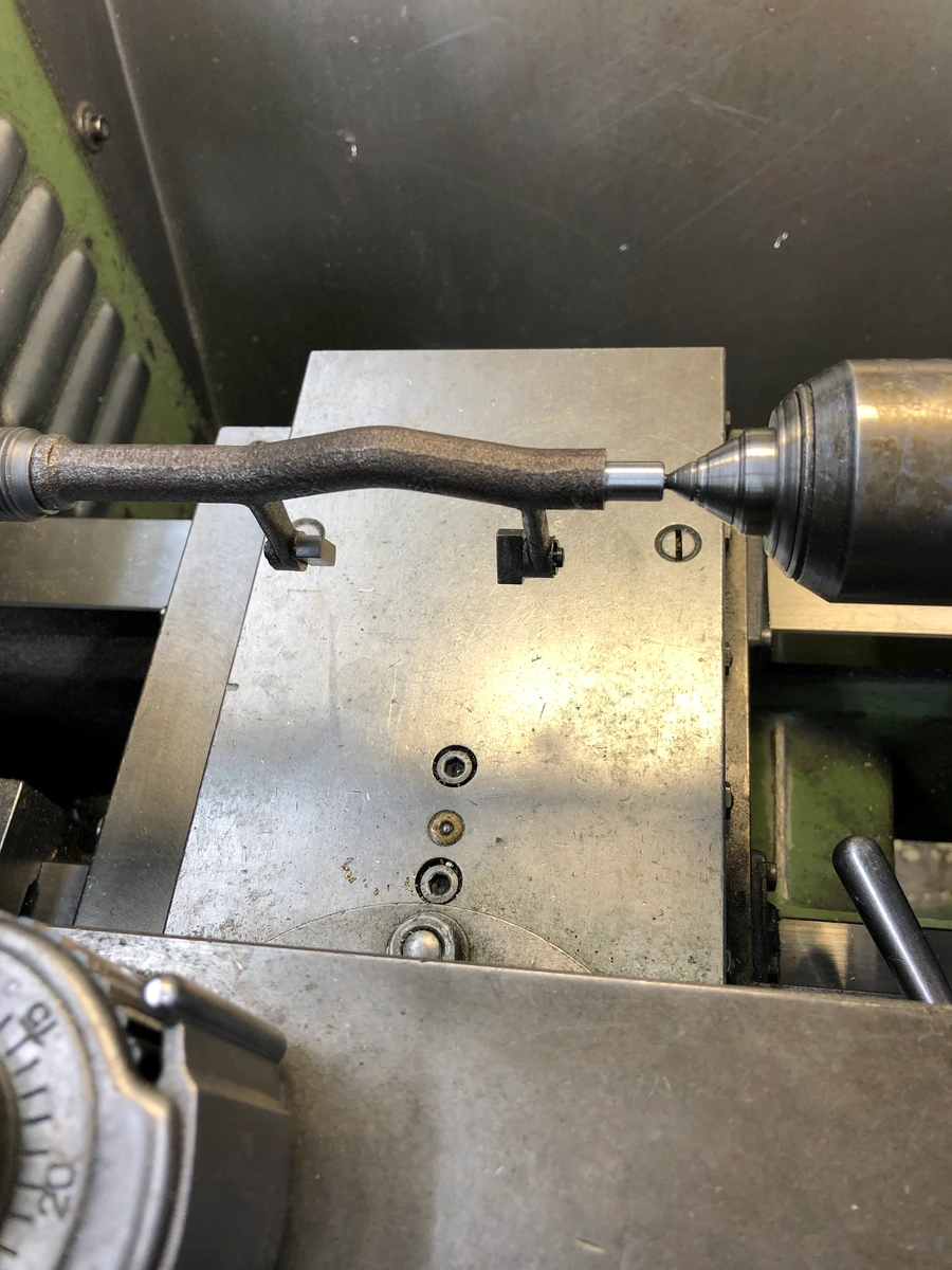 Bei der Probemontage am Samstag habe ich noch gemerkt, daß die Schaltwelle unten einen ziemlich rauen Sitz hat, den habe ich noch etwas abgezogen: