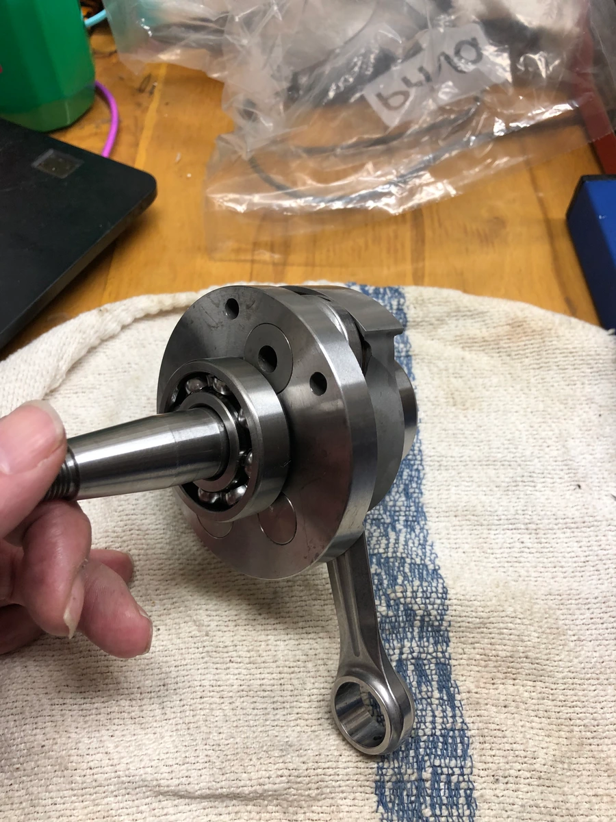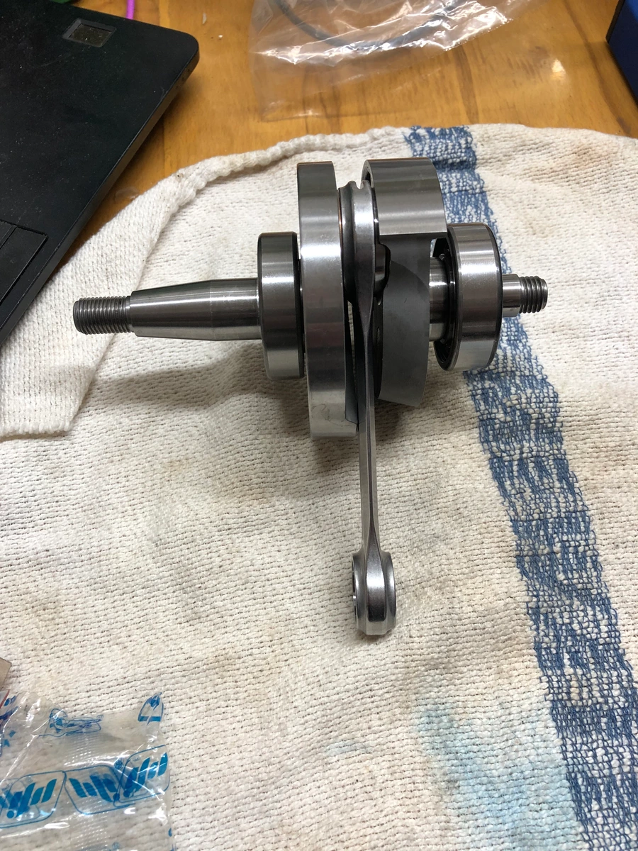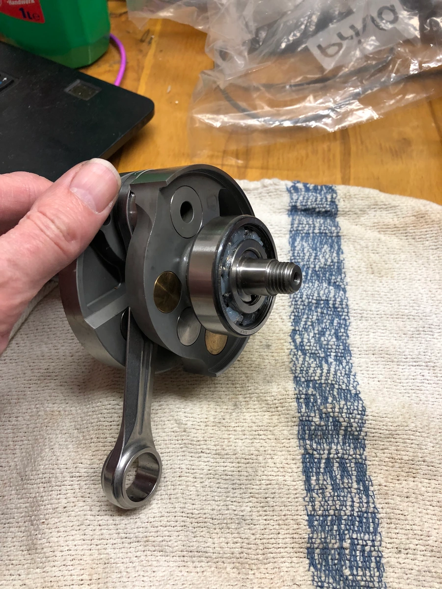 Meine Kurbelwelle sieht ganz normal aus. Ich konnte jetzt beide Lager aufstecken, Limaseitig das Ausschußlager, Primärseitig das finale Lager mit dem Polyamidkäfig:
