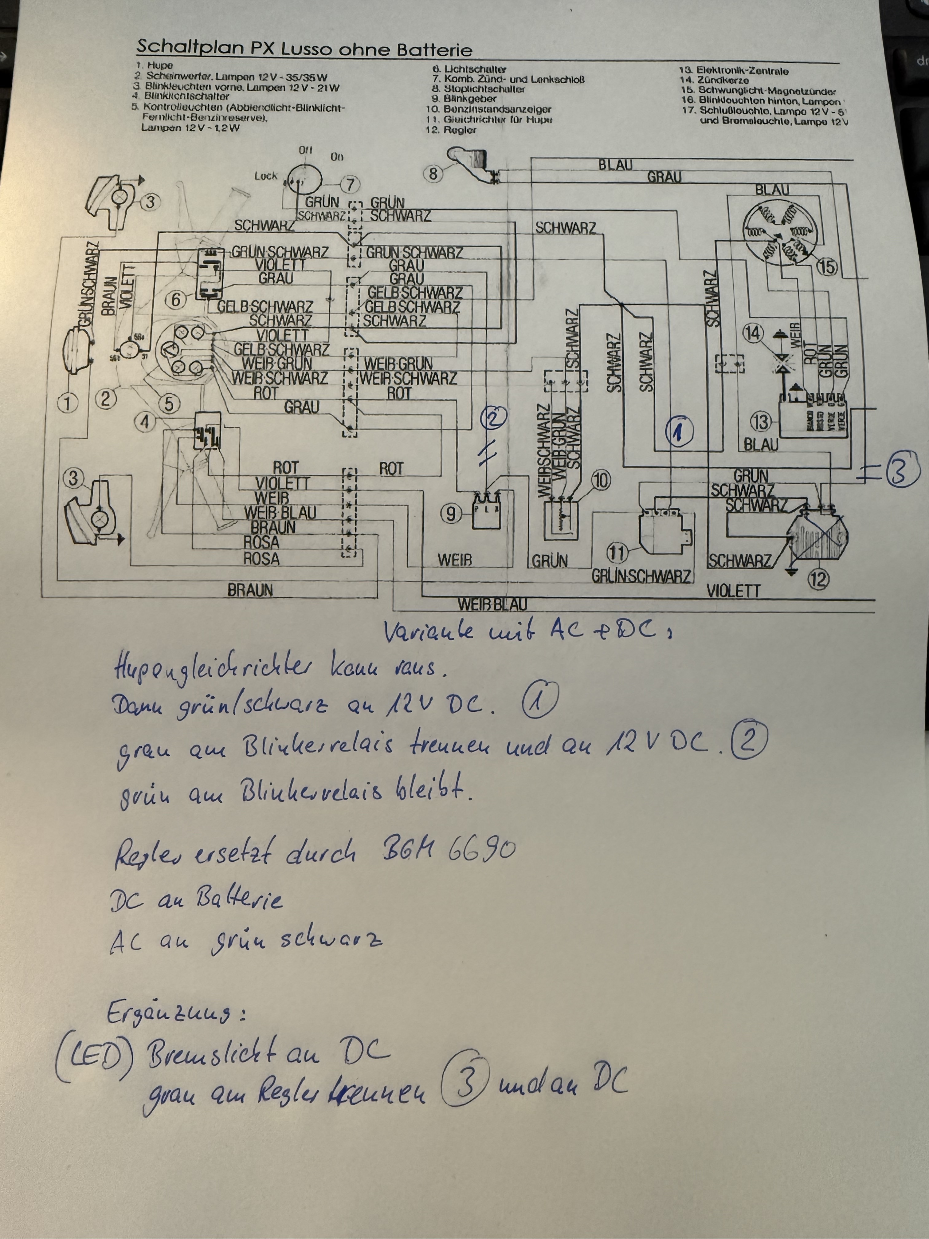 Wenn es der gesichert ist kann ich gern zusammenstellen, was zu tun ist. Den Lichtschalter würde ich dann umtauschen und den originalen drin lassen, weil es keine Probleme macht UND wir dann nicht auch noch da Farben zuordnen müssen, weil sie bekannt sind und im Plan stehen.