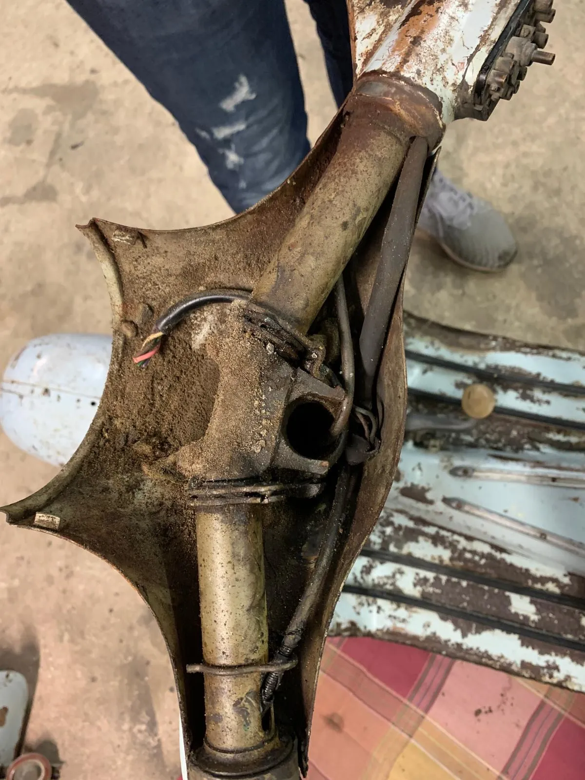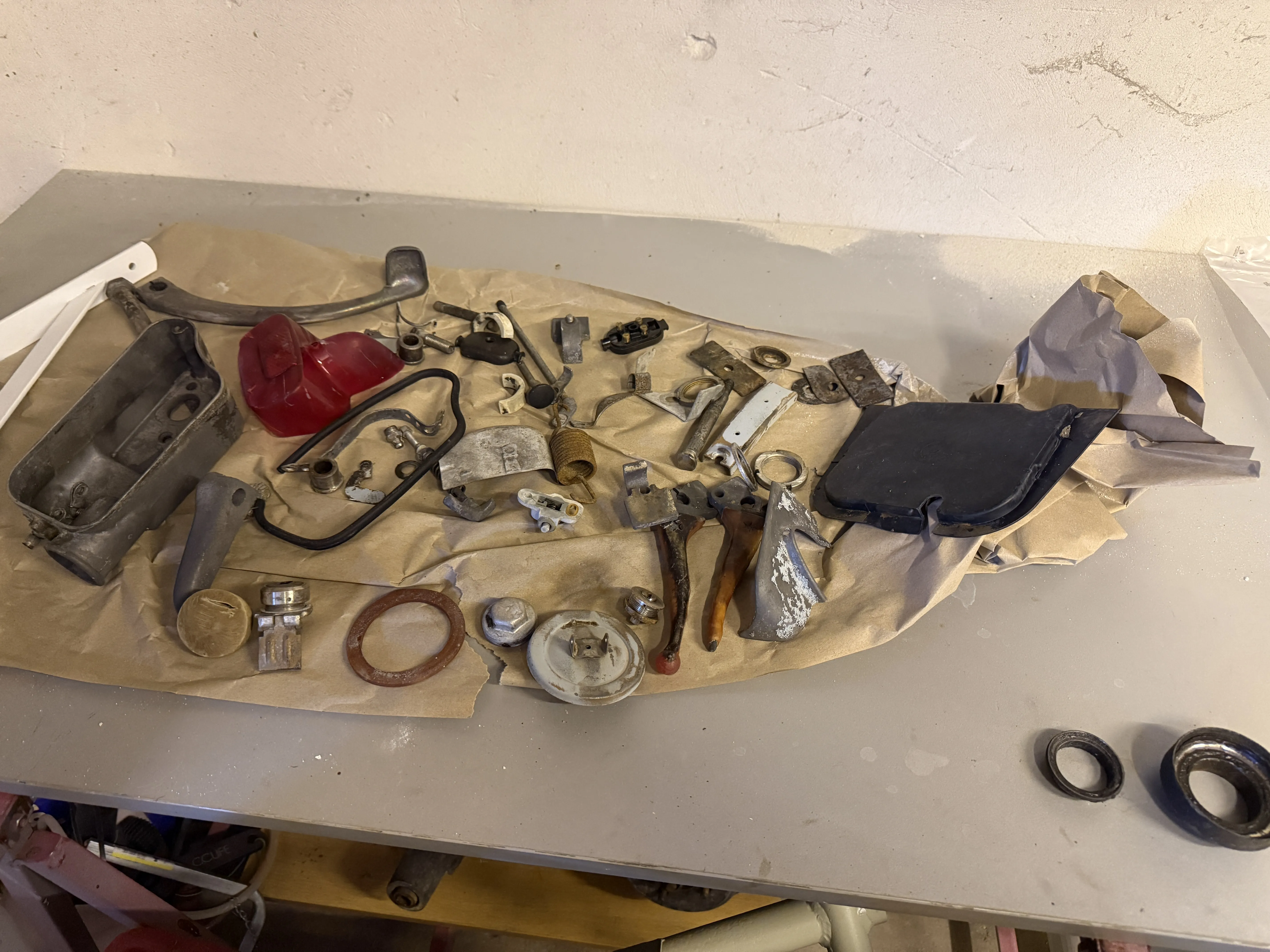 Der Vorbesitzer sagte mir, er sei vor der Zerlegung noch gefahren. Entweder er hat mich verscheißert, oder er hat vor seiner Glasperlenstrahlaktion alles mit dem Hochdruckreiniger sauber gemacht und das ist deswegen festgegammelt.