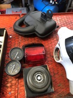 So, die Vespa ist zerlegt, Teile in der Weiterbearbeitung, Teile für den Müll.