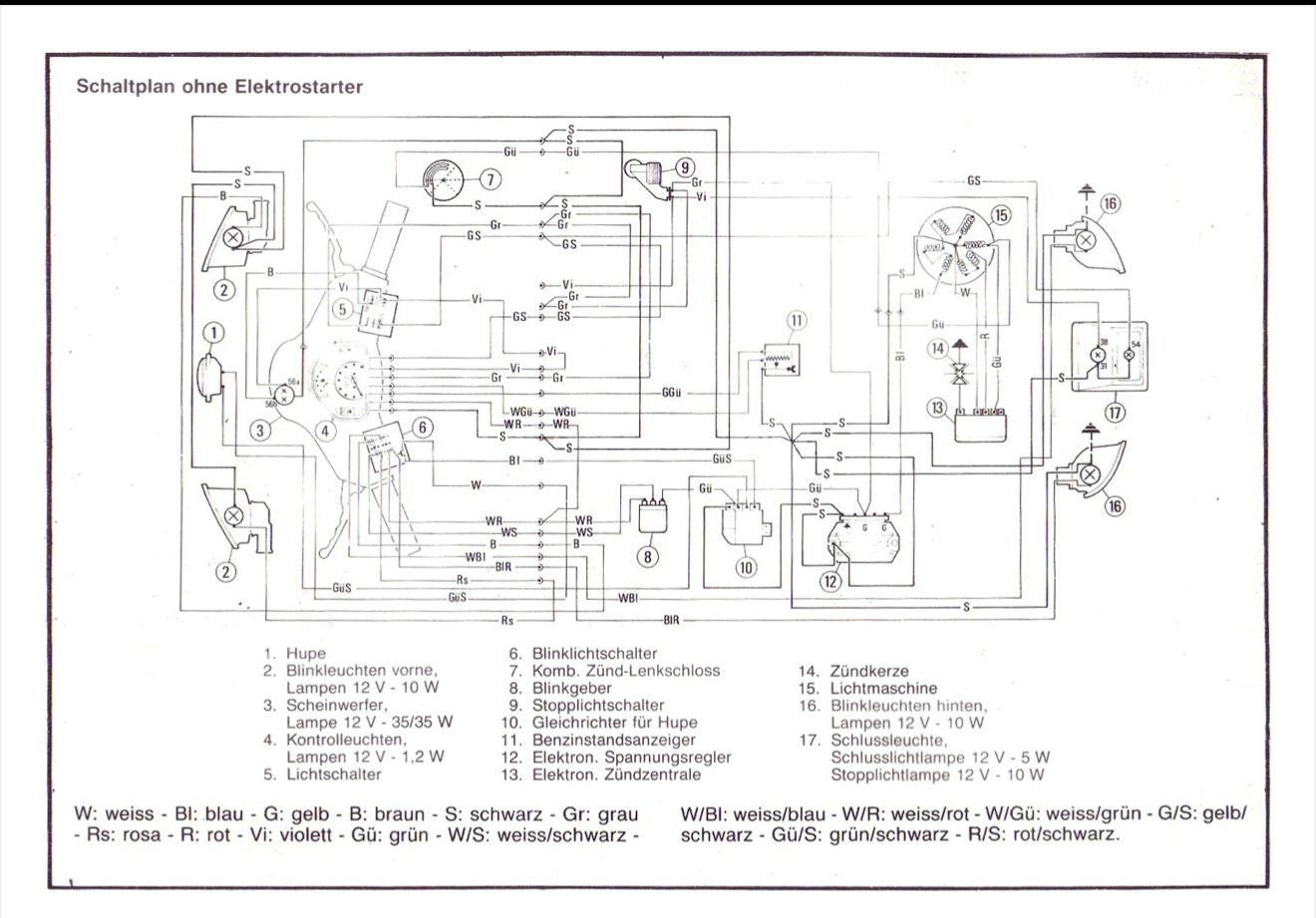 Den Schaltplan verstehe ich nicht so ganz mit dem zweiten am Multistecker endenden Violett. Und die Klemmenbezeichnungen am Rücklicht passen auch nicht.
