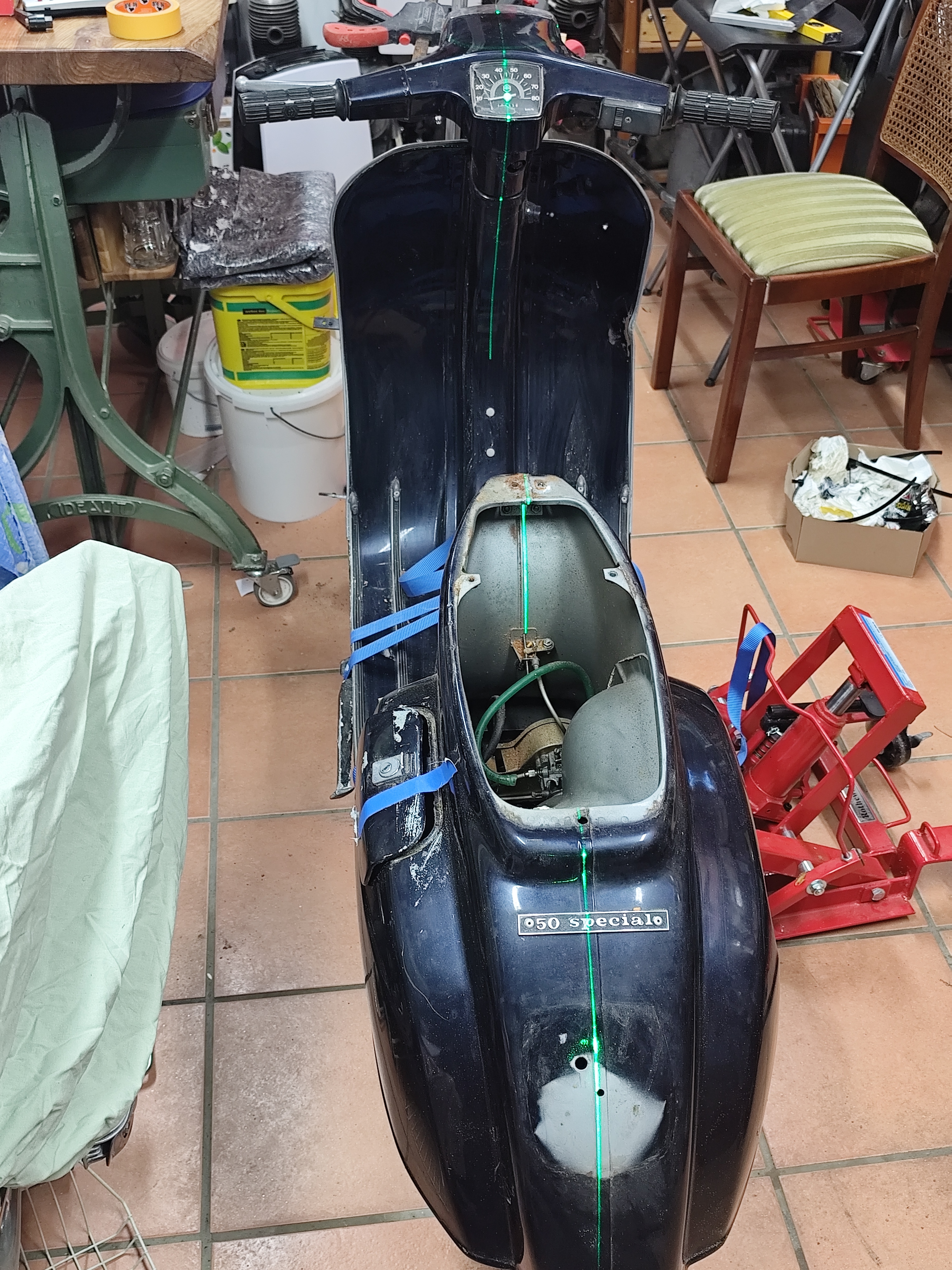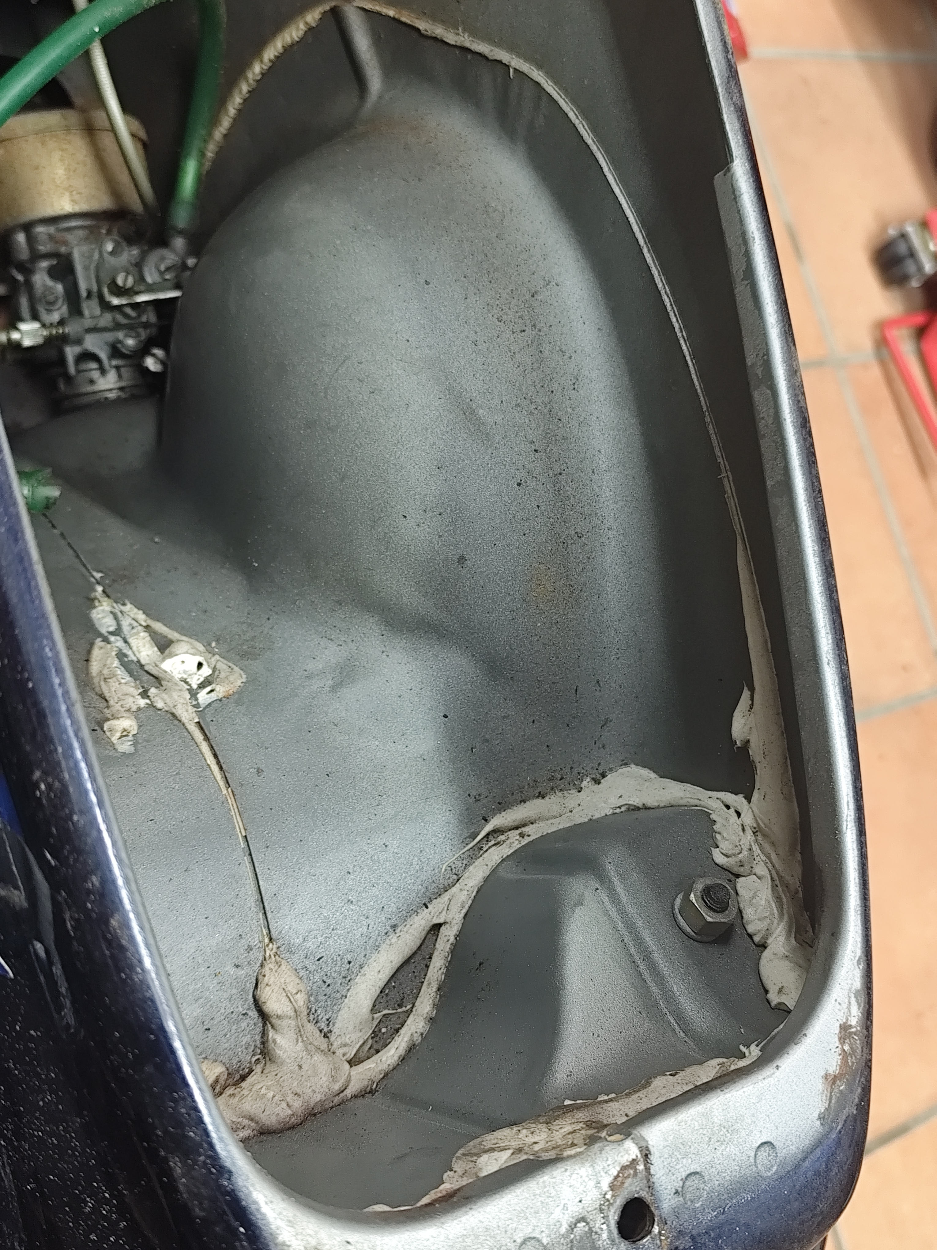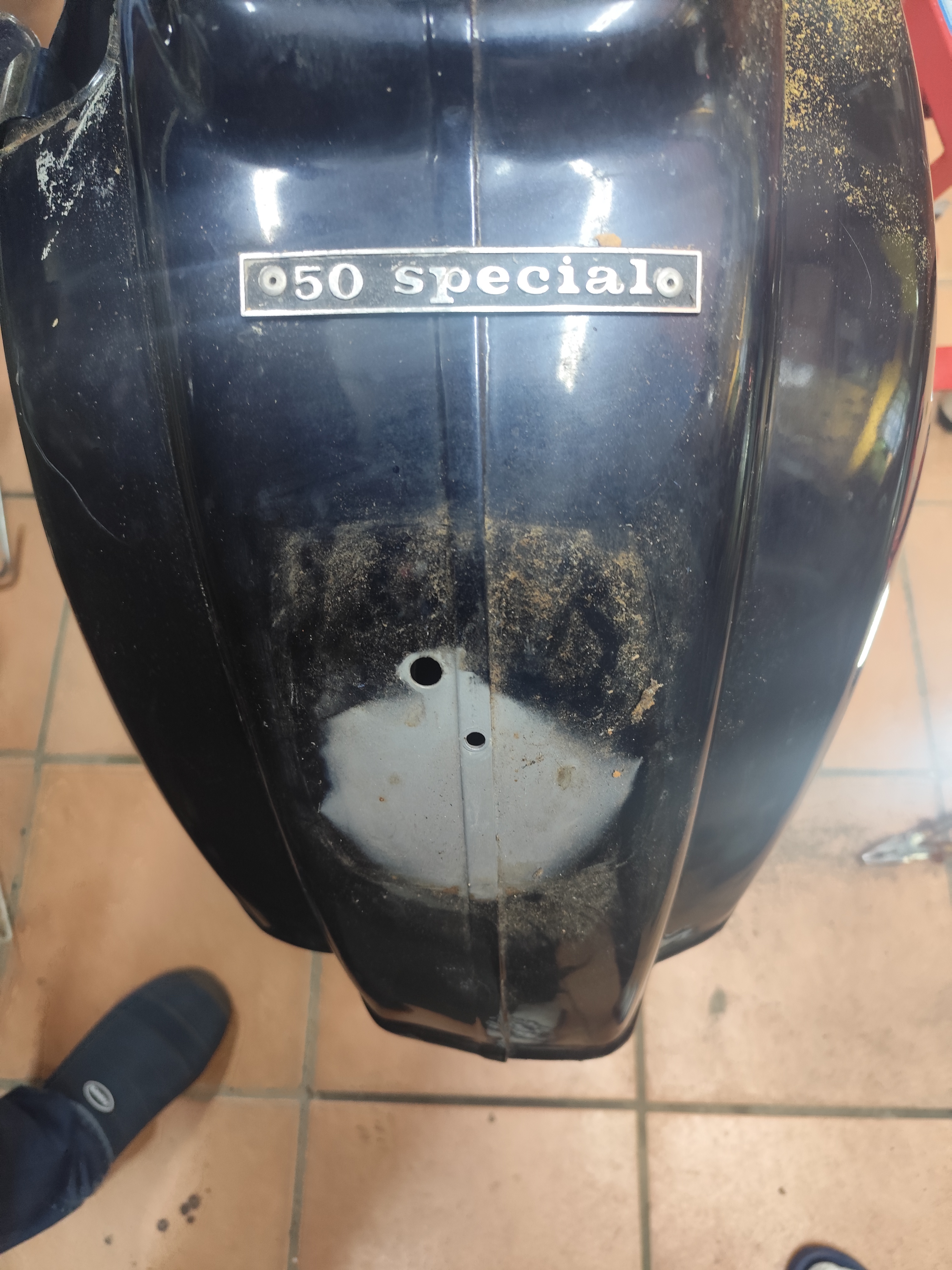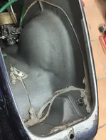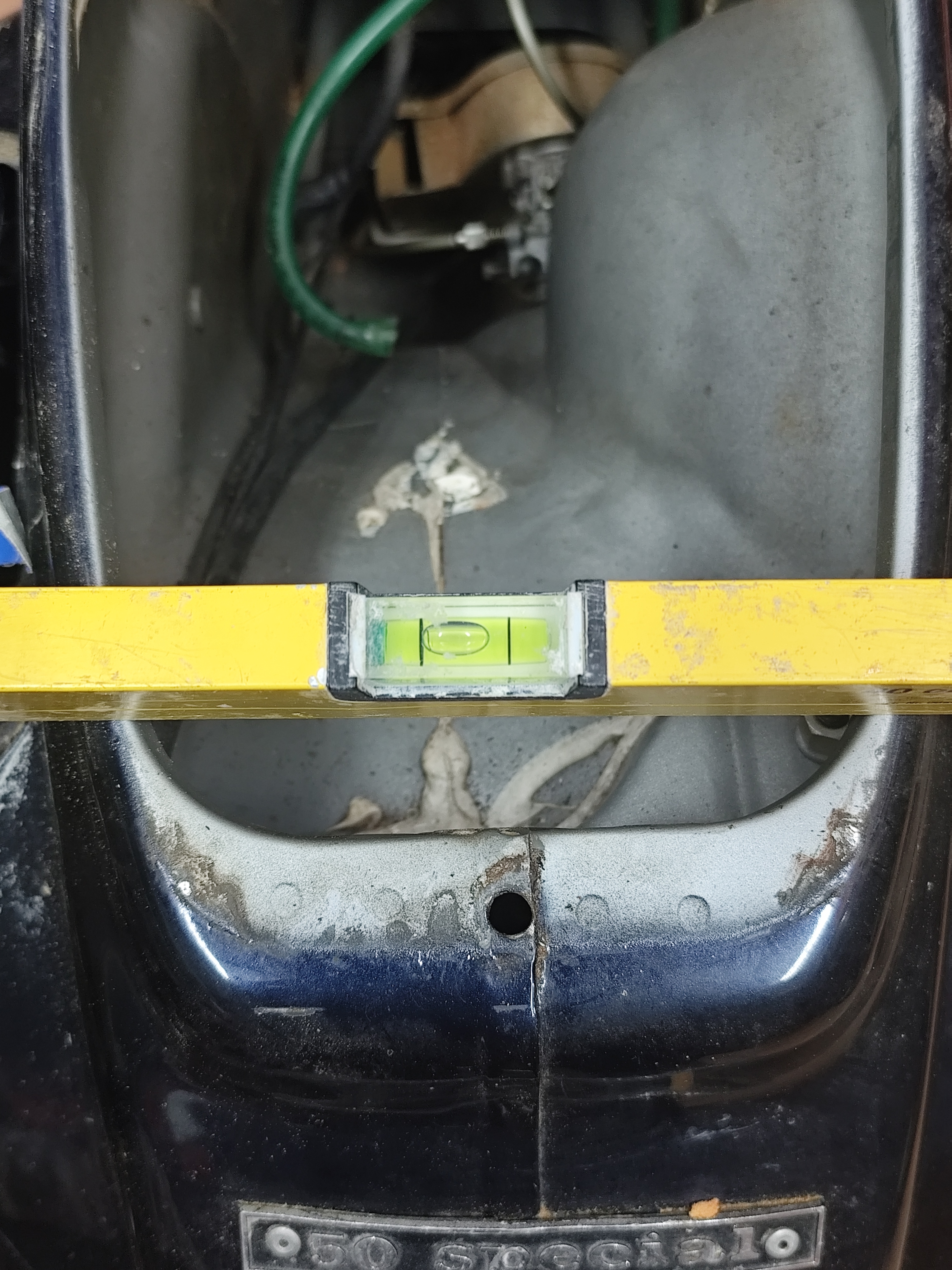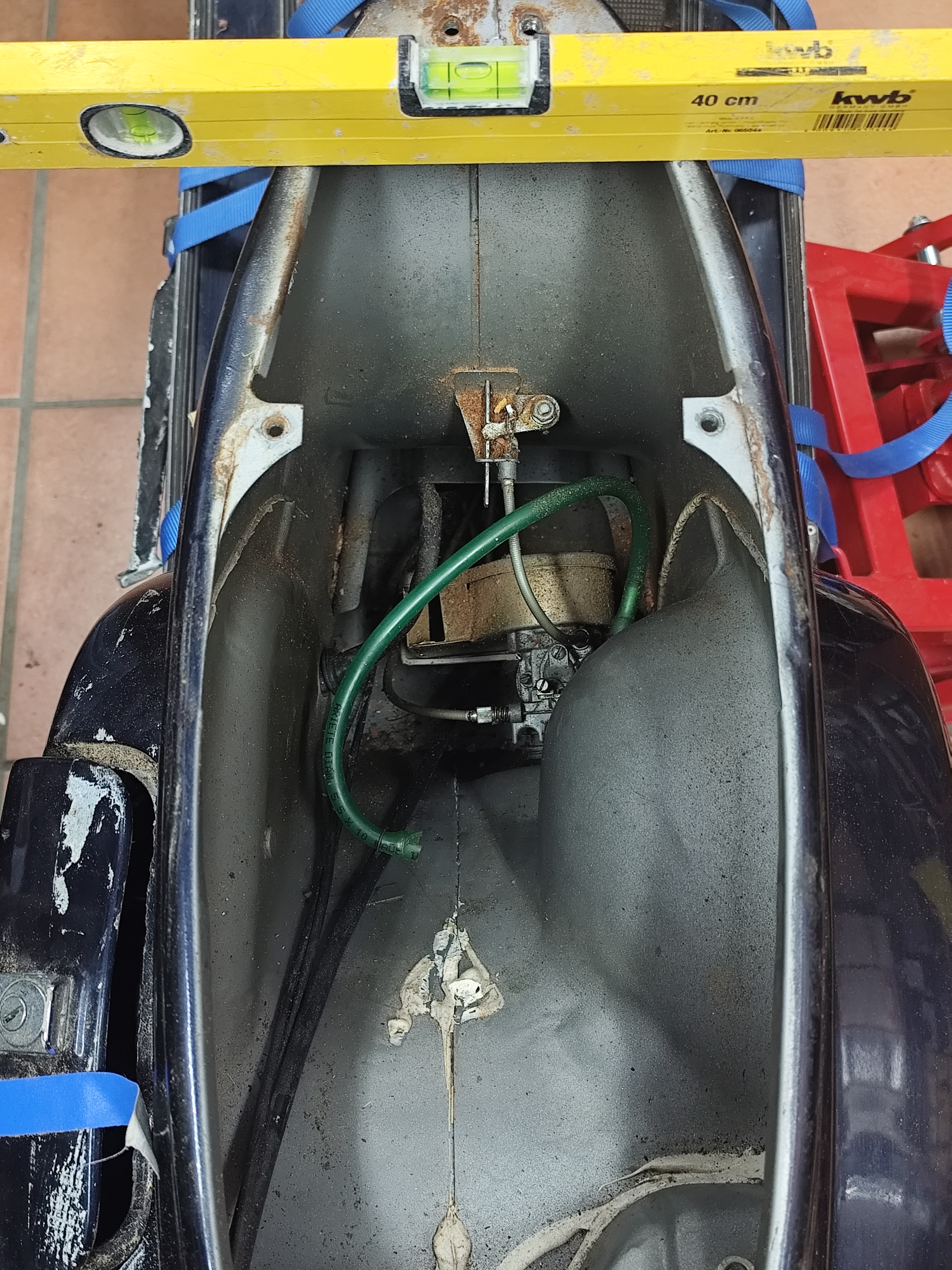 Wie auf den Bildern zu erkennen, ist die Karosserie verzogen. Hier vermute ich, dass es hier mal einen Unfall gegeben haben muss. Gleichzeitig befürchte ich, dass das hintere Rad nicht genau auf einer Linie mit dem Vorderrad steht. Das kann allerdings durch die verzogene Karosse täuschen.