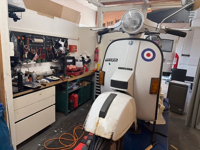 Hallo, ich habe bei der abgebildeten PX 80 lusso die Trittbleche geschweißt. Da sie noch komplett im O-Lack steht (und das soll so bleiben), möchte ich die geschweißten Stellen nur beilackieren. Es ist eine Vespa von 1990, gebaut in Deutschland.