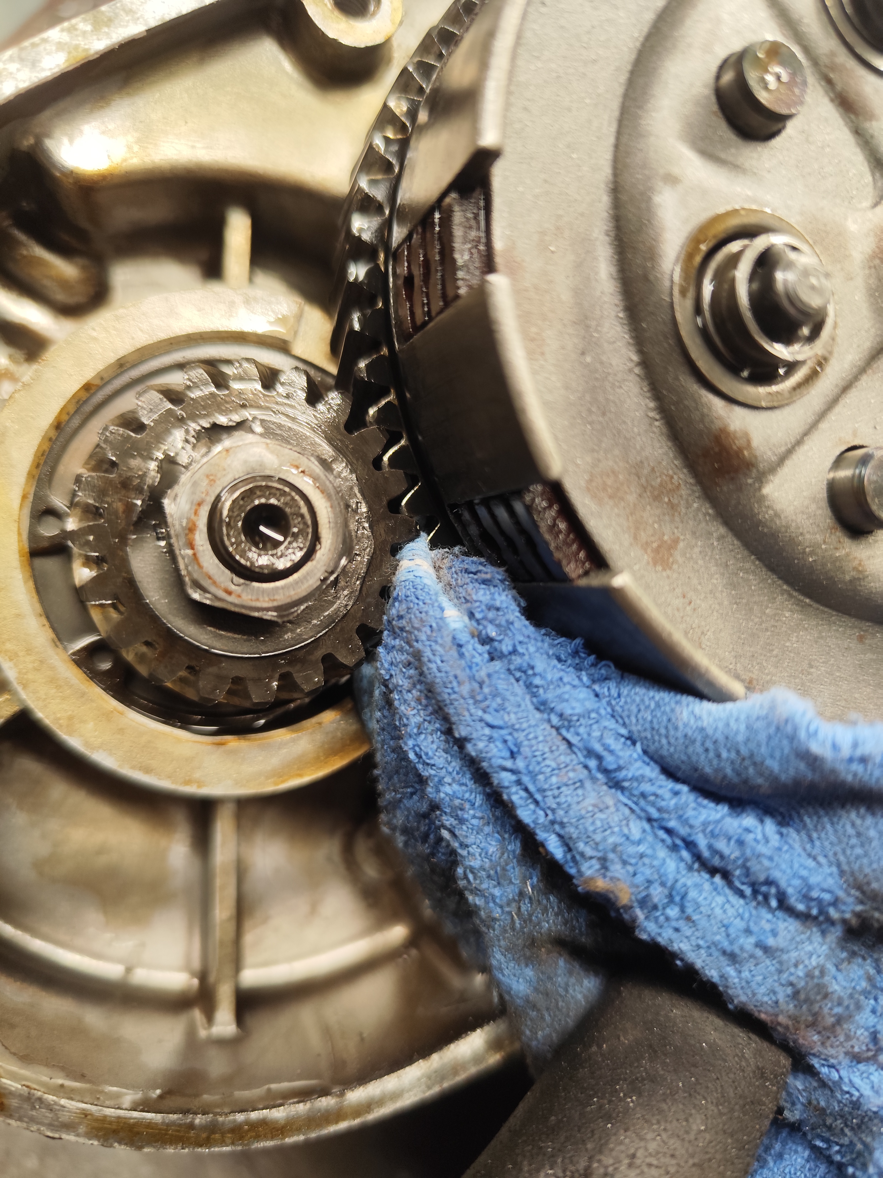 Dann mal den Kupplungsdeckel runter genommen. Alles Tip top da drunter. Optisch zumindest.