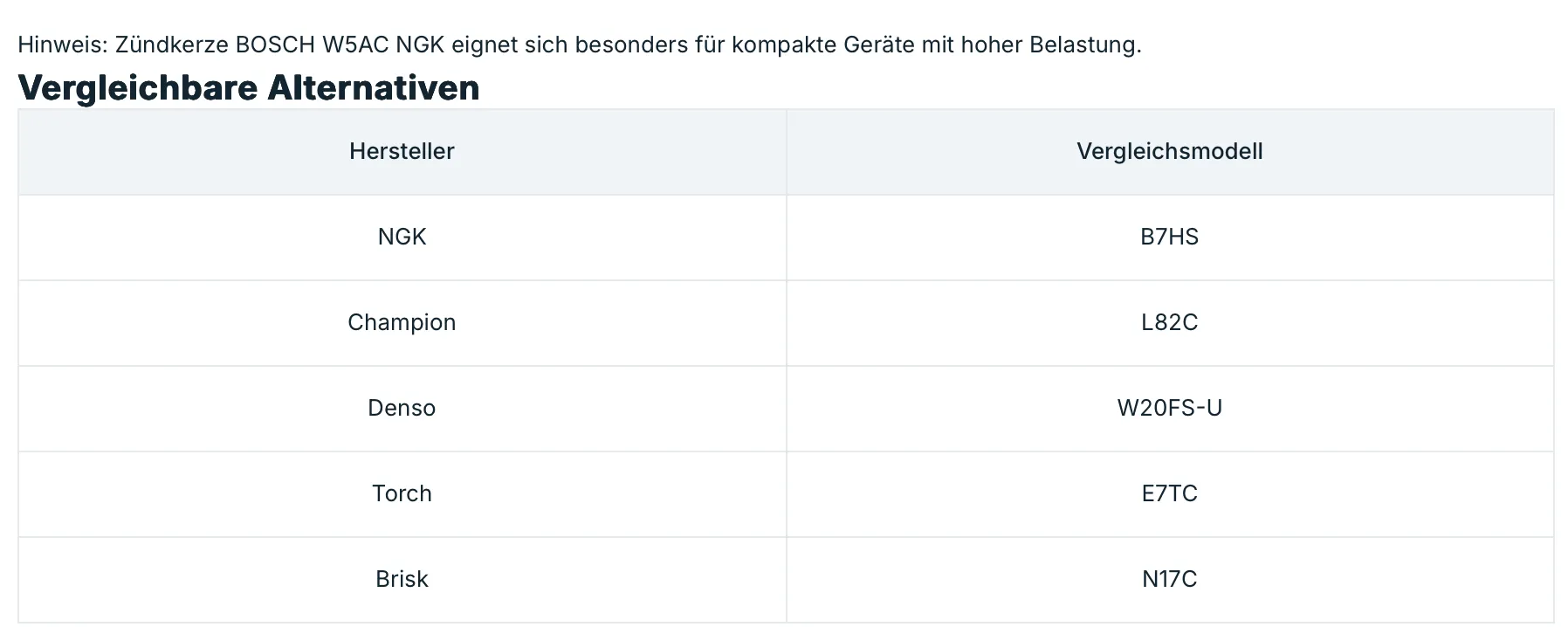 Zündkerzen Equivalente