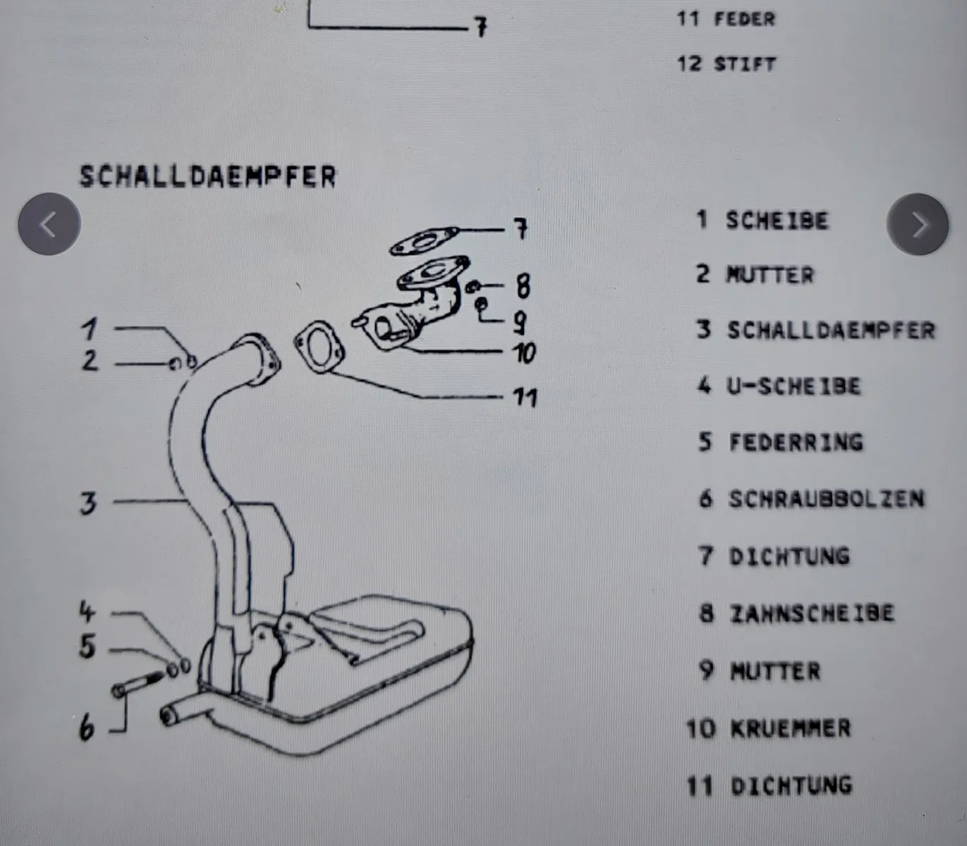 • Nein, am Zylinder sind ja keine Stehbolzen. Der Krümmer war mit Schrauben am Zylinder befestigt. Due ersten waren recht kurz, reichten nur wenig Gewindegänge in den Zylinder hinein. Deshalb habe ich bei der ersten Reparatur längere M 6 Schrauben verwendet.
