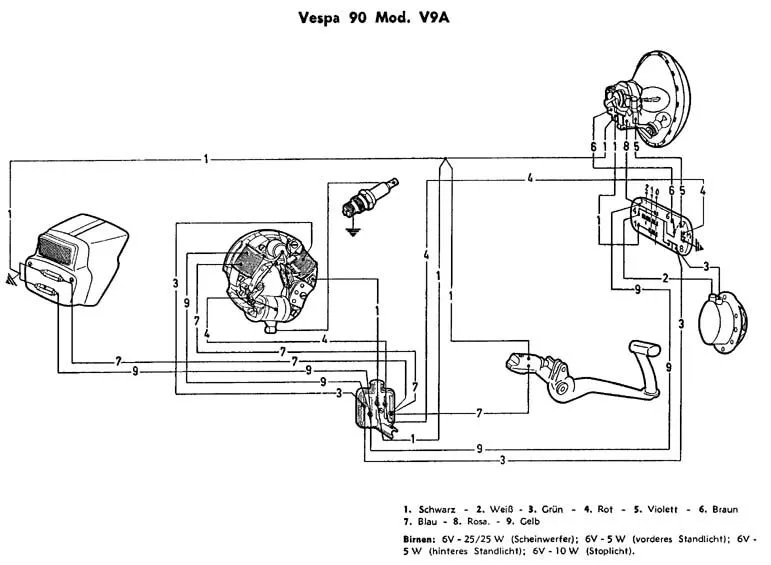 Ist eine ital. 50 spezial ohne Blinker. Das Notlicht und die Kennzeichenbeleuchtung brennen dauernd durch,auf der Hauptbirne hab ich keinen Strom.