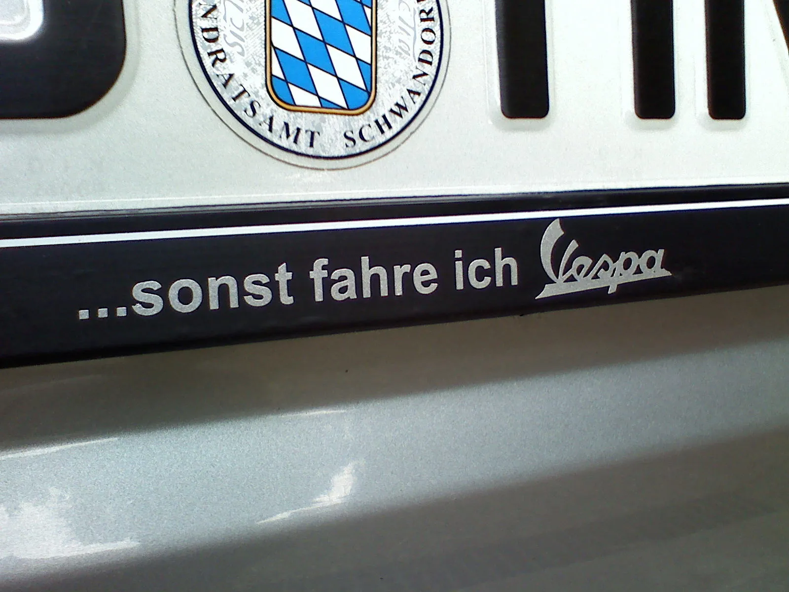 Da ich aber Nummernschildverstärker hasse, kommt diese Werbefläche bei mir nicht in Frage. Vielleicht irgendwann mal nen kleinen netten Scheibenaufkleber mit dem Vespaschriftzug oder so.