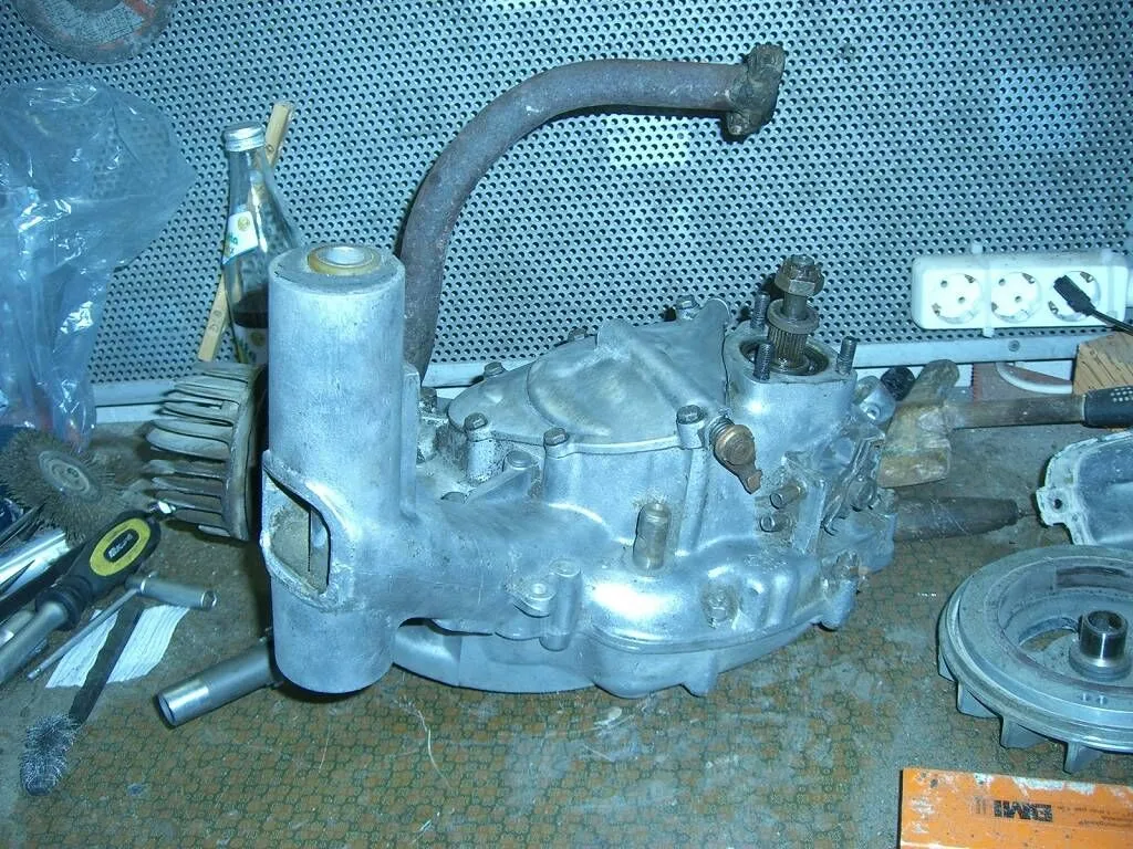 Anscheinend war die Vespa eine Art Ackergerät. Der Motor ist total verdreckt. Die Erde/der Schlamm geht teilweise gar nicht mehr ab!!