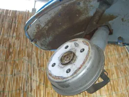 das ist mein erster Post also erstmal ein Hallo an alle, hoffe ihr habt Geduld mit mir, da ich von Mechanik etc. nicht besonders viel Ahnung hab :). Ich fahre eine Vespa 50L Bj. 1967 und hab sie eigentlich auch schon ziemlich lange, allerdings hab ich seit ich studiere, keine Garage mehr zur Verfügung und musste notdürftig auf eine Plastikplane zurückgreifen. Seitdem hab ich auch Probleme mit Rost. Mein Auspuff war komplett durchgerostet (foto) also hab ich mir einen gebrauchten besorgt, allerdings ist mir beim abmontieren des kaputten Auspuffs eine Schraube abgebrochen.