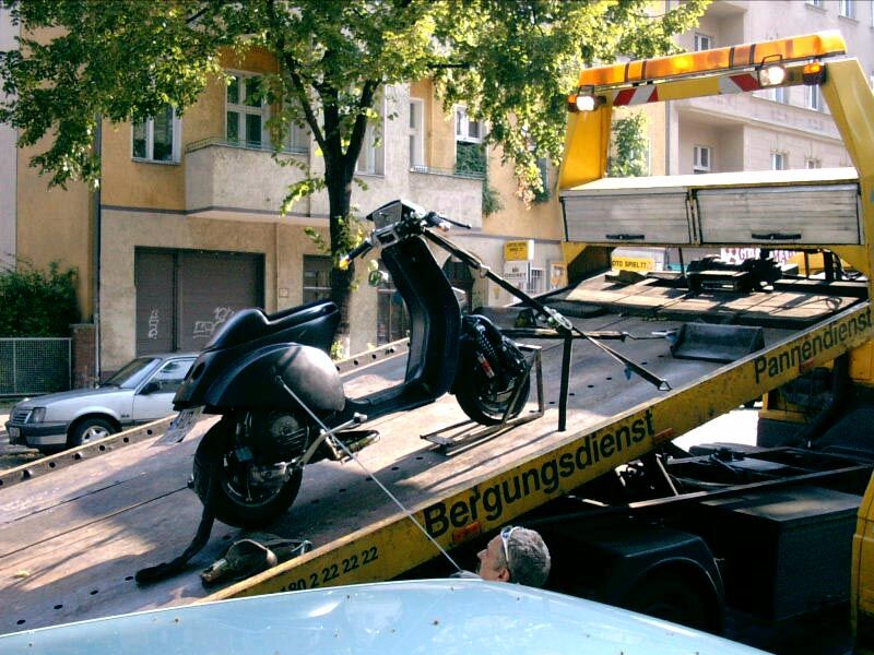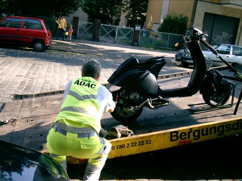Vespa irgendwo liegen bleibe. Sagen wir mal, sie springt nicht ab. Ich bin ADAC versichert.